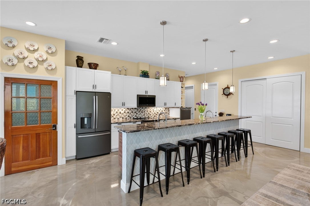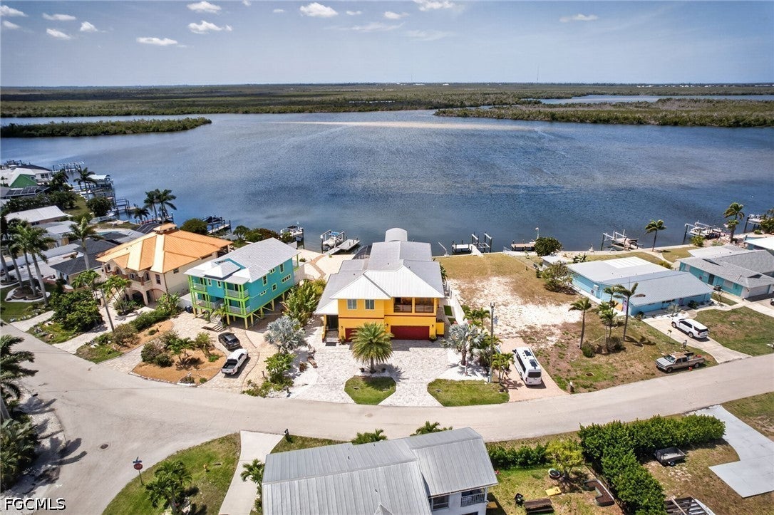 This unique custom-built waterfront home offers direct access to the Gulf of Mexico and boasts expansive water views that are sure to impress. BUILT IN 2020, this property features multiple balconies, decks, and rooms designed to capture Matlachas serene coastal vibe. Situated on direct Gulf access with no bridges to slow you down, the home includes a new SEAWALL with a TREX DOCK and a COVERED 10,000lb BOAT LIFT, providing convenient storage and protection, all right in your own backyard.Upon entering through the leaded glass doors, you will be greeted by the warmth of sunlight reflecting off the stunning custom-designed epoxy flooring that flows throughout the main floor. The main floor features a divided primary bedroom with an en-suite and access to the private Orchid deck. The west facing primary offers direct access to the pool deck and the screened lanai which features ELECTRIC ROLL DOWN SHADES for easy sun control. The main floor also includes a laundry area, open concept kitchen, dining, and living areas. The spacious Chefs Kitchen features beautiful maintenance-free CAMBRIA QUARTZ countertops and top-of-the-line BLACK STEEL appliances. Family and guests can enjoy socializing with the cook while seated at the EXPANSIVE serving island before heading to the lanai and pool deck to savor the breathtaking water views.Upstairs, a spacious family room awaits, accessible by a PRIVATE ELEVATOR. The second floor includes a primary bedroom with an en-suite and a sitting area. There is also a second-floor laundry, a bonus area, observation deck, a family room with kitchen facilities, and a screened porch also outfitted with electric roll-down shades. There are two additional bedrooms, one with an en-suite and the other bedroom with easy access to the screened balcony at the front of the house. Its always fun to watch the boats head out Matlacha Pass while enjoying your morning coffee and watching the sunrise! The bottom ground floor features a three-car garage/workshop designed to function seamlessly in the event of severe weather. All important elements such as A/C, electric, and plumbing are raised high along block walls to avoid impact from severe weather. Additionally, there is no sheetrock, only cement block.This property offers a one-of-a-kind Matlacha living experience, combining luxury, convenience, and coastal charm in a picturesque waterfront setting.