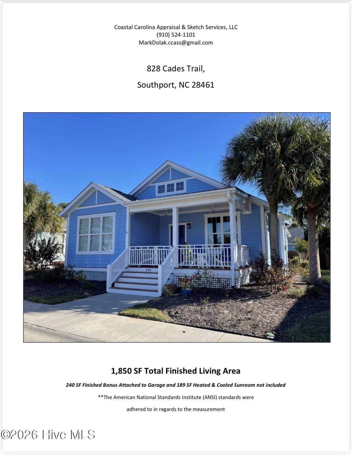 Welcome to 828 Cades Trail, one of the most inviting homes in the warm and friendly Cades Cove community of Southport. Set on a quiet street and positioned to capture the western views of Downey Lake, this beautifully maintained residence offers not only remarkable natural scenery but also unforgettable sunsets from the comfort of your front porch. Blending cottage charm with contemporary elegance, this thoughtfully designed three-bedroom, two-and-a-half-bath home provides a total of 2279 heated square footage that includes the 240 SF heated and cooled office room in the detached garage, and the 189 SF heated and cooled all seasons room right off of the dining room an ideal sanctuary for anyone seeking comfort, style, and easy coastal living.As you approach the home, its striking Carolina Blue exterior with white trim and a Navy front door immediately catches the eye.Professionally landscaped and meticulously cared for, the yard offers multiple raised planters and garden beds, creating a low-maintenance yet visually appealing setting. As an added checkmark on your list the owners just installed a brand new Amana HVAC unit January 2026 with a 10yr warranty.The property is not located in a flood zone.The Hardie-plank exterior,DP-50 wind-load-rated windows, and encapsulated crawl space reinforce the home's durability and efficiency. The wide, welcoming front porch sets the perfect tone for peaceful enjoyment, whether savoring your morning coffee or unwinding at sunset. Inside, the heart of the home is the stunning chef's kitchen, designed for both everyday living and memorable entertaining. Granite countertops, custom cabinetry, and a spacious pantry surround high-end stainless steel appliances, including a six-burner Wolf rangetop,Monogram double oven, and Bosch dishwasher. The oversized island--with its additional prep sink--becomes a natural gathering place for family and friends. A cozy breakfast nook featuring an LG space-saving Washtower adds convenience and char The open-concept living area is anchored by a modern gas fireplace that creates a warm focal point while framing the panoramic views of the lake. Custom-built shelving flanks the fireplace, offering space for books, artwork, or cherished personal displays. Hickory hardwood floors flow throughout the main living spaces, complemented by ceramic tile in the bathrooms. Together, these textures create a warm and timeless atmosphere.The spacious primary suite provides a retreat of its own, offering dual vanities, a soaking tub, and a separate glass-enclosed shower. The walk-in closet features a flexible, industrial-style system with impressive storage options. Two additional bedrooms are equally inviting and share a well-appointed bathroom with an oversized shower and large linen closetsmall touches that make a meaningful impact on everyday living. Stepping into the backyard is like entering your own private oasis. You begin in the recently enclosed and tiled four-season porch, a climate-controlled space made comfortable year-round by its dedicated Mitsubishi HVAC split system. From there, you move onto the TimberTech Vintage deck and then onto the adjoining TimberTech patio, complete with a natural gas line ready for grilling. Every element of the backyard is designed for enjoyment and simplicity, from the Xeriscaped landscaping and raised planter boxes to the seating areas perfect for gatherings, container gardening, or enjoying your Caldera Spa. The entire space is fully fenced, offering peaceful privacy. One of the most unique features of this home is the oversized detached two-car garage, which includes an additional refrigerator, freezer, and utility sink. Epoxy-coated floors give the space a clean, polished look, while built-in shelves and a Gladiator organizing system ensure everything has its place. Attached to the garage is a 240-square-foot office or artisan workshop complete with a half bath. Whether you're working from home, pursuing creative projects, or maintaining a workout space, this highly versatile room offers privacy and freedom. A portable generator with a quick-connect system and a whole-house surge protector are also included, reflecting the home's attention to practicality and readiness. As a RESNET-qualified energy-efficient home, 828 Cades Trail includes high-performance windows, a programmable thermostat, and an efficient Rinnai water heater to help maintain comfort and reduce energy use year-round. The entire property has been lovingly maintained by its original owners and is truly move-in ready, with updated landscaping and thoughtfully selected low-maintenance materials throughout. Living in Cades Cove means enjoying both beauty and community. Residents have access to a well-kept saltwater pool with a grill area, and the neighborhood's landscaping and common areas are professionally cared for, adding to the charm and ease of life here.Filled with custom details, smart features, luxurious finishes, and inviting spaces both indoors and out, this home offers a rare opportunity to own a meticulously maintained property in one of Southport's most desirable neighborhoods. At 828 Cades Trail, comfort, quality, and coastal tranquility come together in perfect harmony.