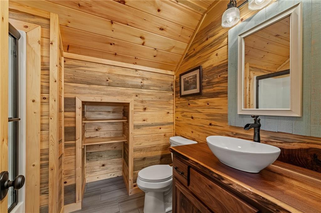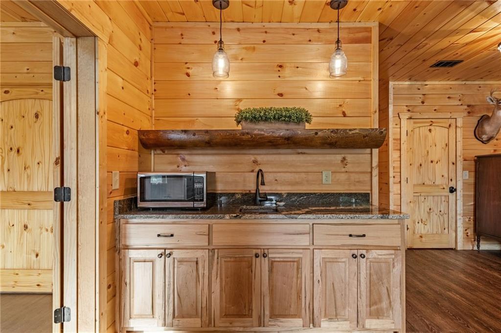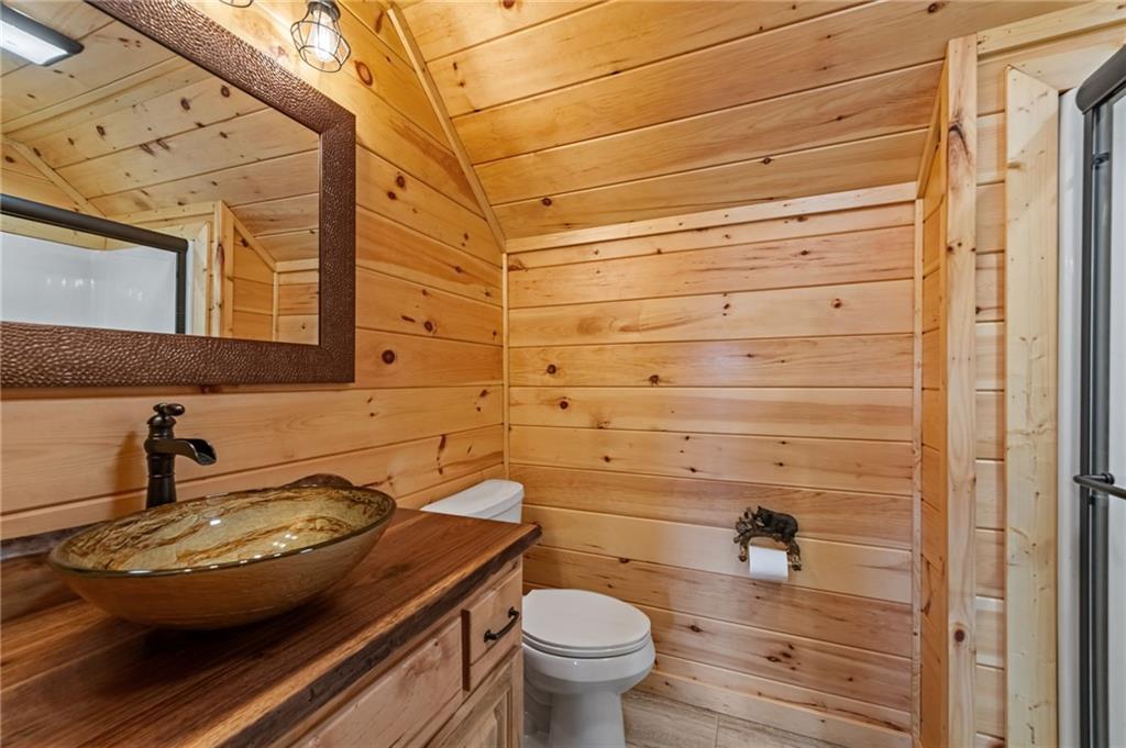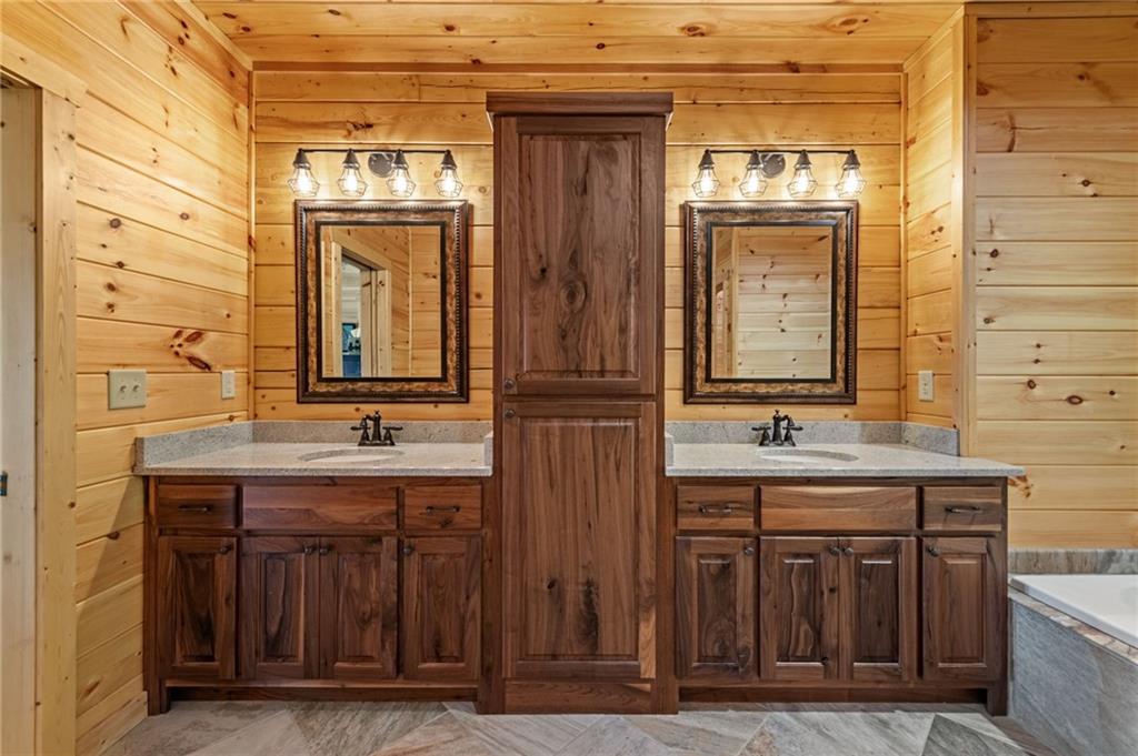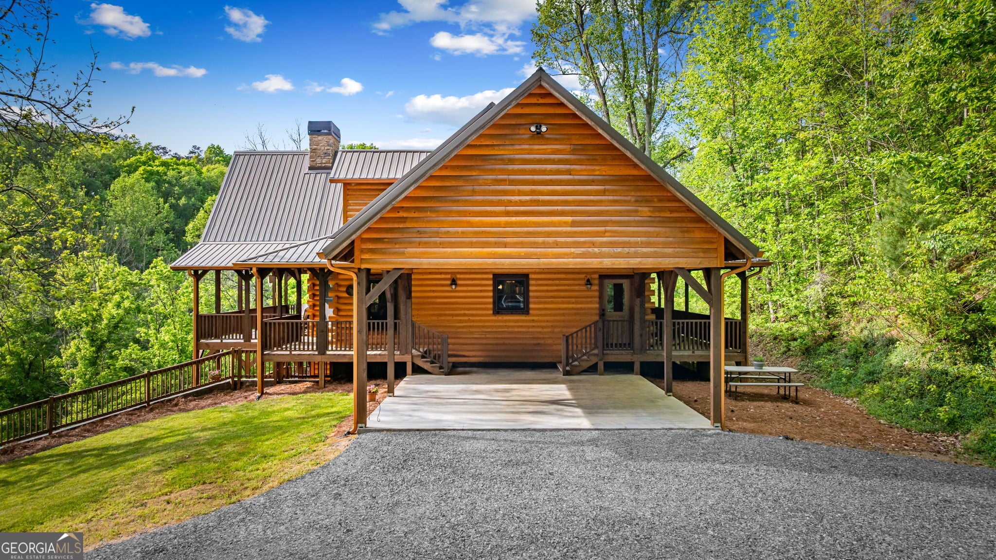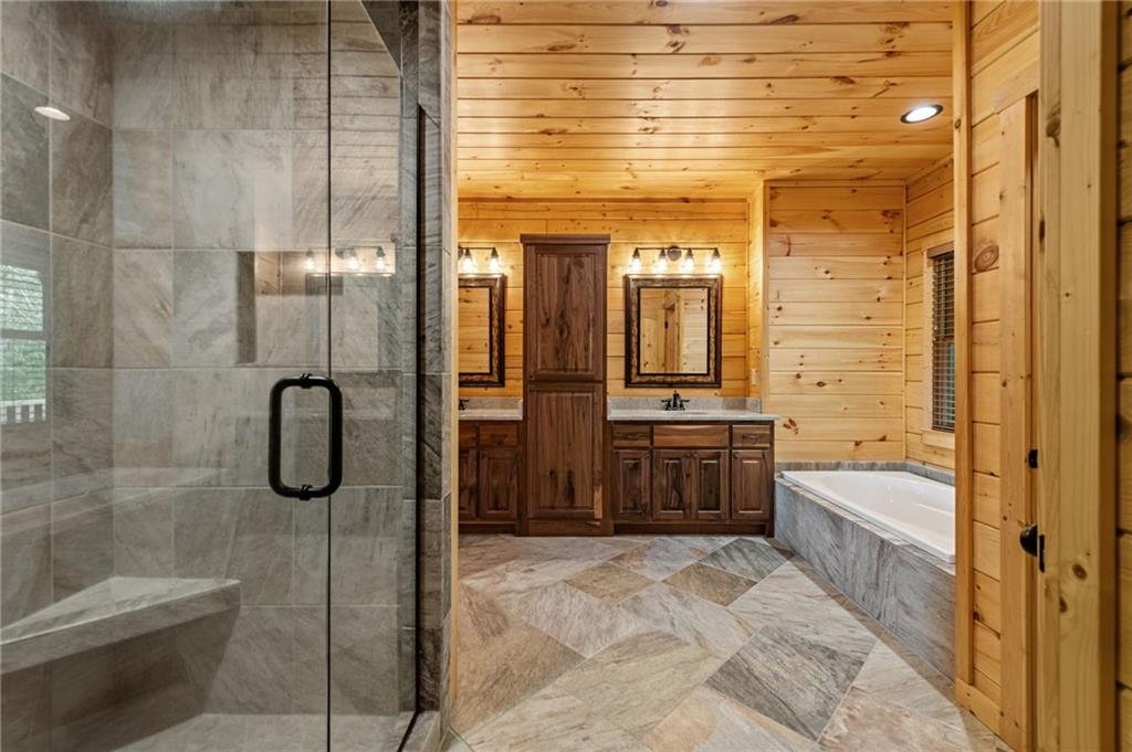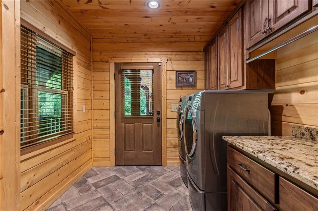 RARE opportunity to own a truly one-of-a-kind Ellijay retreat76.68 acres within the city limits, yet completely private, peaceful, and off-grid, all just a short walk to Downtown! This exceptional Satterwhite Log Home offers 5BR/4.5BA across three levels of living, with Ellijay River frontage, a beautiful year-round flowing creek, multiple springs, and a perfect blend of open pasture and wooded terrain. Private off-road trails wind throughout the propertyideal for UTV and Jeep adventures. Inside, youll find a warm all-wood interior with a welcoming foyer, soaring cathedral ceilings with exposed beams, and a wood-burning fireplace anchoring the great room. The well-appointed kitchen features granite countertops, stainless appliances, gas range, tumbled marble backsplash, pantry, and a mudroom/laundry combo, along with sought-after Blue Buggy wood accents that add character throughout. The main-level primary suite is generously sized, while the upper level offers two private ensuites and a spacious loft overlooking the creek and pasture. The finished terrace level is designed for entertaining or guests, featuring a large family room with gas log fireplace, wet bar, two additional bedrooms, full bath, and ample storage. Enjoy outdoor living on the full wraparound porch and lower-level covered deck, plus a 2-car carport/portico, outbuilding for storage, and fenced dog area. Built with true quality, this home also offers underground power, fiber internet, private well, buried propane tank, and two HVAC units. With no HOA and endless room to explorewhether riding, gardening, or relaxing by the waterthis is the perfect blend of privacy, acreage, and in-town convenience a legacy property families hold for generations!
