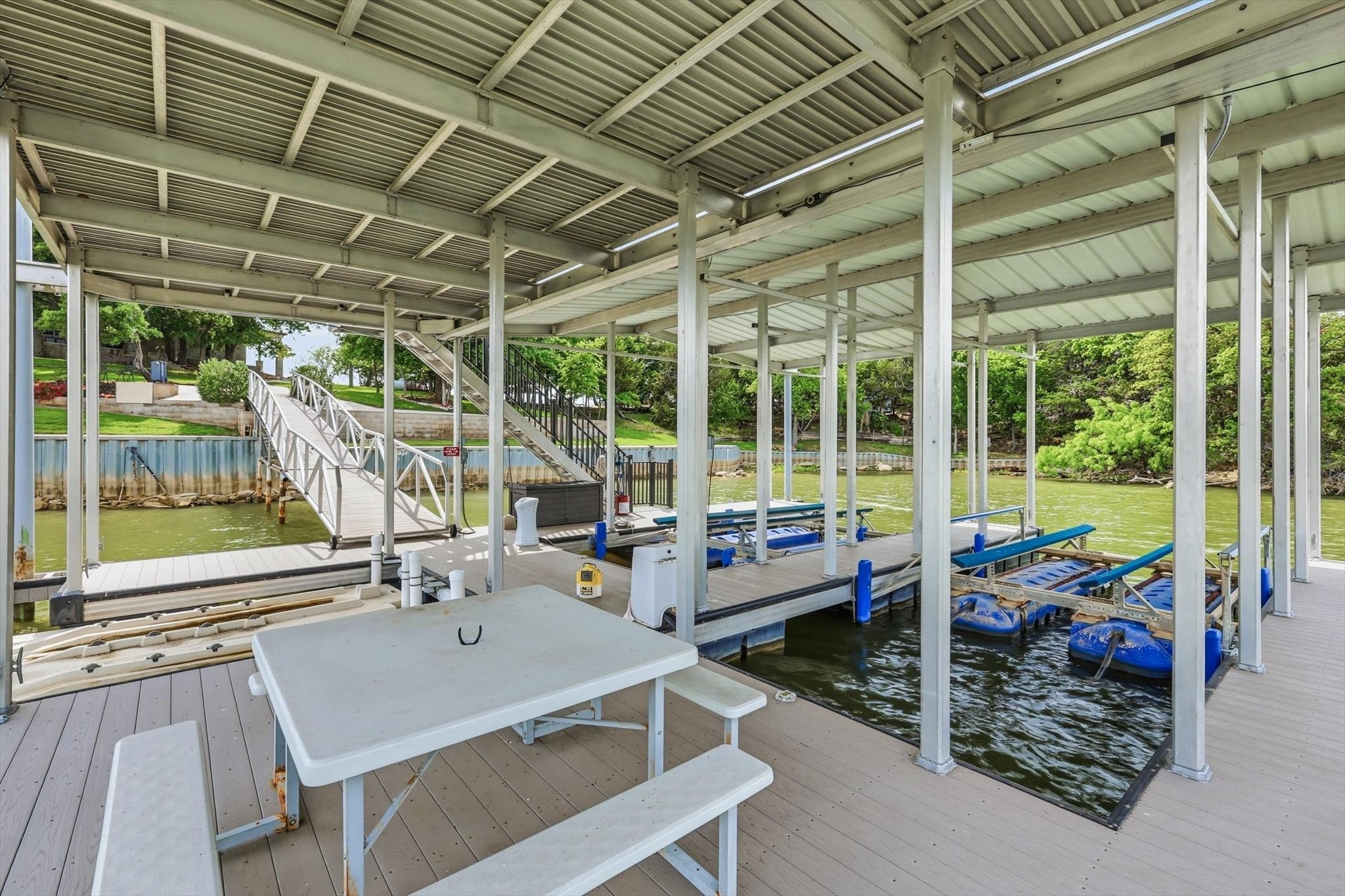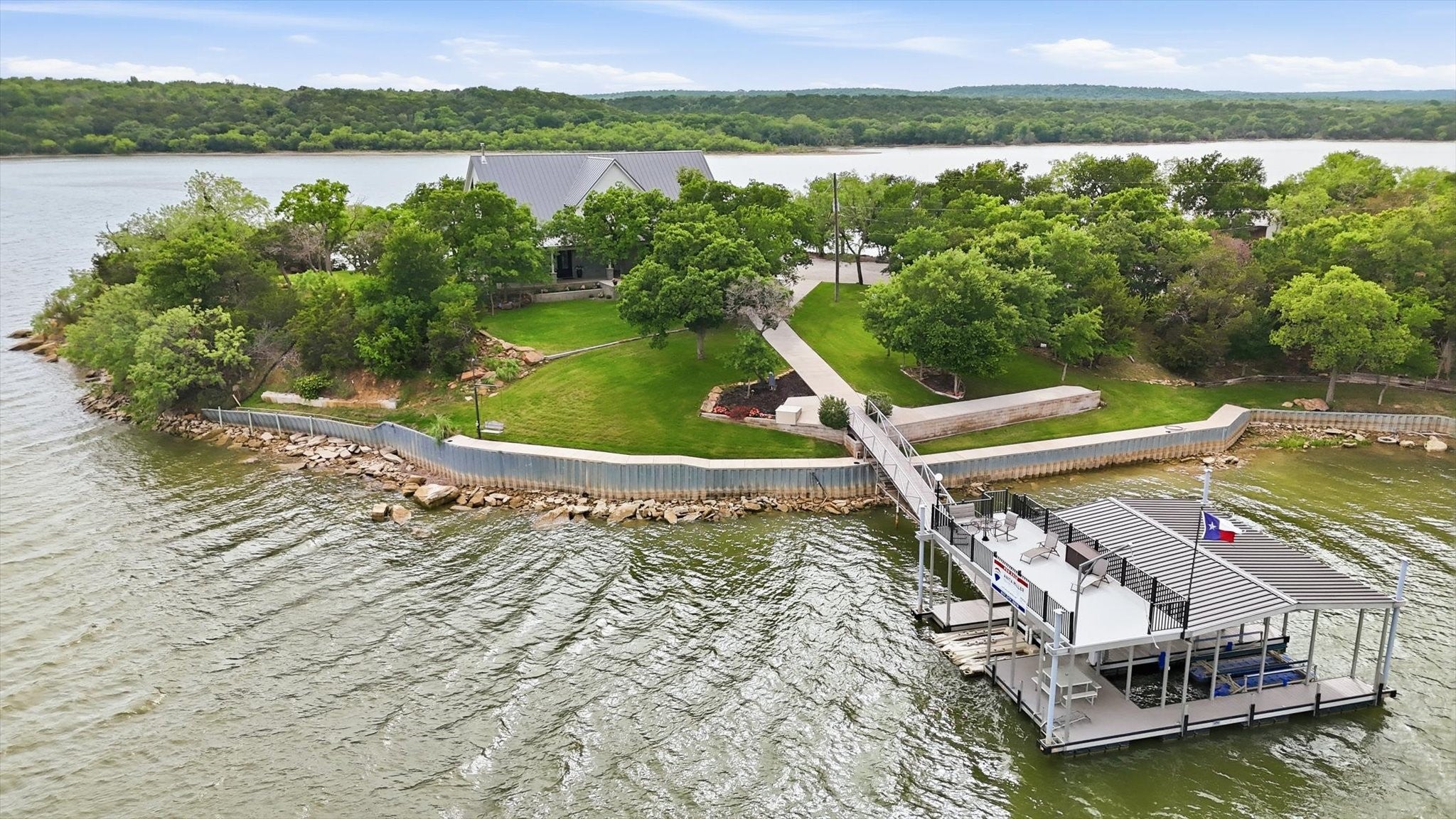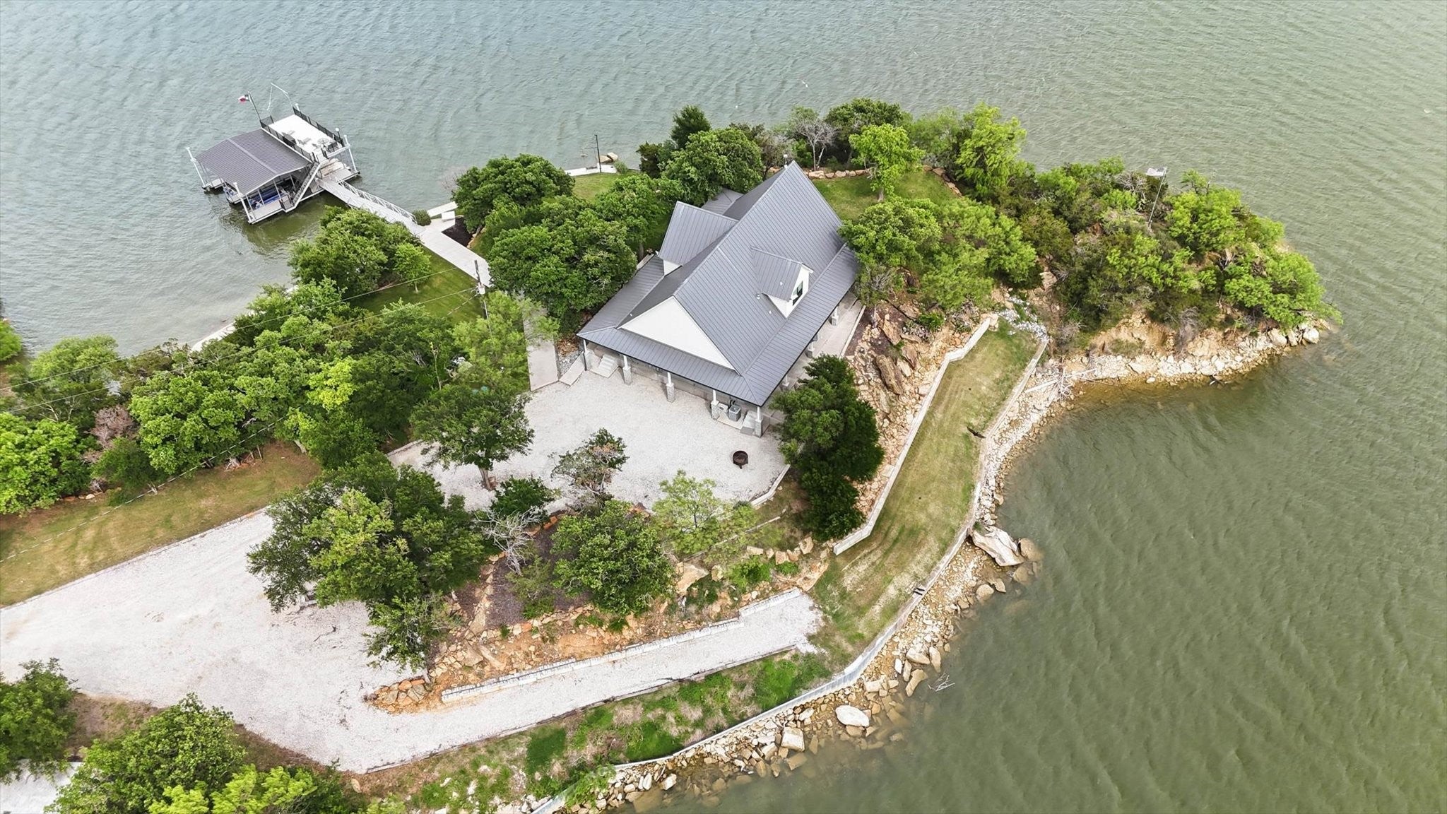 Set on the peaceful west side of PK, this property sits on 1.5 acres of secluded waterfront providing outstanding privacy, calm DEEP waters and expansive open lake views. The property is thoughtfully arranged to highlight outdoor living with tiered terraces, shaded gathering areas and stone pathways that lead naturally to the waters edge, a multilevel private dock serves as the centerpiece of lake life. The dock features 2 boat slips, 1 personal watercraft slips & generous covered, open areas designed for relaxing or entertaining family & friends, Completed in 2022, the custom built home offer a modern open layout that connects seamlessly to the outdoors. The main living area features soaring ceilings, expansive windows framing the lake, statement lighting and a centrally located wood-burning stove. The chefs kitchen is designed for gathering after long days on the water & includes premium stainless steel appliances double refrigerator & ovens, abundant cabinetry & ample storage. The main level includes a spacious primary suite with a soaking tub, walk-in shower & separate closets, along with a guest bedroom full bath & utility room. Upstairs, a loft overlooks the living area accompanied by 2 additional bedrooms, a full bath and generous storage. An unfinished attic space offers flexibility for future expansion. This private peninsula property delivers a rare opportunity to enjoy P K Lake at its finest- combining privacy, modern luxury, protected waterfront & spaces designed for true lake living.