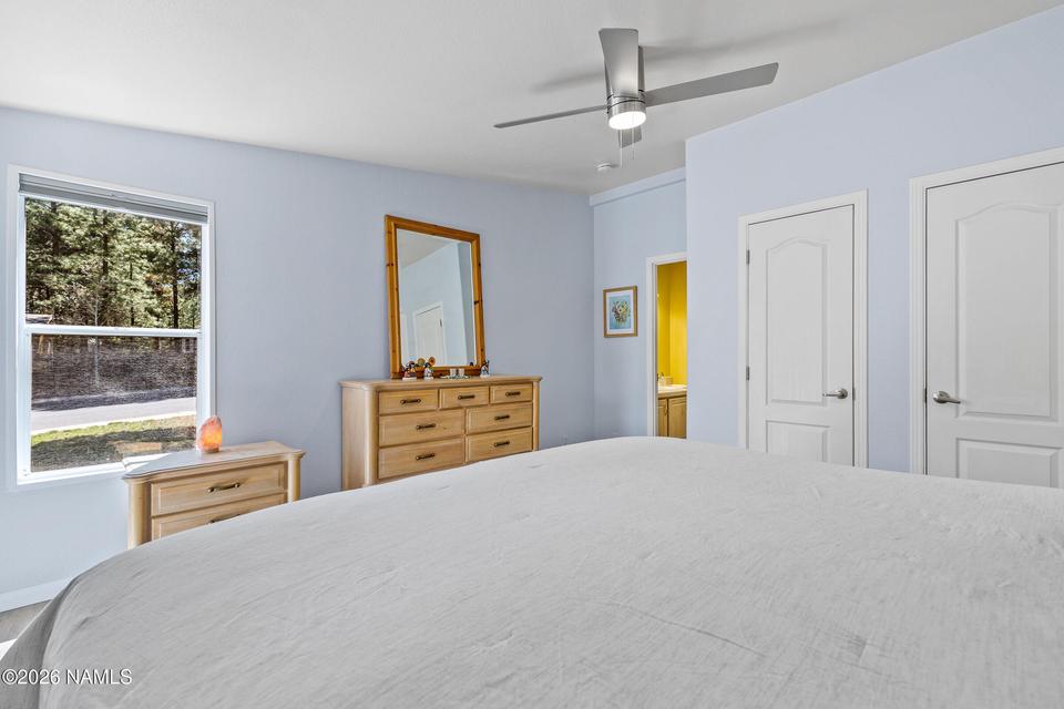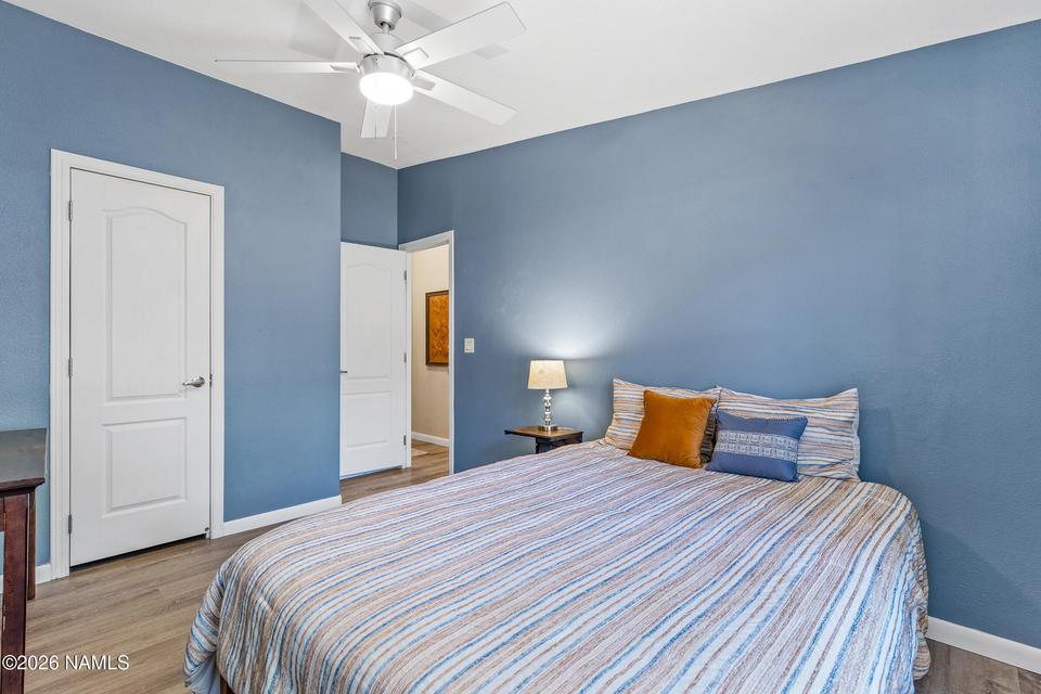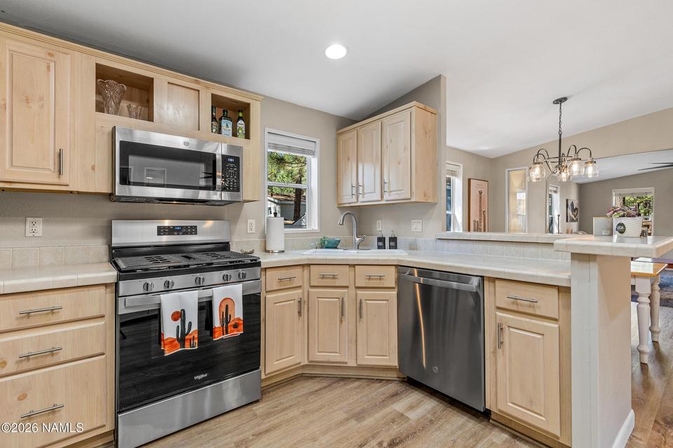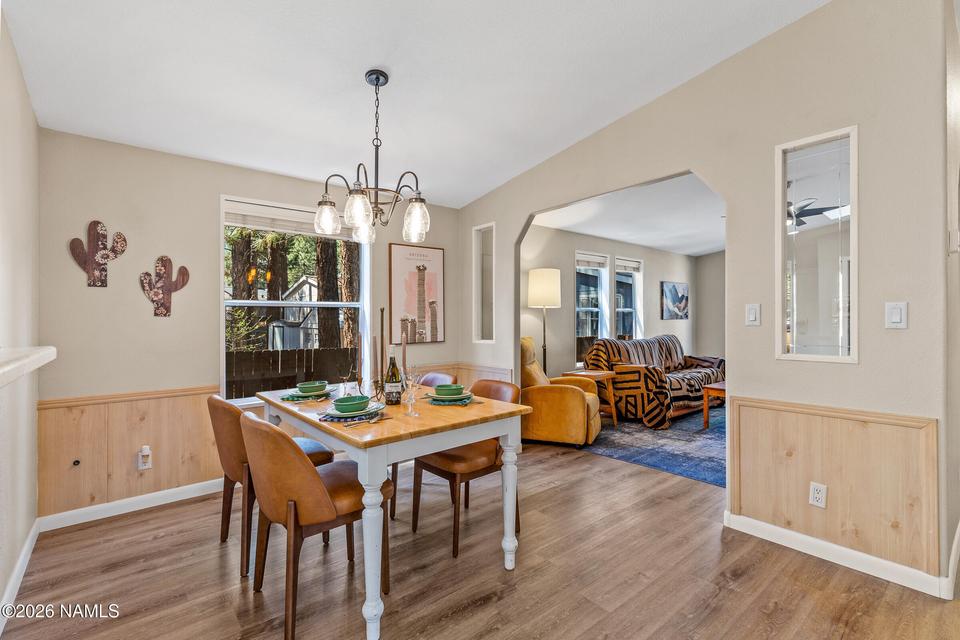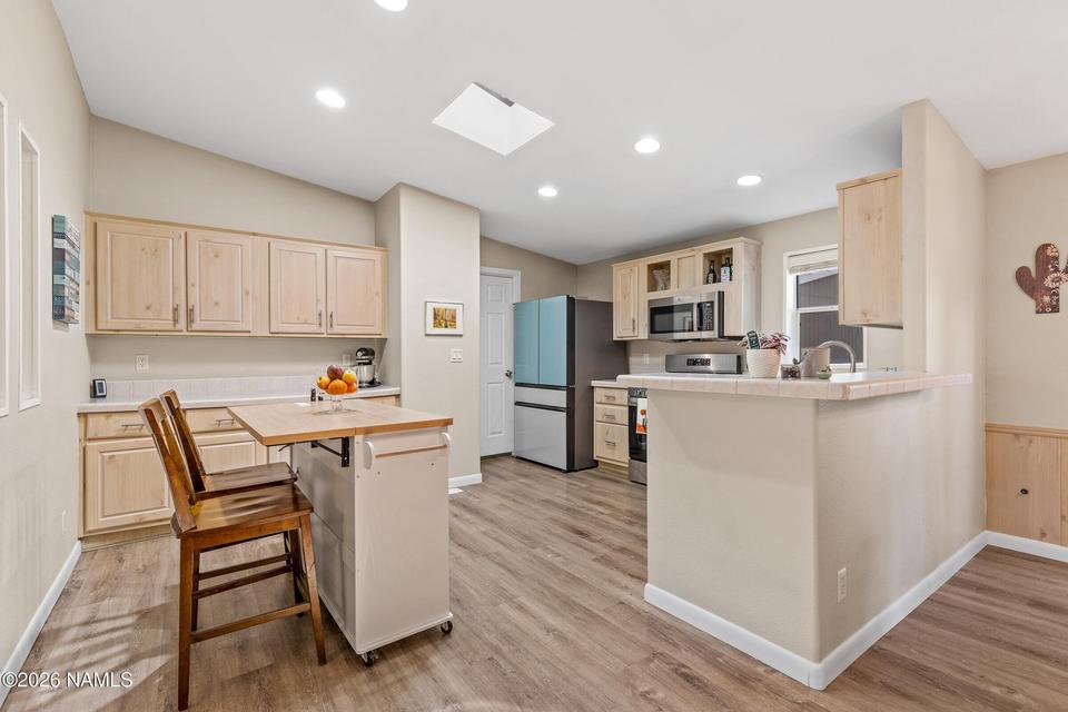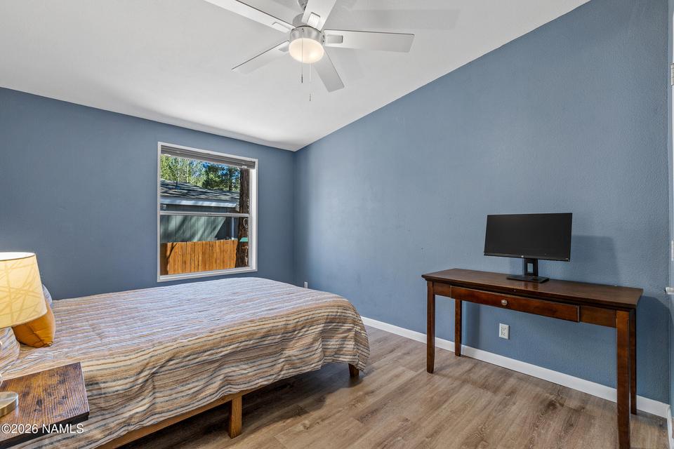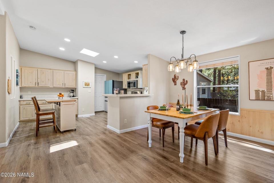 This meticulously maintained 3-bedroom, 2-bath split floor plan home in Railroad Springs offers both comfort and style. Upon entry, youre welcomed into a bright living room with vaulted ceilings, updated luxury vinyl flooring, and a cozy wood-burning stove, perfect for relaxing winter evenings. The oversized kitchen has been recently updated with new stainless steel appliances and flows seamlessly into a family room, creating an ideal space for entertaining. The primary suite features vaulted ceilings, dual closet, an oversized bathroom, and abundant natural light from multiple windows. On the opposite side of the home, youll find two guest bedrooms and a recently updated bathroom with a new tub/shower and toilet. Enjoy Flagstaffs beautiful summer days in the enclosed backyard, surrounded by towering ponderosa pines. Additional updates include new ceiling fans throughout, an updated furnace and A/C, new water heater, garage door opener, and fresh interior and exterior paint.Located just minutes from Flagstaffs top dining, shopping, and NAU, and within walking distance to a community park with a large grassy field, this home is perfect as a primary residence, investment property, or seasonal retreat. Dont let this incredible opportunity pass you by
