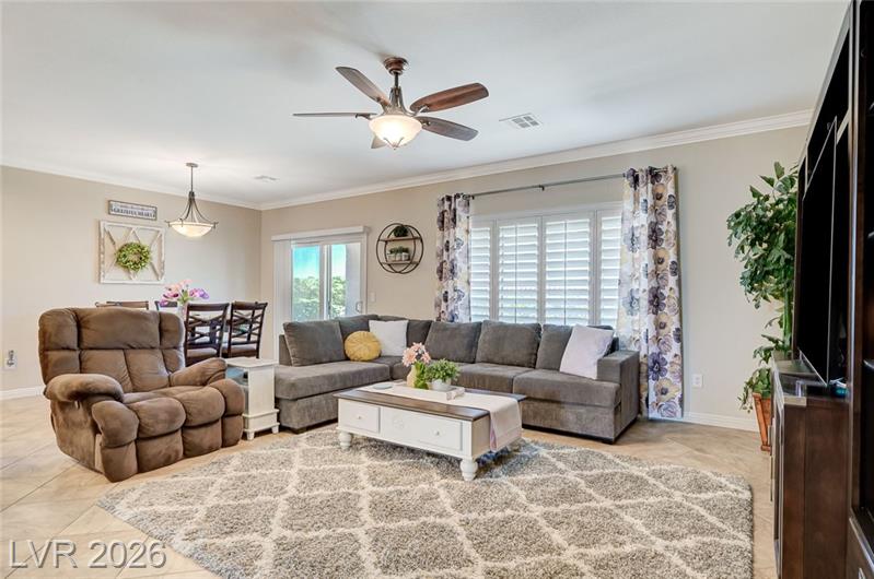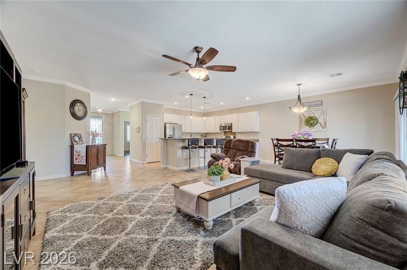 Welcome to Sun City Anthem!! Great Curb Appeal!! Popular Carolina Model!! Loaded With Upgrades and Extras!! Crown Molding!! Granite Counters!! Breakfast Bar!! Stainless Steel Kitchen Appliances!! 24 Tile and Wood Laminate Flooring!! Elevated Lot With Peaceful Mountain Views!! Covered Patio!! Boss Security Screens on Windows and Patio Door () !! New HVAC July 2025!! Water Heater Only 3 Years Old!! Ceiling Fans Throughout!! Shutters!! Spacious Room Sizes!! Fantastic Community Center With Fitness, Clubhouse, Pools, Two Golf Courses and Much, Much More!! This Home Will Not Disappoint!! Best In Class!!