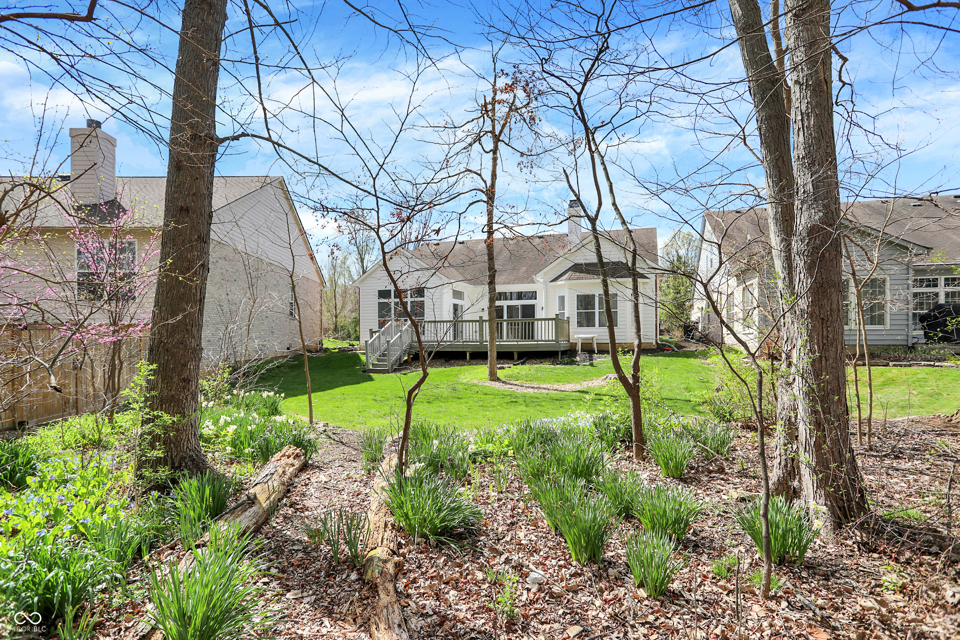 Beautiful home set on a desirable lot in Fairgreen Trace, offering a perfect blend of comfort, location, and curb appeal. This 3-bedroom, 2-bath home features 2,536 square feet of well-designed living space with 10-foot ceilings and abundant natural light throughout. The main level showcases hardwood floors and a spacious great room with a cozy gas fireplace and oversized windows that frame stunning views of the private 5-acre wooded backdrop. The kitchen comes fully equipped with all appliances, and the washer and dryer are also included for added convenience. Enjoy the peaceful setting year-round from the large composite deck or the inviting den/sunroom overlooking the woods-perfect for relaxing or entertaining. Upstairs, you'll find a versatile bonus room along with massive attic storage. Additional highlights include a sprinkler system and security system, making this home as practical as it is beautiful. Ideally located less than half a mile from the entrance to the Monon Trail, just one mile to the Monon Center, and only 1.5 miles to concerts at the gazebo, this home offers easy access to some of the area's best amenities-perfect for walking or biking. This is a rare opportunity to own a home with beautiful wooded views in a highly sought-after neighborhood.