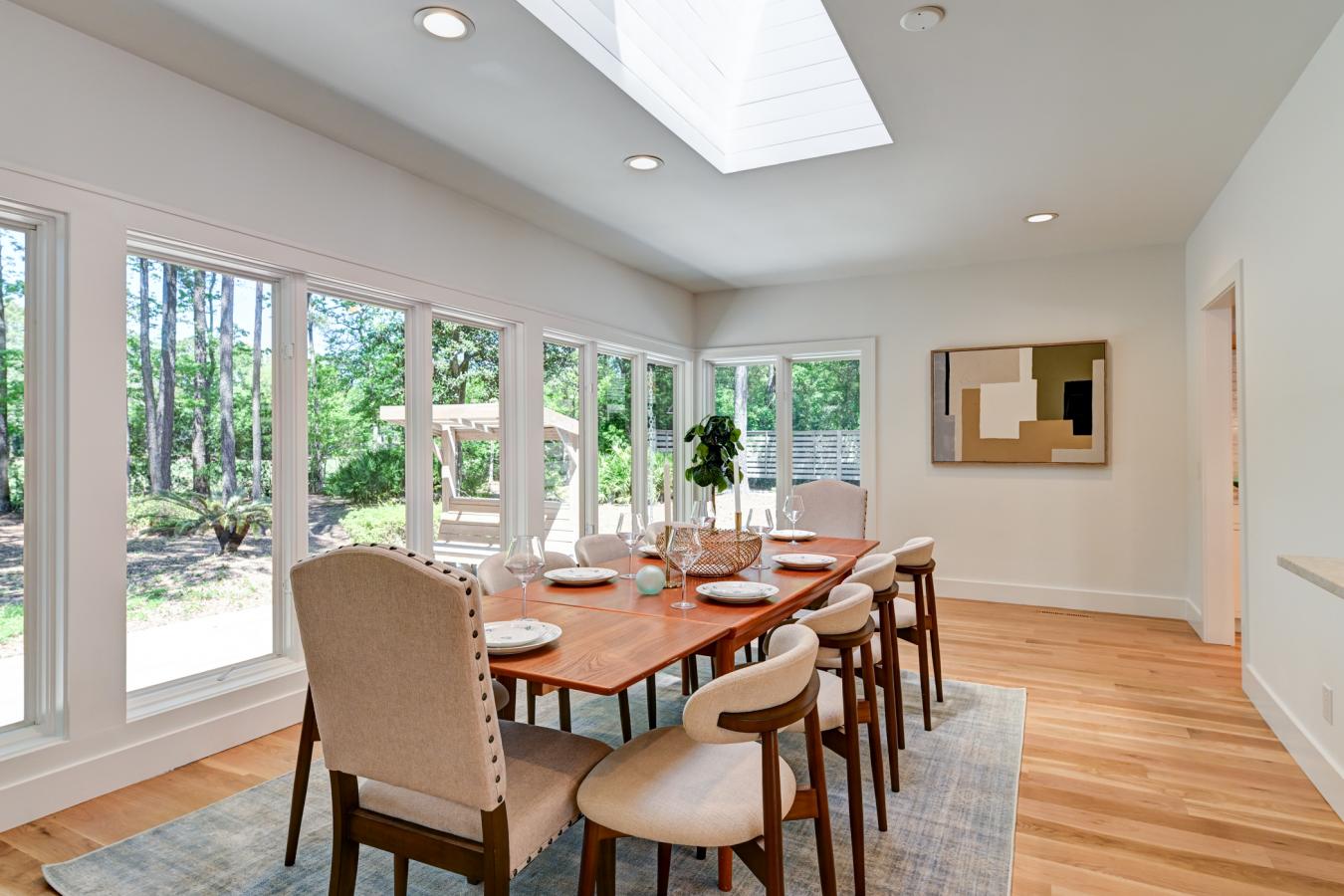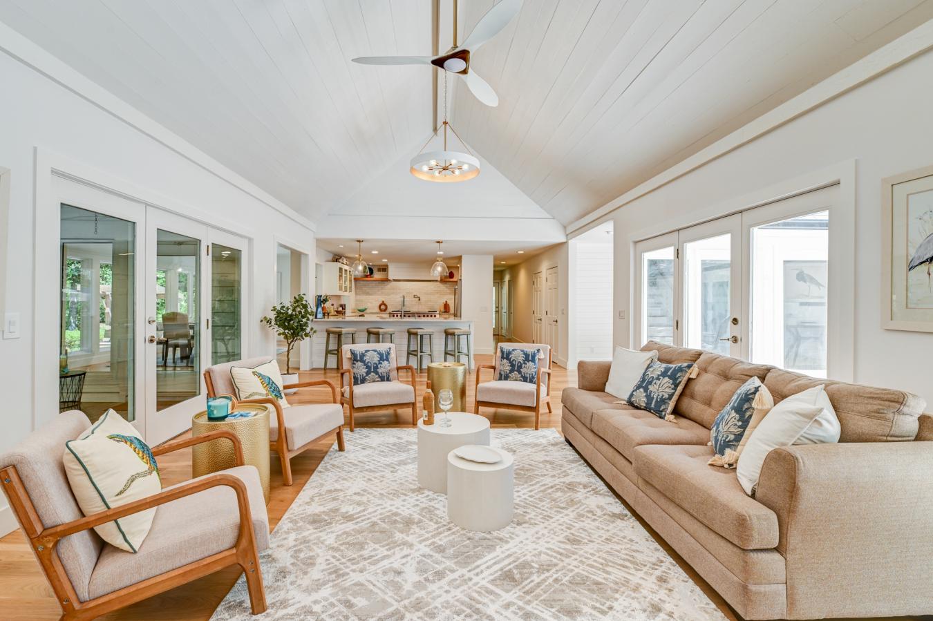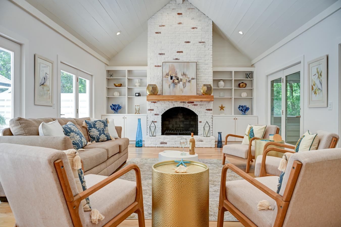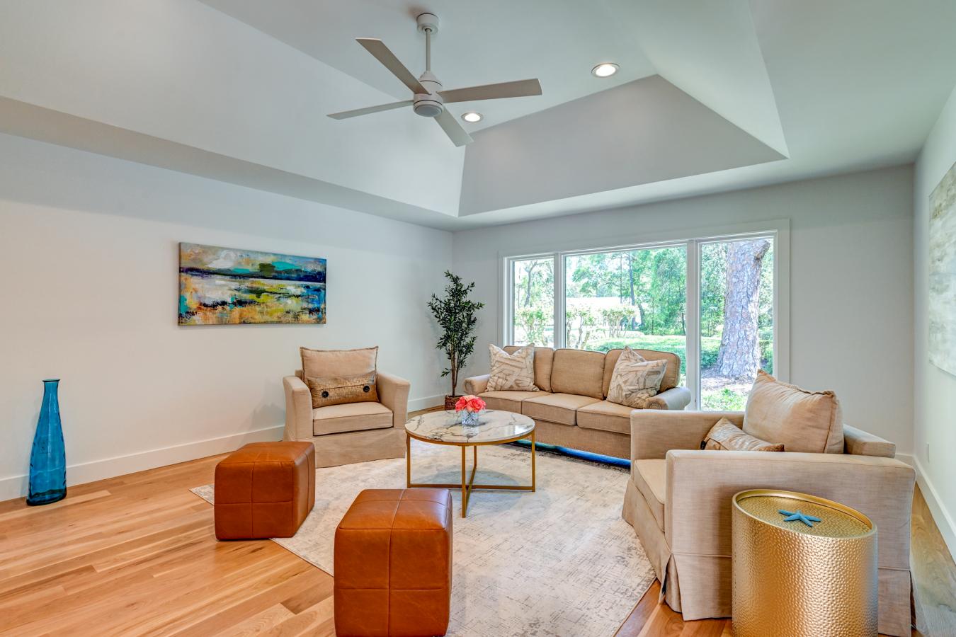 Welcome to this beautifully reimagined luxury residence in the sought-after deep-water community of Spanish Wells, where timeless coastal elegance meets modern sophistication. This home was completely renovated in March 2026, showcasing exceptional craftsmanship & thoughtful design throughout. Upon entering, you are greeted by gorgeous solid white oak flooring that flows throughout the main level, creating a warm and refined atmosphere. The spacious living room, highlighted by a tray ceiling and natural light from newly installed windows, offers an inviting yet elegant setting for everyday living. At the heart of the home is the stunning chefs kitchen, beautifully appointed w/granite countertops, stainless-steel appliances & a professional-grade 6-burner double oven w/pasta filler faucet. A generous pantry & additional storage ensure both beauty & functionality. The kitchen opens seamlessly to the expansive great room, where vaulted ceilings & a striking brick wood-burning fireplace w/custom built-ins create a dramatic yet comfortable gathering space. Designed for effortless entertaining, the home also offers a private courtyard on one side & a large screened Carolina room on the other, perfect for enjoying the coastal climate year-round. A formal dining room just off the kitchen provides an elegant setting for hosting memorable dinners & celebrations. The open-concept layout blends modern luxury w/relaxed coastal living, making this home ideal for both entertaining & everyday comfort. The luxurious primary suite is a private retreat featuring an oversized walk-in closet w/a built-in closet system. The spa-inspired primary bath includes a freestanding soaking tub, separate shower, dual vanities, & a private water closet, offering a serene sanctuary. There are sliding doors that lead to the private courtyard. Also on the first floor is a newly constructed guest bedroom with a full bath, ideal for guests or multi-generational living. A laundry room & stylish half bath are conveniently located down the hall from the kitchen. Upstairs, two additional bedrooms w/new carpeting share a beautifully updated full bath, providing comfortable accommodations for family & visitors. This 4-bedroom, 3-bath residence sits on an expansive lot of just over one acre, offering privacy & space to enjoy Lowcountry living. The property features a circular driveway, a spacious two-car garage & additional parking. See list of additional features