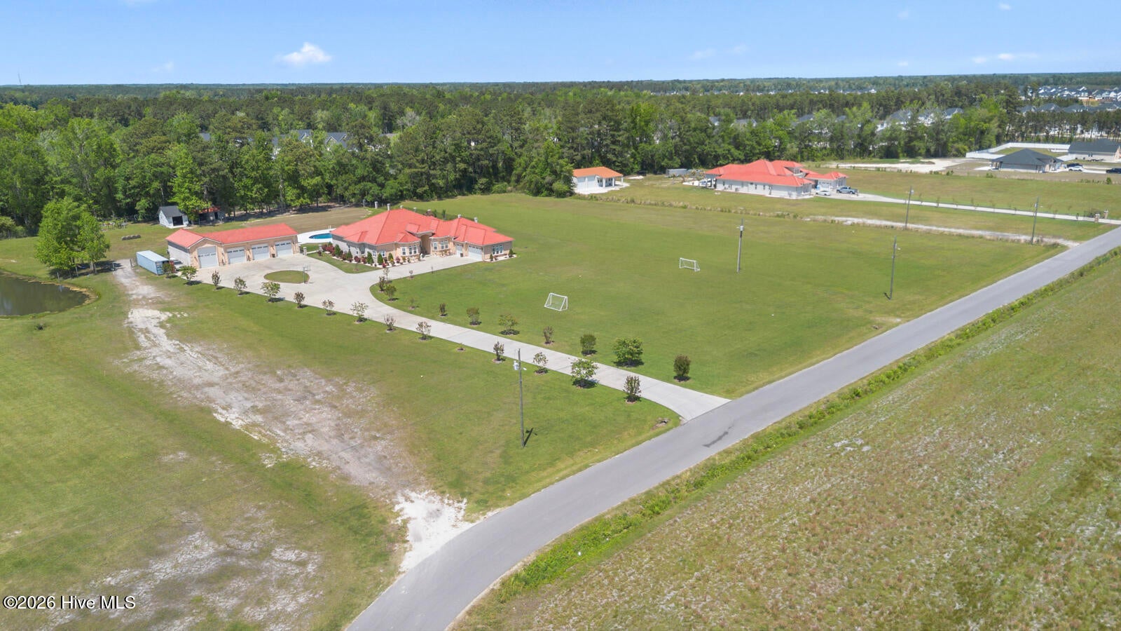Welcome to your dream home!! This custom built masterpiece, completed in 2022, boasts 5 beds Office Gym, 6 baths, and a sprawling 5,118 SqFt beautifully crafted living space! Enjoy the exclusivity of NO subdivision, NO HOA, or city limits!This custom-built masterpiece showcases the finest in high end materials and craftsmanship, beginning with a grand foyer featuring soaring 22 ceilings and premium porcelain tile flooring that flows seamlessly throughout the home. Step inside and be captivated by the open concept design that blends beauty and functionality. The chefs kitchen is a dream offering a massive island, custom cabinetry, stainless steel appliances and the perfect layout for cooking, entertaining and gatherings. Additional interior highlights include a dedicated office, a versatile gym/bonus room, and a stunning built-in bar designed for unforgettable hosting!The generously sized bedrooms each offer comfort and style, while the primary suite delivers unparalleled luxury with expansive windows that fill the space with natural light, spacious dual closets & a spa-inspired bathroom complete with high end finishes for your own private retreat.Step outside and experience your very own private oasis, complete with a brand new in ground pool featuring varying depths & a ready to install waterfall hookup! For ultimate convenience, an outdoor half bath is located close by, making poolside living effortless. Entertain guests beneath the oversized custom built pergola, relax within the fenced backyard & enjoy the practicality of a large storage shed paired with a beautifully crafted custom chicken coop/storage building. As you explore the property, the serene private pond adds the perfect finishing touch to this remarkable outdoor retreat! Rare 2,800 sqft garage ideal for cars, boats, RVs, storage, or events! Whether you need space for vehicles, equipment, or a functional area for business & entertainment, this property truly checks every box!!