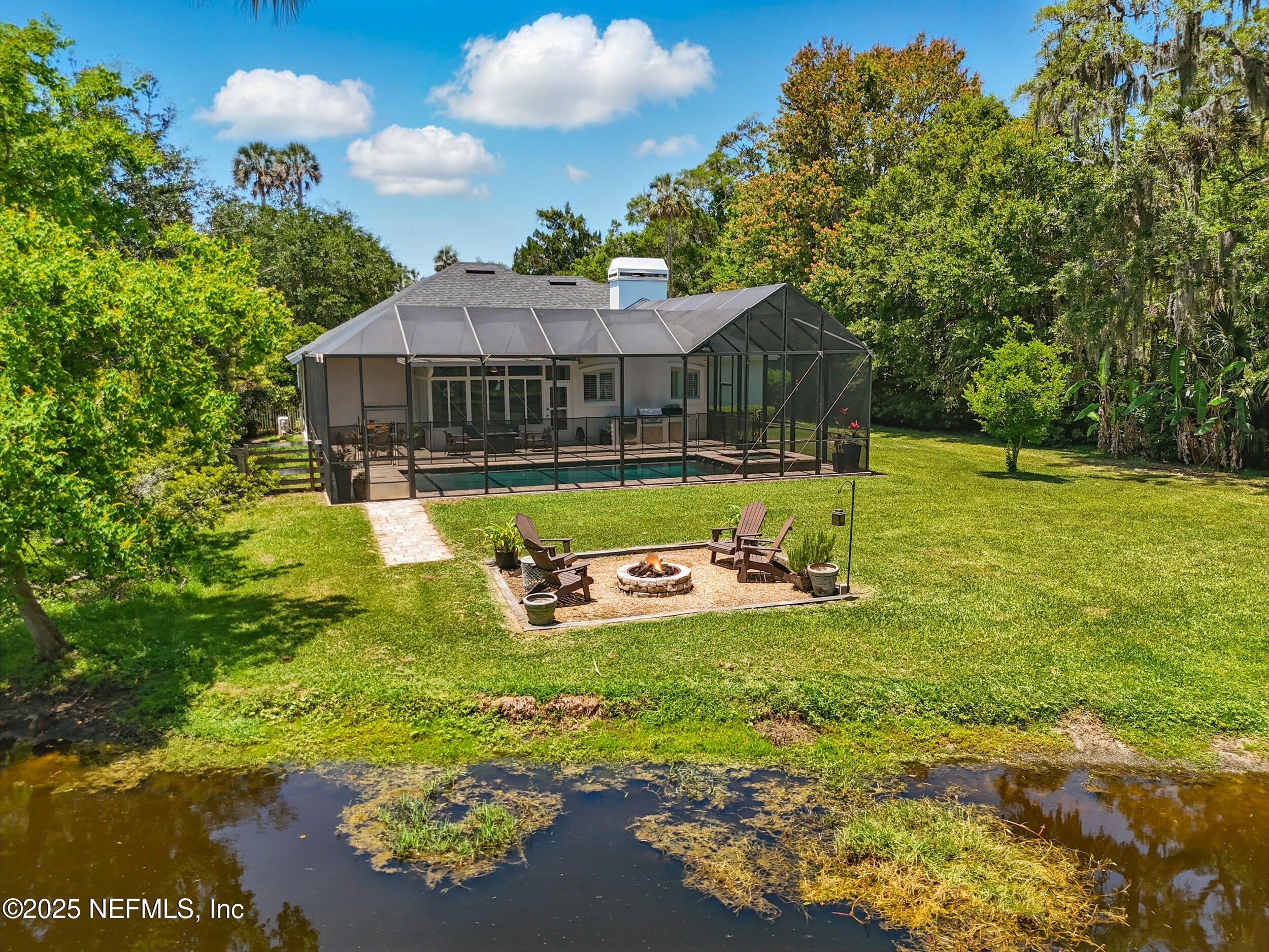 Nestled on a private 1.67-acre estate across from the Intracoastal Waterway and only 2 miles from the Atlantic Ocean, this impressive Roscoe Blvd. estate features over 3,100 square feet, 4 spacious bedrooms, 3.5 bathrooms, plus a flex room/office, and sunroom overlooking the pool. Step outside to the outdoor oasis with screened-in pool, spa, summer kitchen, wood burning fire pit area, pond plus a full-size pickleball and basketball court. The home features 2 primary suites, 2 additional bedrooms with a newly updated jack and jill bathroom Plenty of parking and space to store your boat as the boat ramp into the Intracoastal Waterway is a 4 miles away. Flood insurance is not required as home is in Flood Zone X. Home is on city water and city sewer with a well for irrigation. No HOA or CDD fees and plenty of room for a detached garage or guest house! Excellent rental history as a short term rental and can be sold fully furnished. Extensive list of updates including 2020 Roof. Update list:Home is on city water and city sewer with a deep well for irrigation.2025 Jack and Jill Bathroom remodel2025 Gas Spa Heater2025 New Pool Light2025 Painted Basketball/Pickleball Court2023 New 8 Front Doors; Reclaimed Brick Front porch2021 Board and Batten; French Doors in Office/Flex Space2021 Exterior Bermuda Shutters2021 Exterior of Home Painted in SW Pure White2021 New Carrier Mini Split for Sunroom/Office2021 Shiplap over Fireplace; Board and Batten in Powder Bathroom2021 Removed Septic System and Tied into City Sewer2021 Added Sub Electrical Panel2021 Custom Closets Installed in Primary Bedrooms2021 Plantation Shutters in Primary Bath, Front Primary Bedroom, Dining Room; Family Room2020 Roof2020 Ranaii Tankless Gas Water Heater2020 Summer Kitchen2015 Basketball Court Concrete Poured2015 Dog Watch Electric Fence2018 Irrigation Well Pump Replaced2015 HVAC 2015 Addition2014 Pool, Spa and Screen Enclosure2013 Whole Home Remodel