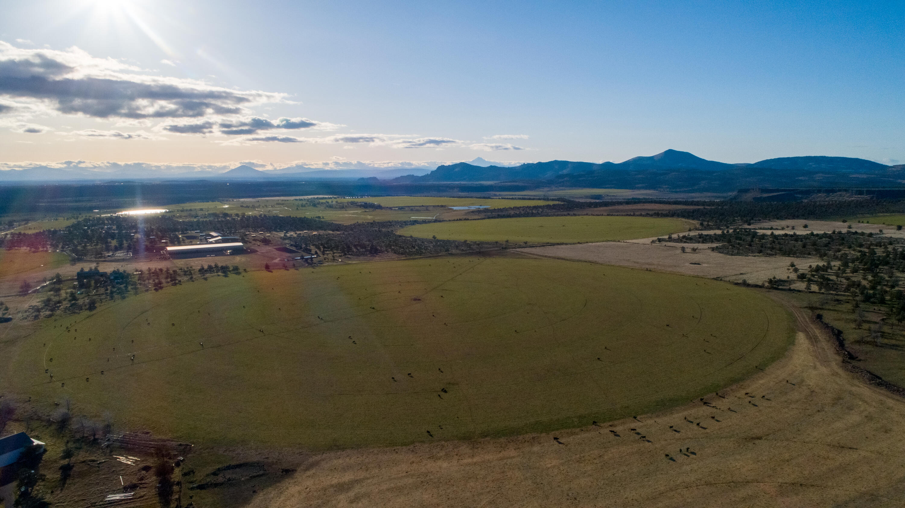 Presenting a truly exceptional legacy horse center set in the heart of Central Oregon, where refined luxury meets the untamed beauty of the Cascade Mountains. Surrounded by crystal-clear lakes, winding rivers, lush pastures, & the beauty of Smith Rock, this extraordinary property offers a level of privacy, scale, & natural splendor rarely found. At its core stands a world-class, 89,250 SF equestrian complex designed to the highest standards. Surrounded by 3 newer pivots; the grand indoor arena, complemented by a 150X300 outdoor arena, 17,444 SF hay shed, a private trail system, cattle loading area, round pen, & several individually fenced lots with shelters create a premier setting for training, competition, & events. With 181 meticulously designed stalls, stadium viewing, & enclosed bar, the horse center blends performance w/elevated hospitality. Thoughtfully appointed w/upgraded lighting, expansive storage, & concrete walkways, every detail reflects both functionality & excellence