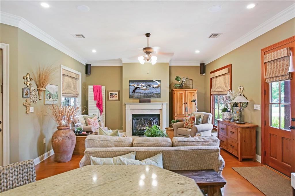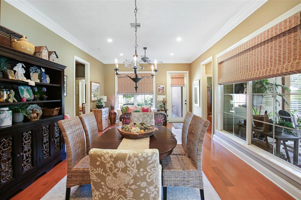 Charming Country French Home in Indian Bay. Beautiful 3 bedroom, 2.5 bath home in the desirable Indian Bay Subdivision, ideally located across from Prien Lake Park and the lake. This well-maintained home features wood floors throughout and classic Country French design. Tucked away off kitchen is staircase leading to a nicely finished bonus room. Perfect for home office of private den. The outdoor space is perfect for entertaining or relaxing, with a heated and saltwater pool, two patio areas, and gorgeous landscaping. Enjoy added peace of mind with a whole-house Generac generator. Situated in an awesome neighborhood with a prime location close to everything, this home offers both comfort and convenience.