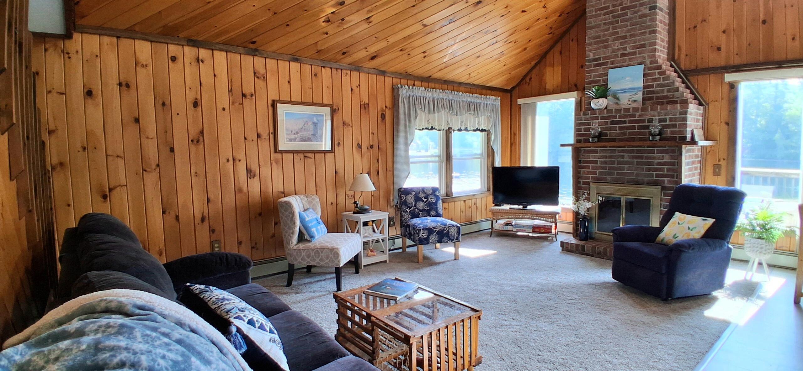 Year-Round home on Lower MOUSAM LAKE with rare sought- after boat house. Incredible lake views in a no-wake zone with aluminum dock. Lovingly maintained by the same family for over 40 years. Your new adventure and memories await in this bright and happy year-round home. Cozy wood burning floor to ceiling fireplace. A loft area with master bedroom, includes a sweet reading nook with water views. Vaulted ceiling with ceiling fans and a wall of windows. Wrap around large deck with second massive deck over boathouse. Lower-level patio with plenty of room for guest. 3 spacious bedrooms, with full finished and heated walkout basement along with a utility room and a generator hook up. Plenty of storage in the large shed, and ample parking at driveway and more at the top of the driveway. Newer oil furnace (2020) with 2 oil tanks, replacement windows (, (2019) and vinyl flooring in kitchen and bath and new carpet in living room. (2025) Home is being sold fully furnished, along with 3 kayaks and lake floats. (except for a few personal items Boat house and shed being sold as is. Come take a look at this amazing property and be in for the summer season! Square footage is approximate. Showings start Friday April 24.