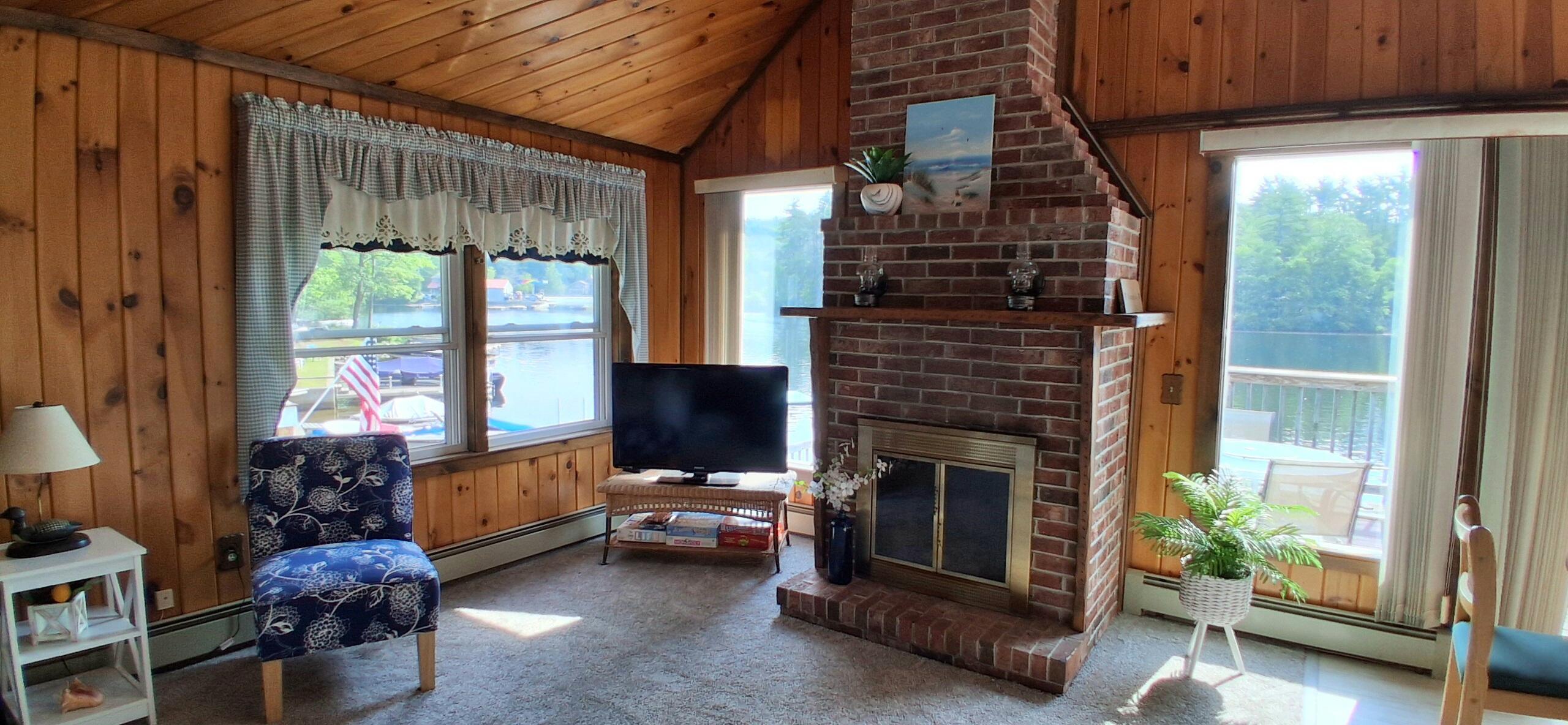 Year-Round home on Lower MOUSAM LAKE with rare sought- after boat house. Incredible lake views in a no-wake zone with aluminum dock. Lovingly maintained by the same family for over 40 years. Your new adventure and memories await in this bright and happy year-round home. Cozy wood burning floor to ceiling fireplace. A loft area with master bedroom, includes a sweet reading nook with water views.