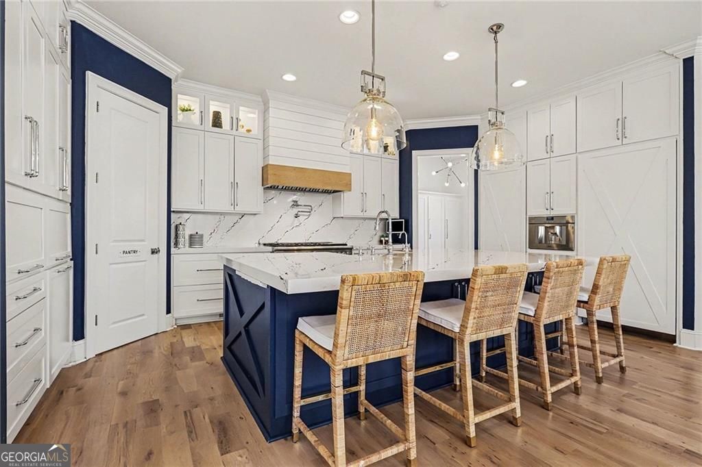 Stunning 7,761 square feet home with a Southern Style Rocking Chair Front Porch, 10 Foot Ceilings, 5 bedrooms, 5 & 1/2 Bathrooms with 3 Fireplaces, on a 1 Acre Private Cul-de-sac Lot, that has had almost 550,000 in improvements & upgrades since the home was originally purchased new in 2018. This home shows better than many Model Homes! Each Bedroom has a Private En Suite Bathroom for comfort & privacy. Major improvements include a completely renovated truly Show Stopping, WOW Chefs Kitchen with a Walk-in Pantry, Custom Designed Soft Close Cabinets, high end Thermador Stainless Steel Appliances including a Double Oven, Steam Oven & Warming Drawer with an 6 burner Gas Cooktop & Griddle, Thermador side by side Refrigerator & Freezer, plus a built-in Professional Espresso Machine as well as two Dishwashers & Cambria Quartz Countertops. The original floors have been upgraded throughout the home with gorgeous custom designed White Oak Hardwood Floors. As you enter the two story entry foyer you can see the wall of windows & Fireplace in the Great Room in the distance on the back of the home. On your right there is a Formal Living Room with French Doors currently being used as a Home Office. On your left is a Formal Executive Dining Room large enough for entertaining 12 with access to the Butlers Pantry Serving Area, Chefs Kitchen, Informal Dining Room & Keeping Room with Fireplace on the back of the home. The Chefs Kitchen, Informal Dining Room & Sitting Room/Family Room with Fireplace have a view to the Great Room & the large Back Deck as well as the Private partially cleared wooded backyard. Off the Chefs Kitchen there is a Mud Room & access to the 3 Car Garage. There is also a Guest Bedroom with a Full En Suite Bathroom Plus another Guest Bathroom/Powder Room on the Main Level. As you walk upstairs on the left side of the home over the 3 Car Garage is the Large Stunning Master Suite Retreat which is your own private Sanctuary, complete with a separate Sitting Room including a Fireplace, an Amazing Spa Bathroom with a large custom glass Shower & Soaking Tub, plus a huge Walk-in Master Closet with custom cabinets & drawers. There is also another large upstairs Flex Room, Family Room/Game Room/Media Room/Play Room or Office with a tray ceiling & a curved wall of windows located on the back of the home The other 3 upstairs Bedrooms each have private Bathrooms as well as their own unique style & views. The unfinished 2,498 square foot Open Concept Terrace Level is waiting for you to custom design your additional Personal Dream Home Living Space. Plumbing already exists for a second Kitchen or Bar & a Full Bathroom. There is plenty of room for another Bedroom/In-Law Suite, Dining Room, Game/Pool Room, Family Room, Home Gym, Living Room, Media Room, Wine Cellar & additional storage. The large Private level backyard is large enough for a Swimming Pool, Hot Tub, Fire Pit & Outdoor Kitchen designed to meet your desires & needs. In the meantime, the neighborhood HOA has a Swimming Pool, Cabana/Clubhouse & Tennis Courts. This is truly one of the most desirable areas for families to live in the North Atlanta Suburbs including the top rated Milton Eagles High School. The neighborhood is just minutes away from downtown Alpharetta, Avalon, Ice-Skating, Private & Public Golf Courses, Indoor Top Golf Entertainment, Restaurants, Shopping, Wills Area Park & Equestrian Center. The Chattahoochee River National Recreation Area is just a few minutes away for Canoeing, Trout Fishing & River Rafting. The Chattahoochee National Park & Forests including the beginning of the Appalachian Trail & several North Georgia Wineries, are a pleasant one to two hour drive North. If you want to search for gold just take a short drive up to Dahlonega, Georgia & visit the Dahlonega Gold Museum. Visit the Alpine Village of Helen, for good food & Octoberfest year round. Welcome home to one of the best places to live in America.