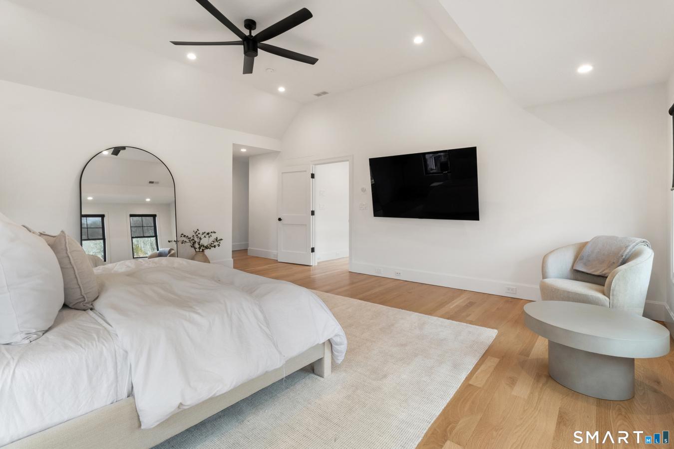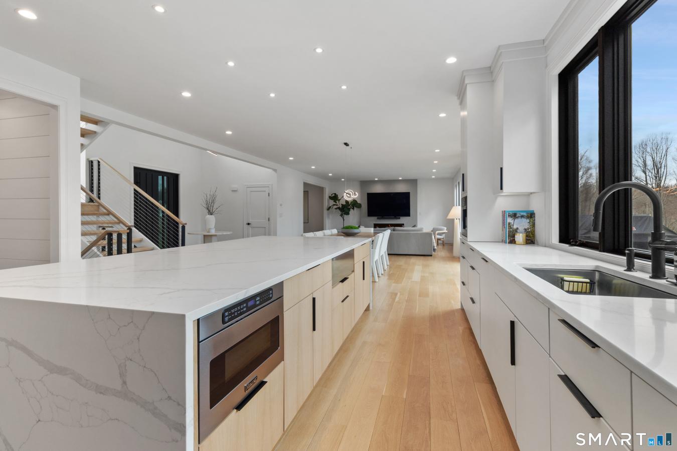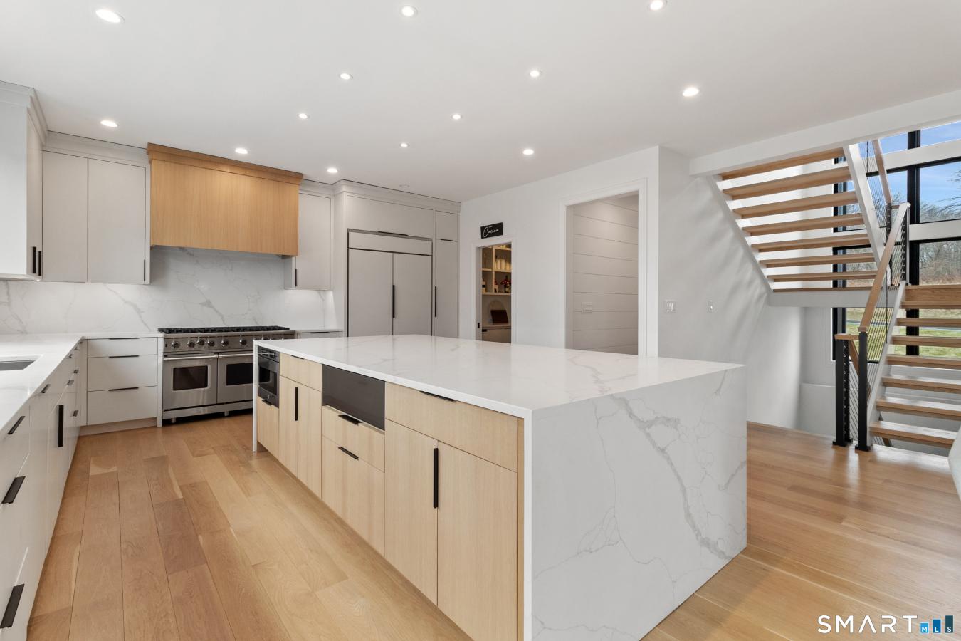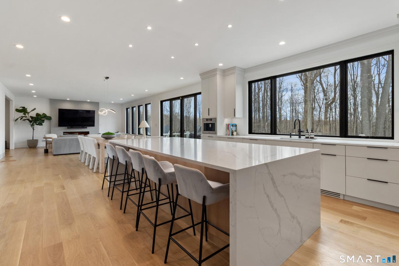 Privately set within an enclave of newer luxury homes on a serene cul-de-sac, this exceptional residence offers a refined blend of architectural elegance and modern comfort. A striking contemporary entry welcomes you into a grand two-story foyer, where designer lighting and natural light create an unforgettable first impression. Wide-plank white oak flooring flows seamlessly throughout the main living spaces, enhancing the homes open and sophisticated layout. The chefs kitchen is a true centerpiece, featuring a statement quartz waterfall island, custom lighting, and a curated selection of premium appliances, including a Viking 8-burner double oven range, Bosch suite, coffee station, and Sub-Zero refrigerator. A walk-in pantry with wine storage adds both style and functionality. Walls of glass invite abundant light while framing the homes beautifully designed outdoor living spaces, including an expansive Trex deck and a private patio surrounded by mature landscaping. The primary suite offers a tranquil retreat with dual walk-in closets and a spa-inspired bath designed for relaxation, complete with a soaking tub, walk-in shower, and illuminated mirrors with defogging features. Additional highlights include a private guest suite, Jack and & Jill bedrooms, smart home integration, and a sprinkler system-every detail thoughtfully curated through a bespoke collaboration between the seller and builder.
