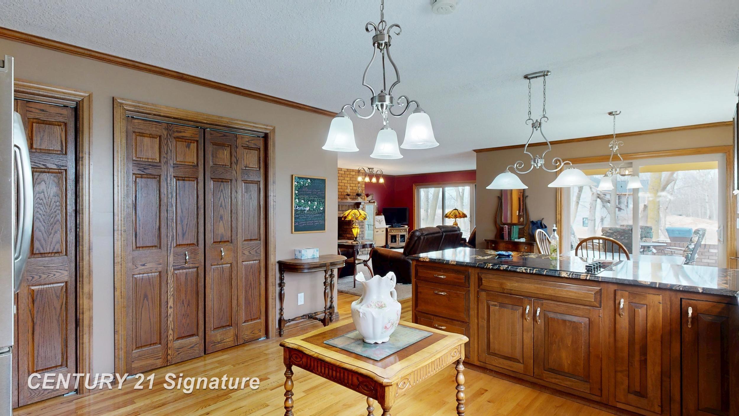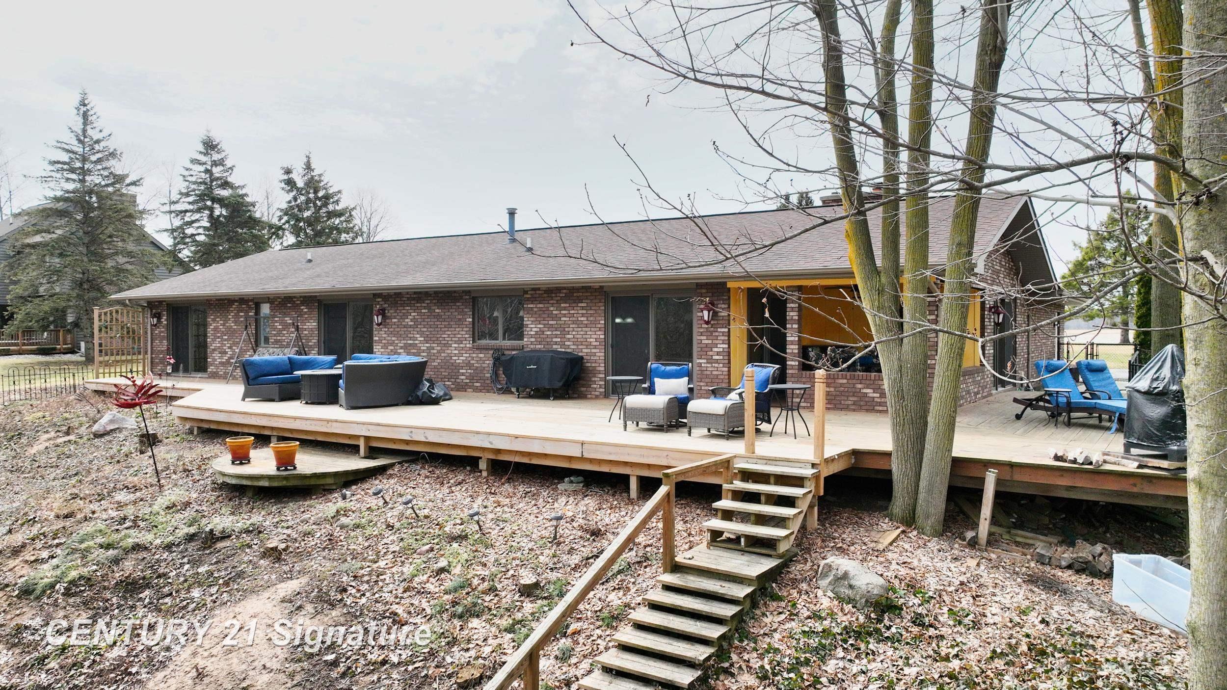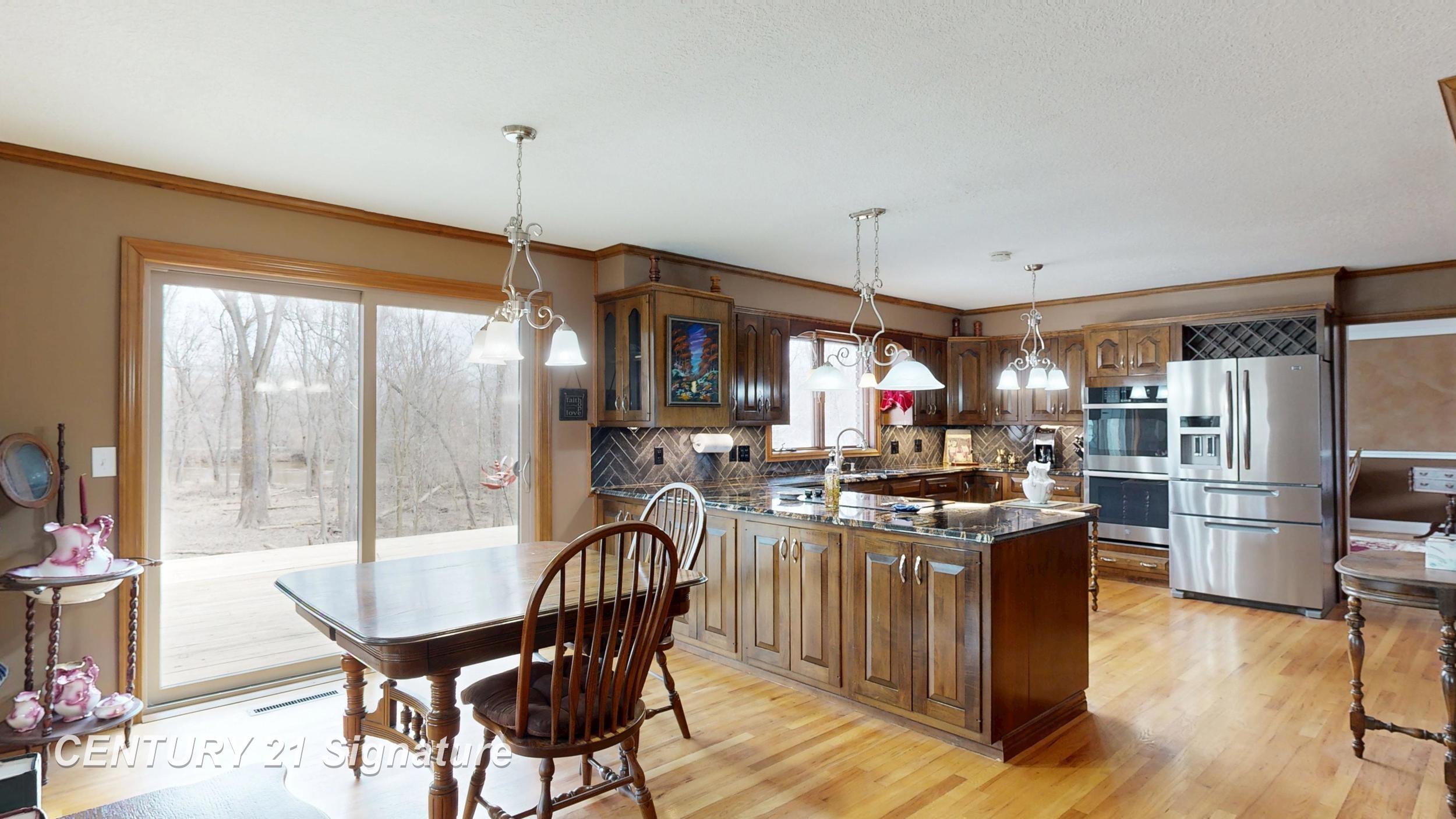 This beautiful home on 2.09 acres must be seen in person so as to appreciate its uniqueness, character and craftsmanship. It offers serene views and a move-in-ready lifestyle. Maintenance-free inside and out, this home is as close to new as you can get. Features include gleaming hardwood floors throughout, a spacious family room with fireplace, a coffee bar, formal dining room, tons of storage space and an open kitchen with eat-in area as well. The master ensuite provides a private retreat with a large double-size shower as well as jacuzzi tub for relaxing after a long day. The first-floor laundry with extra foyer gives you all the space you need for storage. The large second bedroom could be converted back to make it a three bedroom home. Step outside to enjoy the expansive wrap-around deck, a charming courtyard with fountain, or pick your own fruit from the delicious peach and apple trees in the front yard. The basement includes a workshop perfect for hobbies or extra storage. This exclusive riverfront property combines elegance, comfort, and functionality to make it your one-of-a-kind dream home for years to come.