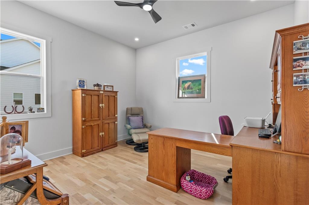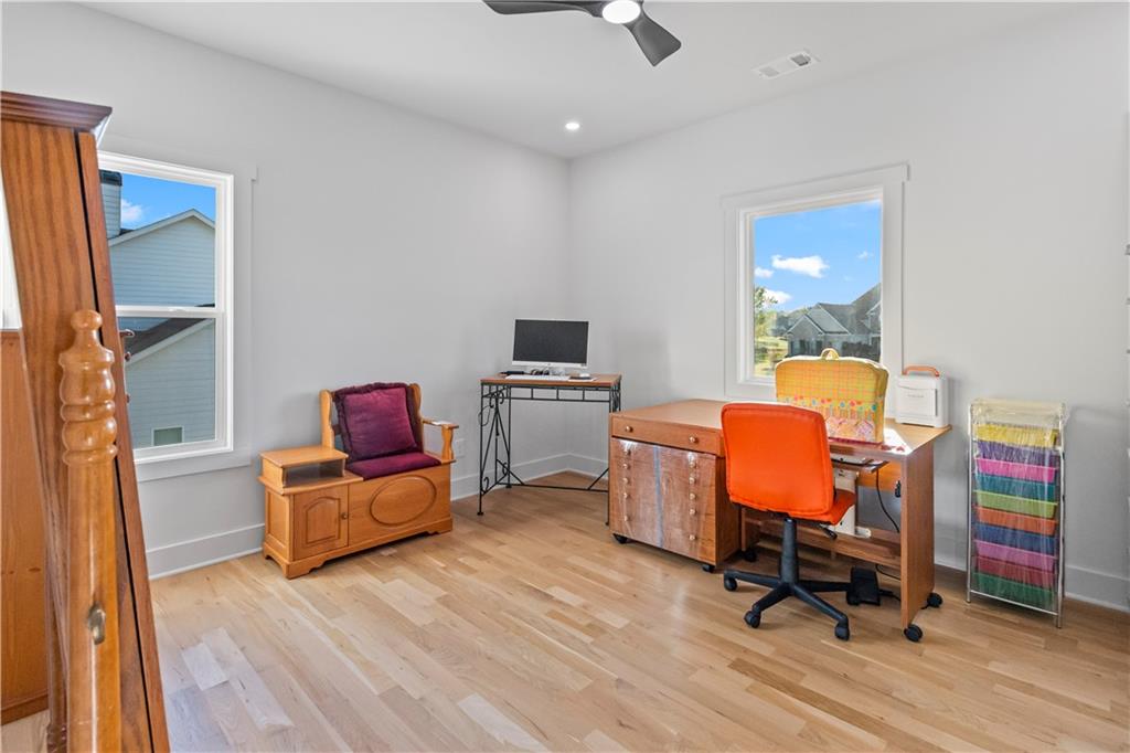 Welcome to 5746 Avalon Commons Way, a stunning, like-new home nestled on 1.27 acres in beautiful Clermont, Georgia. The moment you arrive, you'll be captivated by breathtaking mountain views and a huge backyard ready for relaxation or entertaining. Inside, the elegance continues with rich hardwood floors and soaring 10-foot ceilings that bring an airy, luxurious feel and also flooded with natural light. The sellers are installing new shades throughout the home. The gourmet kitchen features gleaming quartz countertops, perfect for your culinary creations and everything a chef would desire. The inviting eat in kitchen space is perfect for a large dining table paired with an over-sized island to seat more guests. There is a versatile flex room that can be used as a home office or additional sitting area-perfect for today's lifestyles. With four spacious bedrooms and four full baths, everyone will enjoy their own retreat. The primary suite offers a luxurious haven, complemented by a spa-inspired primary bathroom that is absolutely stunning, featuring a massive shower and soaker tub designed for ultimate relaxation! This is your opportunity to own a pristine, practically new construction home with every detail thoughtfully crafted. Don't miss out, this dream house is calling you home!