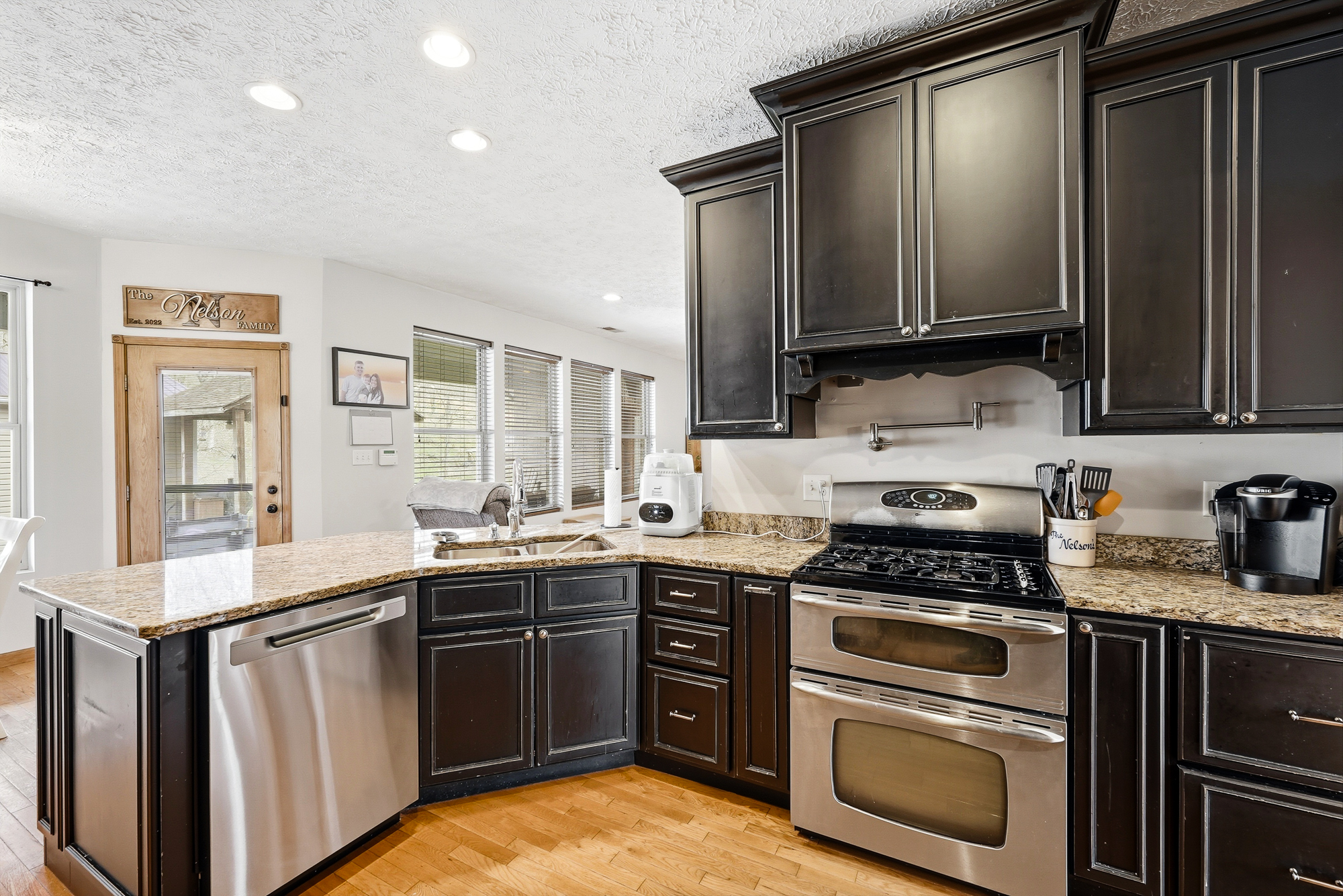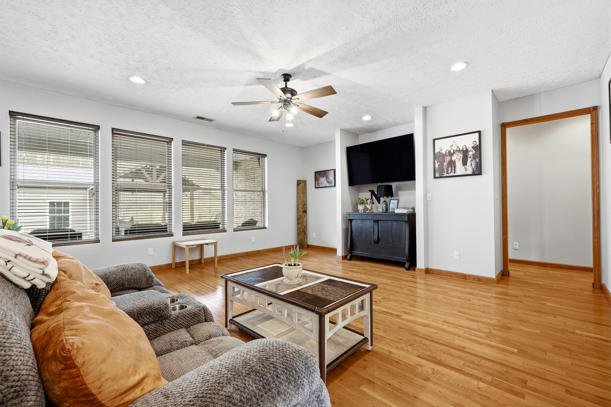 Welcome to 4605 River Valley Drive in the sought-after Greenbrier subdivision—this is the kind of home that feels inviting before you even step inside. From the moment you walk through the door, you're met with warm flooring, soft natural light, wider doors, and a living space centered around a beautiful stone fireplace that instantly feels like the heart of the home.