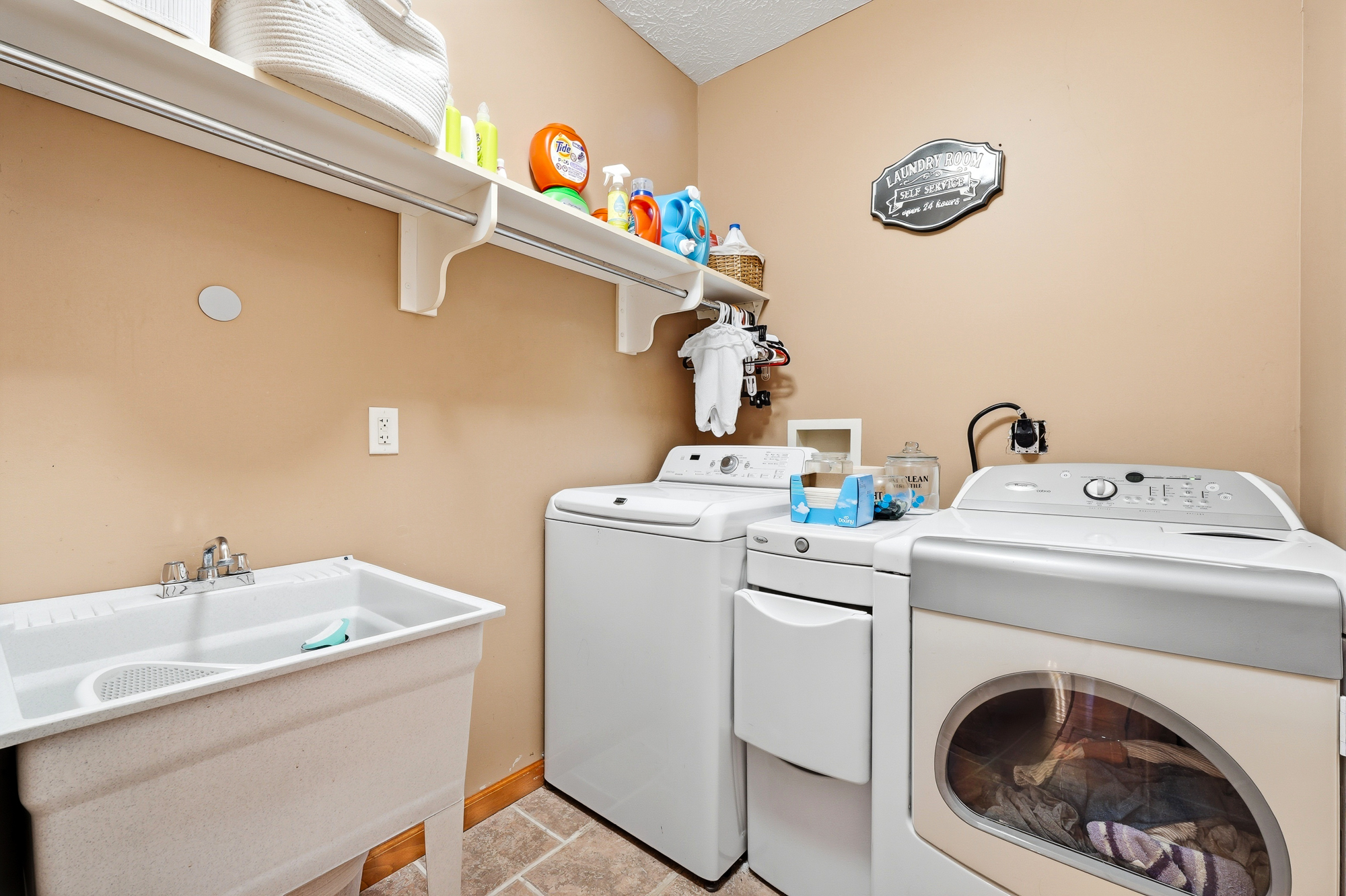 Come see this stunning new construction by JTB located in the Chestnut Cove subdivision of Gray. Offering main level living on a quiet cul de sac, this home features tall ceilings, engineered hardwood upstairs, tons of natural light and 2 living areas. The open floorplan provides a wonderful space for gatherings and entertaining, especially since the kitchen, living, and dining all open right onto the spacious covered deck. There's also plenty of room for grilling on the open part of the deck.If you love to cook, you'll really enjoy the gas cooktop in the beautiful kitchen and your window above the sink. Some outstanding features include: primary suite on the main level, quartz countertops throughout the home, double vanities in all 3 full bathrooms, a mud room, 2 laundry rooms, a natural gas fireplace, walk-in closets, and semi-finished storage space, as well as a separate garage for yard tools in the basement. On the lower level of the home, you'll find LVP flooring, 2 bedrooms and full bath, the 2nd laundry, storage, and easy access to the rear patio and back yard. This home also comes with a one-year builder's warranty. Schedule your appointment today!Taxes to be assessed. Buyer(s)/buyer(s) agent to verify all information.