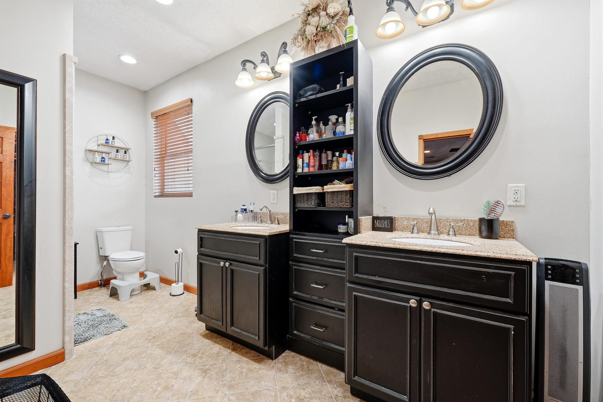 Light filled updated 5-bedroom, 3-bath home featuring a brand-new master bathroom, new flooring, fresh interior paint, new light fixtures, and a new high-efficiency furnace. The spacious layout includes an oversized 2-car garage, perfect for vehicles and extra storage. Outside, enjoy newly installed patio & landscaping with a full sprinkler system for easy maintenance. With modern upgrades and generous living space, this move-in-ready home offers comfort, functionality, and style in every detail. Note: Sellers agent is related to owner. Buyer to confirm all listing details and measurements.