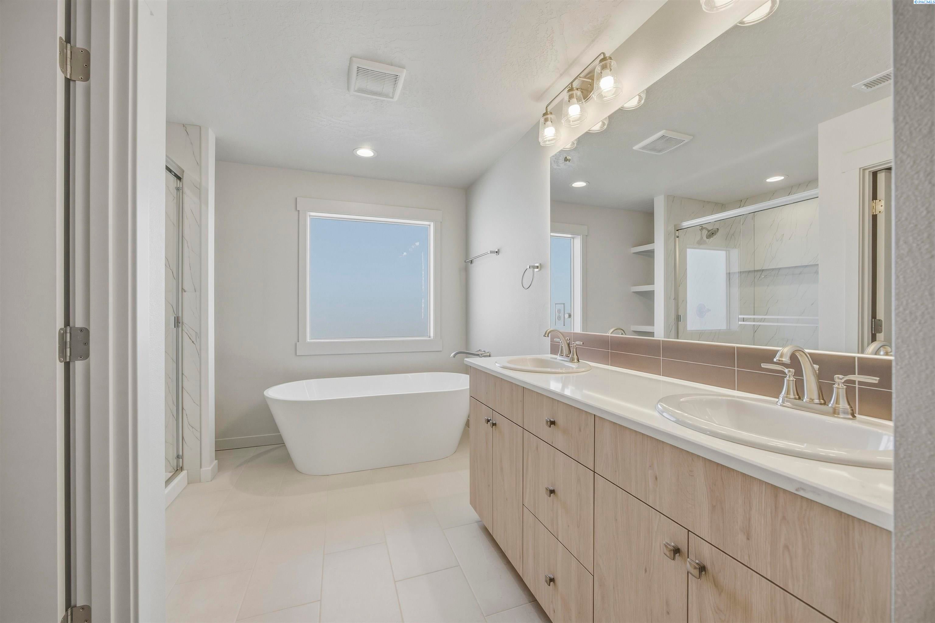 MLS# 291804 The Primrose by Titan Homes is a beautiful and spacious 2-story home, designed to provide ample living space for families of all sizes. The house features 5 bedrooms and 3.5 bathrooms, with plenty of room for everyone to have their own private space. Upon entering the home, you will be greeted by a foyer that leads to a dedicated office or formal dining room, perfect for thosewho work from home or enjoy entertaining guests. The main floor also features a great room, which is the central gathering place of thehome. The great room is a spacious and open area that includes the living room, dining room, and kitchen, all flowing together seamlessly. Also on the main floor is a convenient powder bath, perfect for guests, and a bedroom with an en suite and separate exterior entrance. This is an ideal setup for guests or multi-generational families who value privacy and independence. The second story of the home is just as impressive as the first, featuring 4 additional bedrooms and a laundry room for added convenience. The primary suite is especially noteworthy, with dual vanities, a soaking tub, a separate shower, and a large walk-in closet. The other bedrooms are alsogenerously sized, providing ample space for guests or even a home gym. Overall, the Primrose by Titan Homes is a beautiful and spacious home that is perfect for those who value both privacy and togetherness.