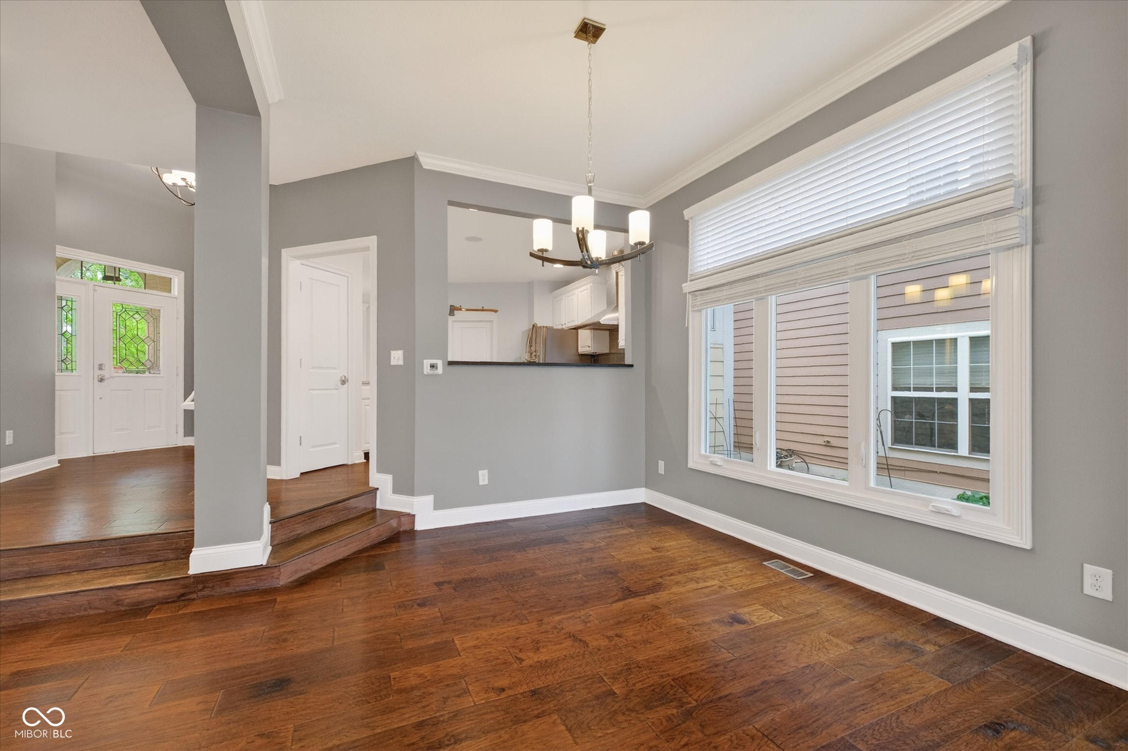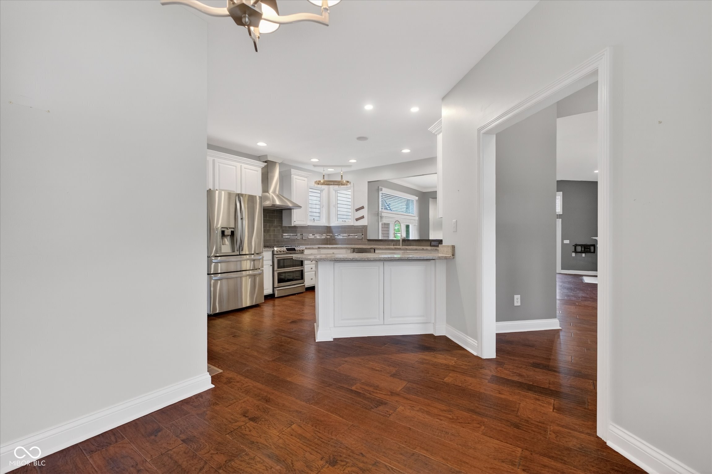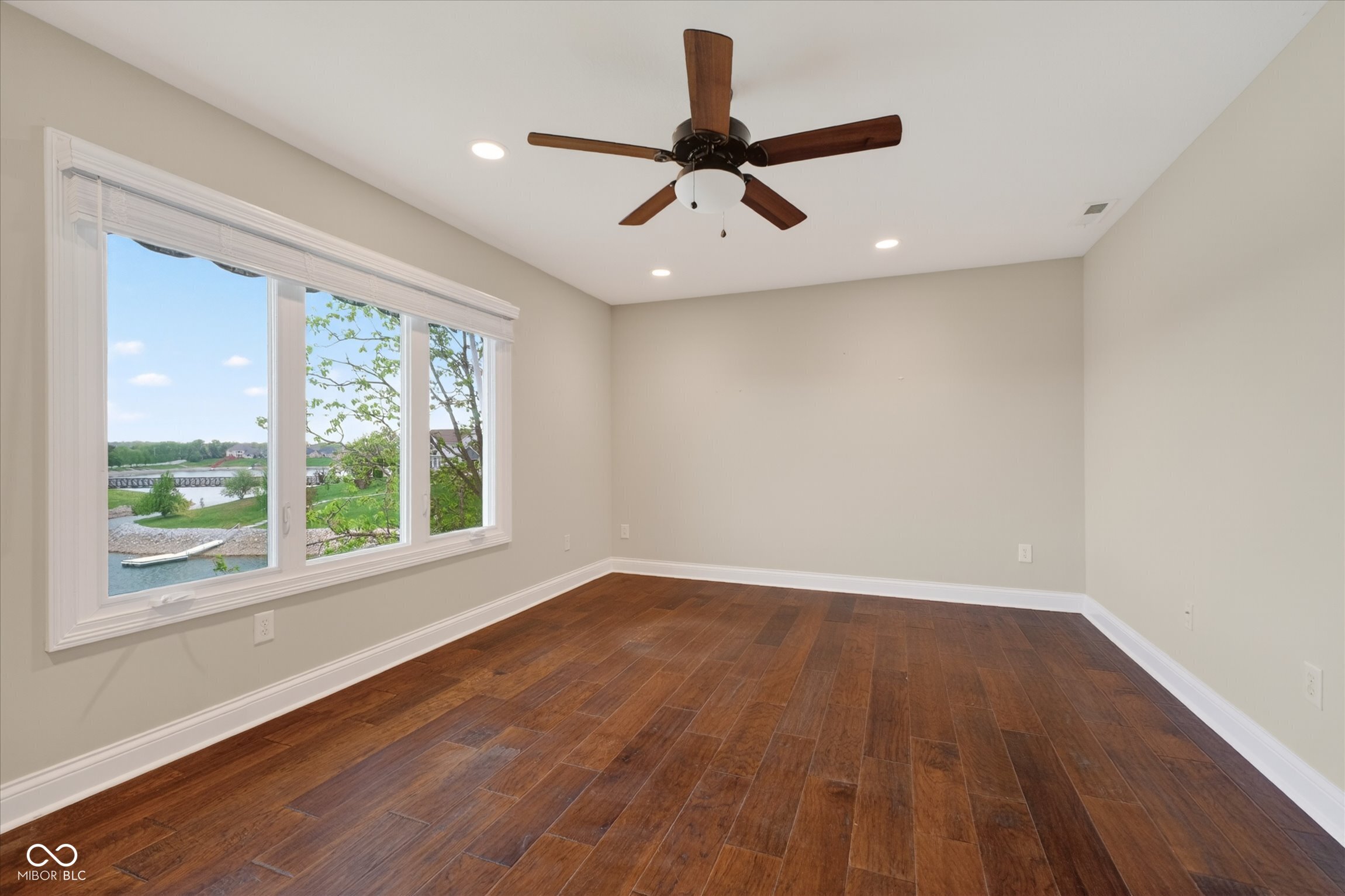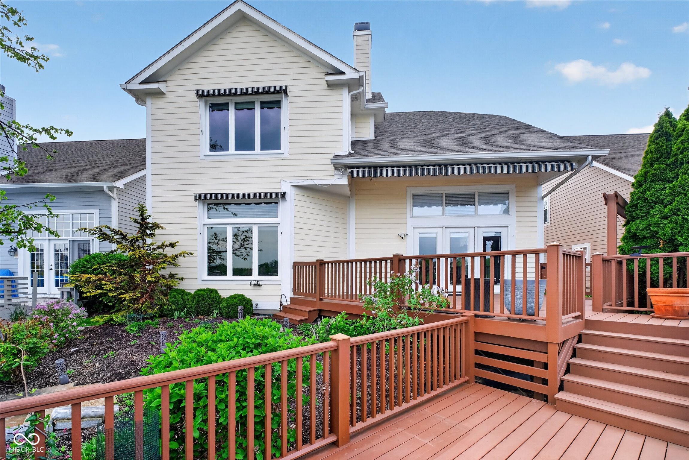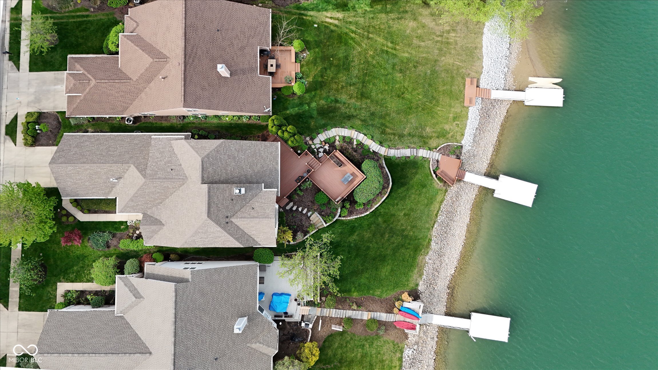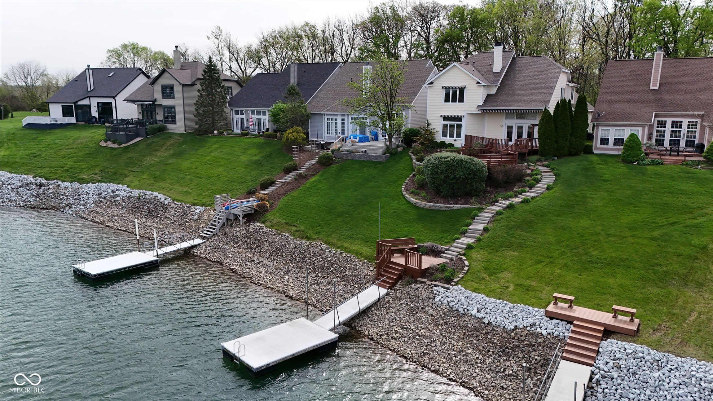 This beautifully maintained waterfront home on Crystal Lake has been thoughtfully updated and is ready to enjoy. With 3 bedrooms and 2.5 baths, it features engineered hardwood floors throughout and serene lake views that make everyday living feel special. The updated deck is ideal for relaxing or entertaining, while the well-designed landscaping includes a limestone walkway leading directly to your private dock. Inside, a dual-sided fireplace creates a warm, inviting feel in both the living room and the primary bedroom. The spacious main-level primary suite offers a true retreat. The kitchen has been nicely updated with ample counter space and cabinetry, subway tile, and a gas cooktop paired with a double electric oven. A custom built-in bar in the dining area makes hosting easy and enjoyable. Upstairs, you'll find additional living space, including a third bedroom, a large full bath, a generous loft area, and plenty of walk-in storage. The finished basement adds even more flexibility-perfect for a rec room or gym. A 2-car garage adds convenience, and the location puts you just minutes from great shopping and dining on the north side of Indianapolis.