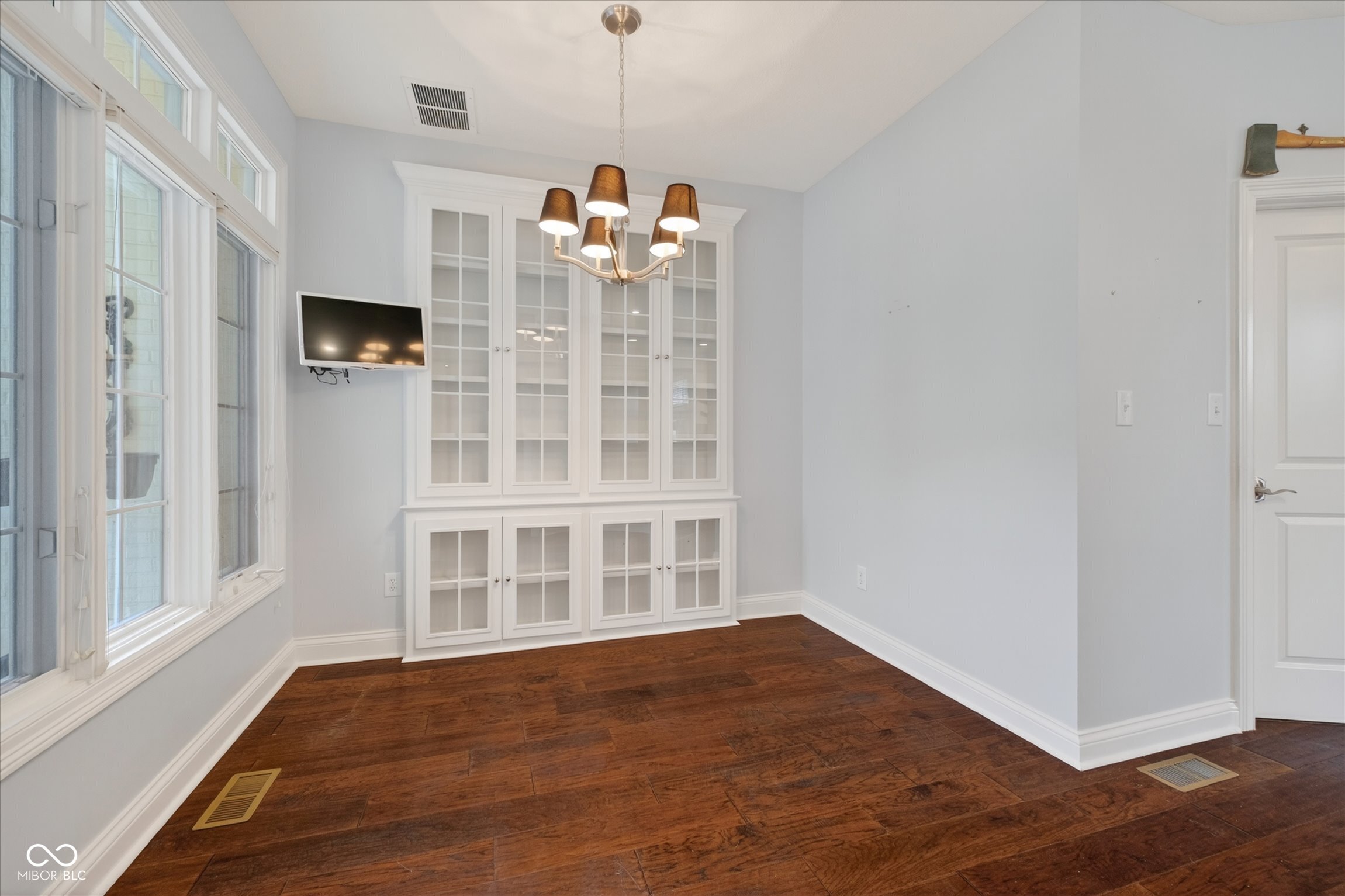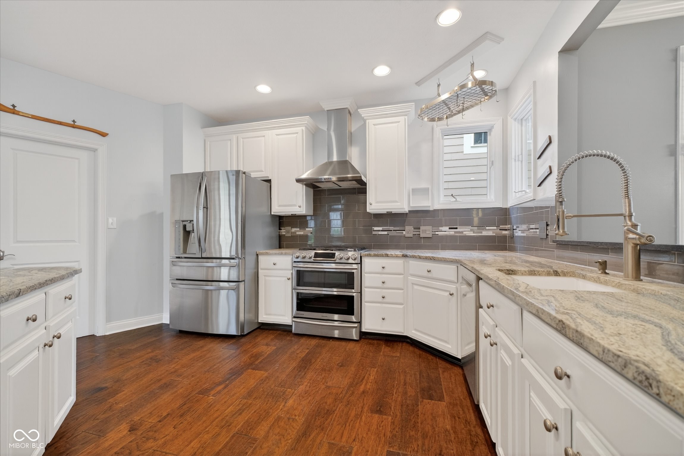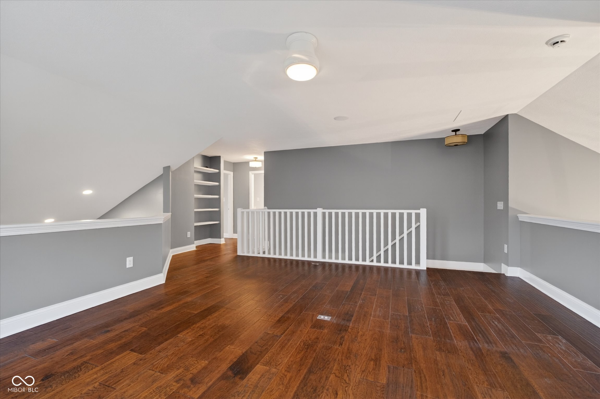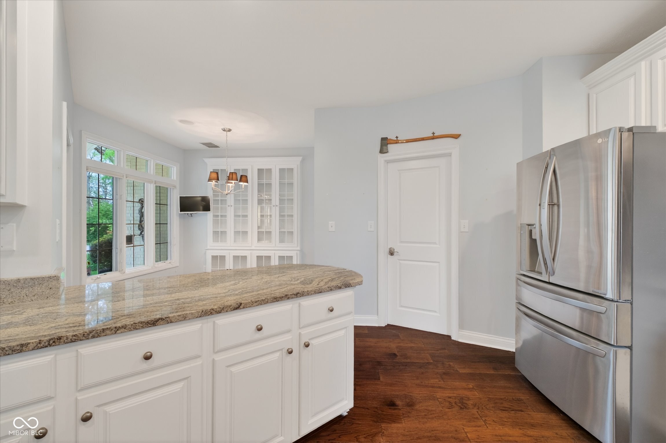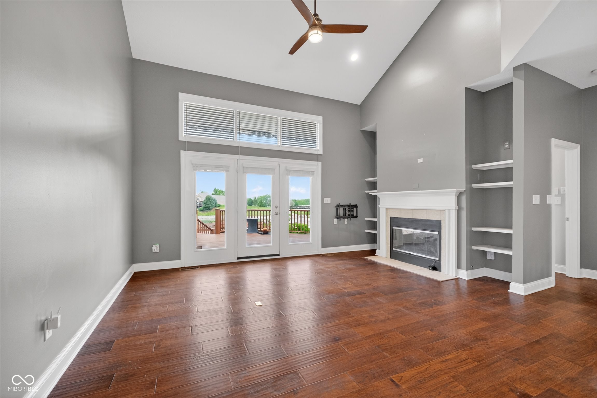 This beautifully maintained waterfront home on Crystal Lake has been thoughtfully updated and is ready to enjoy. With 3 bedrooms and 2.5 baths, it features engineered hardwood floors throughout and serene lake views that make everyday living feel special. The updated deck is ideal for relaxing or entertaining, while the well-designed landscaping includes a limestone walkway leading directly to your private dock. Inside, a dual-sided fireplace creates a warm, inviting feel in both the living room and the primary bedroom. The spacious main-level primary suite offers a true retreat. The kitchen has been nicely updated with ample counter space and cabinetry, subway tile, and a gas cooktop paired with a double electric oven. A custom built-in bar in the dining area makes hosting easy and enjoyable. Upstairs, you'll find additional living space, including a third bedroom, a large full bath, a generous loft area, and plenty of walk-in storage. The finished basement adds even more flexibility-perfect for a rec room or gym. A 2-car garage adds convenience, and the location puts you just minutes from great shopping and dining on the north side of Indianapolis.