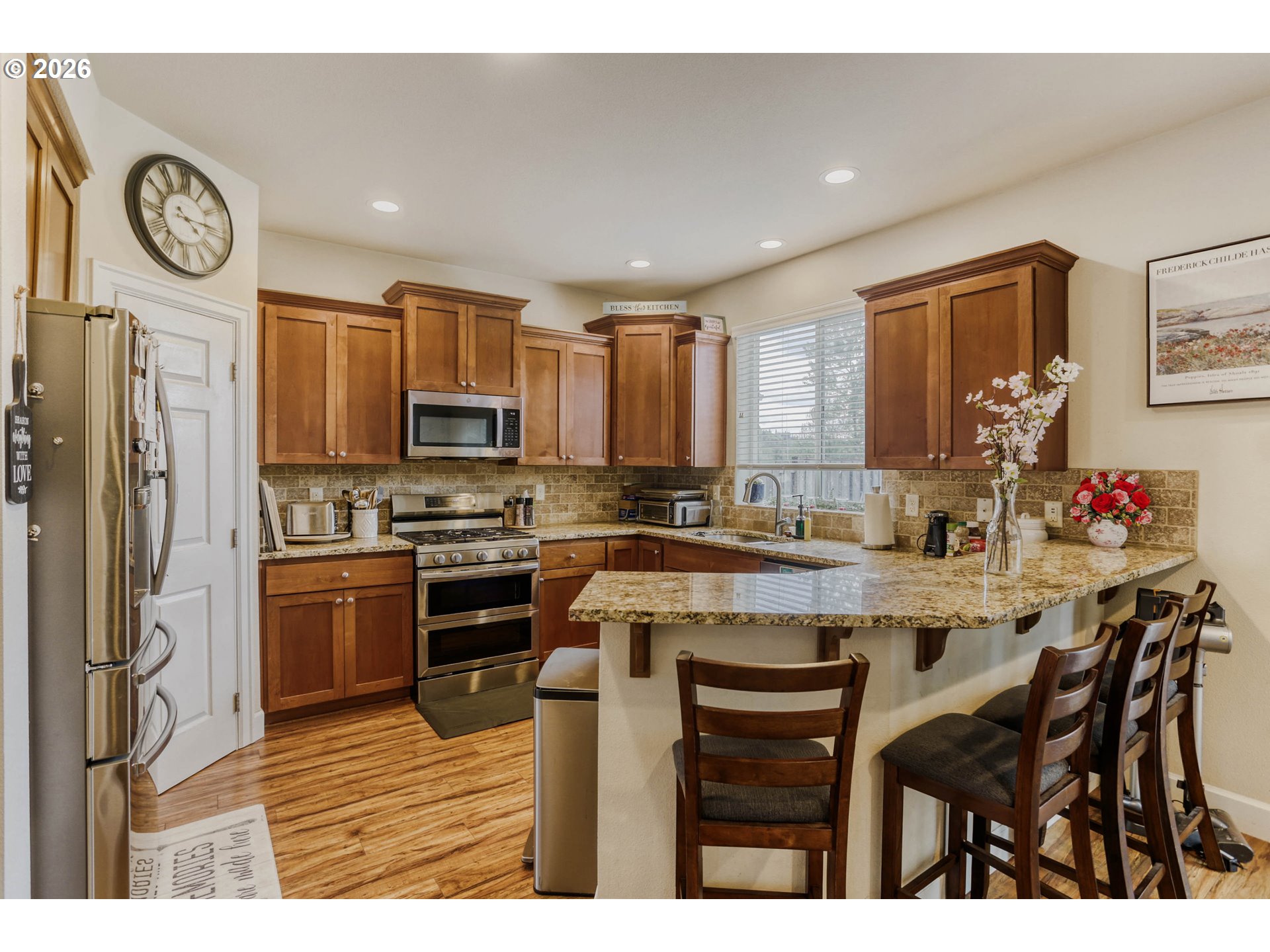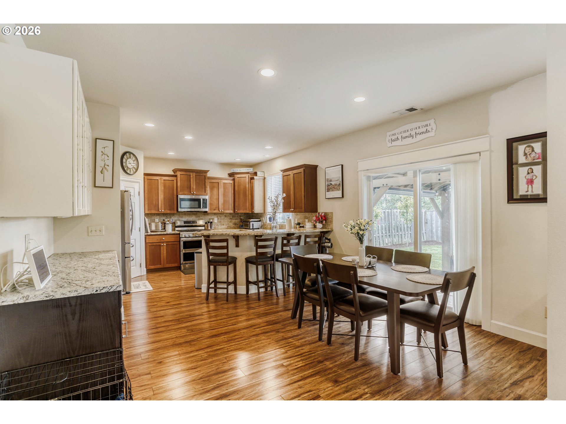 Welcome to this 5-bedroom, 3-bath home in the highly sought-after Windswept Water of Damascus. This 2,279 sq ft residence offers comfortable living with modern touches and excellent energy efficiency. The bright open-concept layout features a spacious kitchen with island and breakfast area, Ideal for meals and entertaining. Adjacent family and living rooms — also known as the great room — provide flexible gathering spaces with natural light. A dedicated laundry room adds convenience. Upstairs you will find a generous primary suite with private en-suite bathroom and walk-in closet, plus four additional bedrooms with ample space for family, guests, or a home office. A convenient tech niche provides a dedicated workspace area. The home includes a welcoming foyer. Lower utility bills are supported by the owned solar panel system with battery back (10.5 KW panels,3 power walls, auto failure in power outage) up installed in 2021 Outside, the property offers strong curb appeal with a fully fenced backyard, charming gazebo, and patio-perfect for relaxing or entertaining. Enjoy peaceful views toward the Clackamas River. The neighborhood provides excellent amenities including a views of Clackamas River, approximately 200 feet from Rock Creek with a path that connects to the Clackamas river, common space playground, basketball court, fenced dog park, scenic walking trails, and community paths. Easy access to parks, outdoor recreation, and commuting routes. This home combines modern comfort, energy efficiency, and family-friendly outdoor living. Schedule your private showing today!