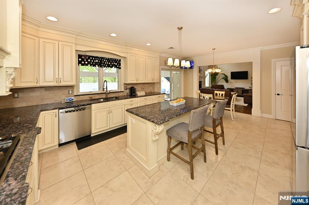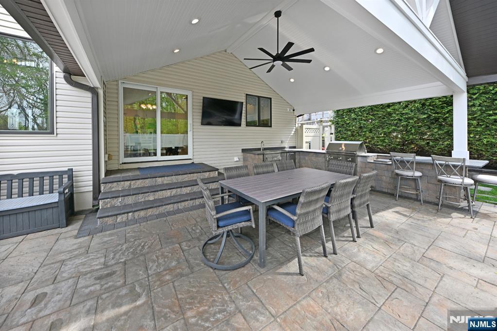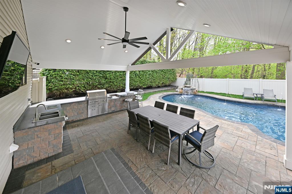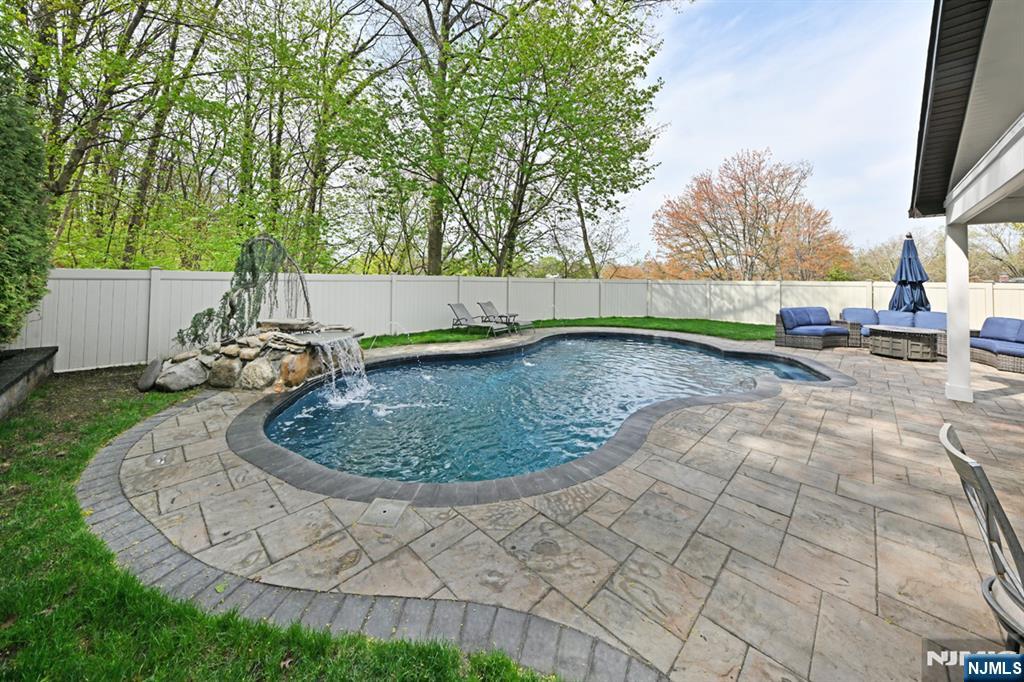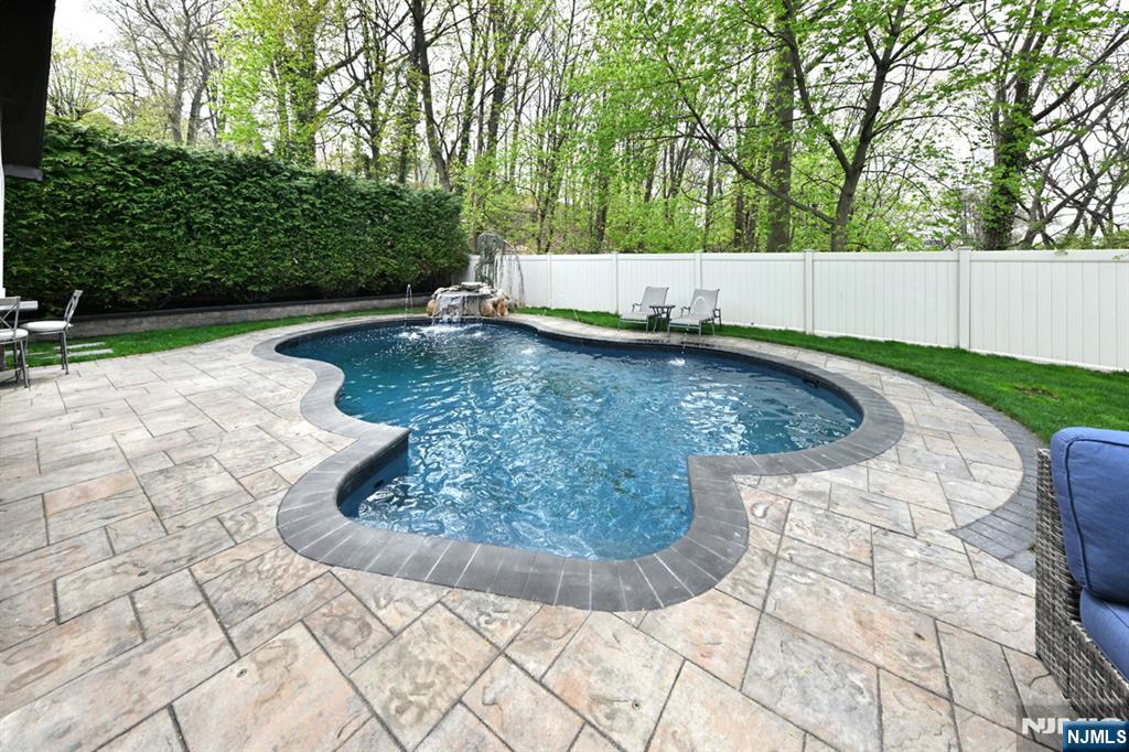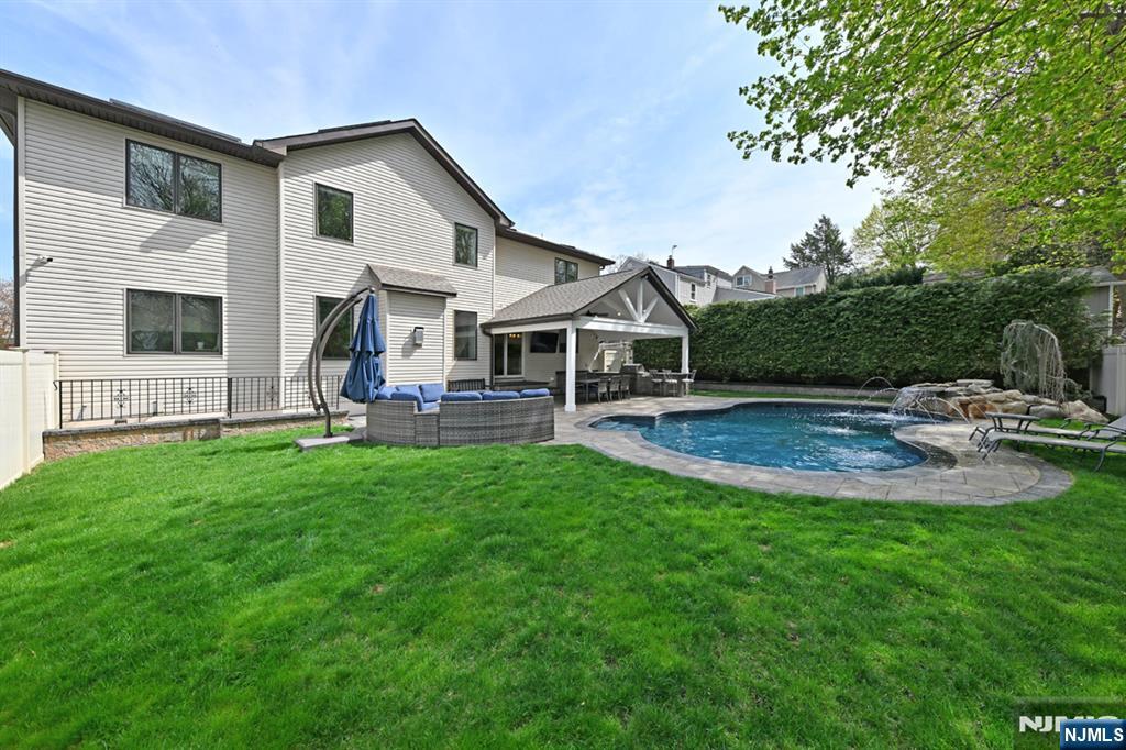 Welcome to this sophisticated, 10-year-young Colonial, where timeless design meets modern luxury in prime Paramus. A grand cast iron door opens to a dramatic 2-story entry foyer. The 1st flr features a formal living room & dining room, a stunning 2-story family room w/ gas fireplace. A 1st-floor bedroom w full bath offers flexibility for guests or extended living. The stylish, modern kitchen is designed for everyday living & entertaining w/ sliders out to the patio. A thoughtfully designed second level has: Jr. suite w/ full bath, 2 more ample bedrooms, a full bath, and convenient laundry. The primary suite has a luxurious bath & two walk-ins. The landing w/ view to the family room enhances the open, airy feel. A finished walkout basement offers an impressive extension of living space, complete with full-size windows, vinyl plank flooring, and additional full bathideal for recreation or entertaining. Lots of upgrades, including central vac, 3-zone A/C, sprinkler system, generator, solar panels and 2-car garage. Outside, enjoy a beautifully landscaped yard with a paver driveway and dual EV charging stations. Your private backyard oasis awaits, w/ a heated saltwater pool, serene zen fountain, an outdoor kitchen w/ seating, and a covered patioperfect for relaxing or hosting unforgettable gatherings. All of this a stones throw from a Blue Ribbon Award-winning elementary school, makes this exceptional home a rare opportunity you wont want to miss.