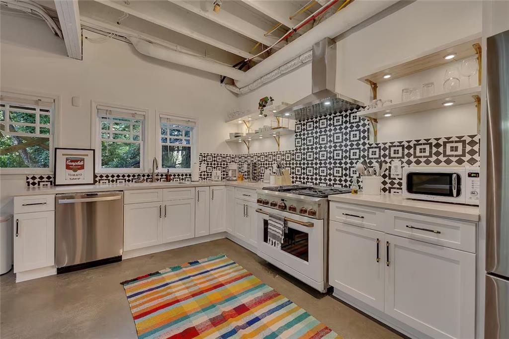 Beautiful renovated home on one of Inman Parks best streets with over 100 of frontage on Freedom Park! This large home has all the living space you could need including a full daylight terrace level apartment with 10 ceilings, exposed beams, and polished concrete floors. The front porch sits just a few steps above the street. Big dining room. Bright kitchen with views of the park.