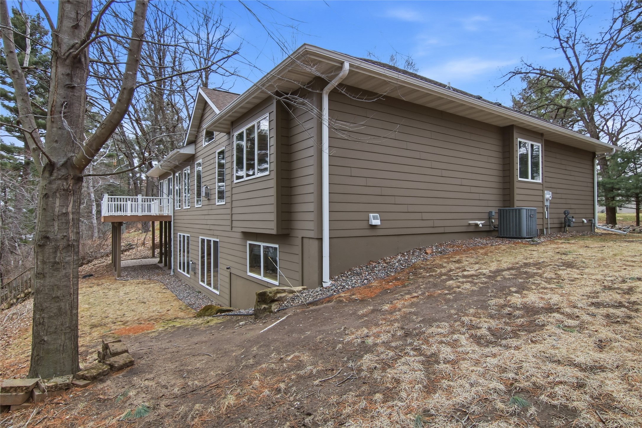 Quality and Elegance can be found throughout this exquisite home on Lake Menomin. This dream home is custom-built boasting a masterpiece of design and craftsmanship, and provides beautiful lake views from multiple vantage points. Enjoy open-concept & main-floor living with spacious rooms and high-end finishes. Featuring 9 ceilings for a voluminous feel, a large kitchen with cherry cabinets & quartz counters, master ensuite with new shower & soak tub, 4-season room, multiple fireplaces, and a large garage w/in-floor heat. The full lookout basement features a large family room with wet bar, in-floor heat, and the perfect space for extra storage. Other great highlights to mention, theres a safe room, covered patio, composite deck, and new retaining wall. Scenic and private surroundings with lush and mature trees, nice rock landscaping, and a very well-maintained home with a welcoming flow!