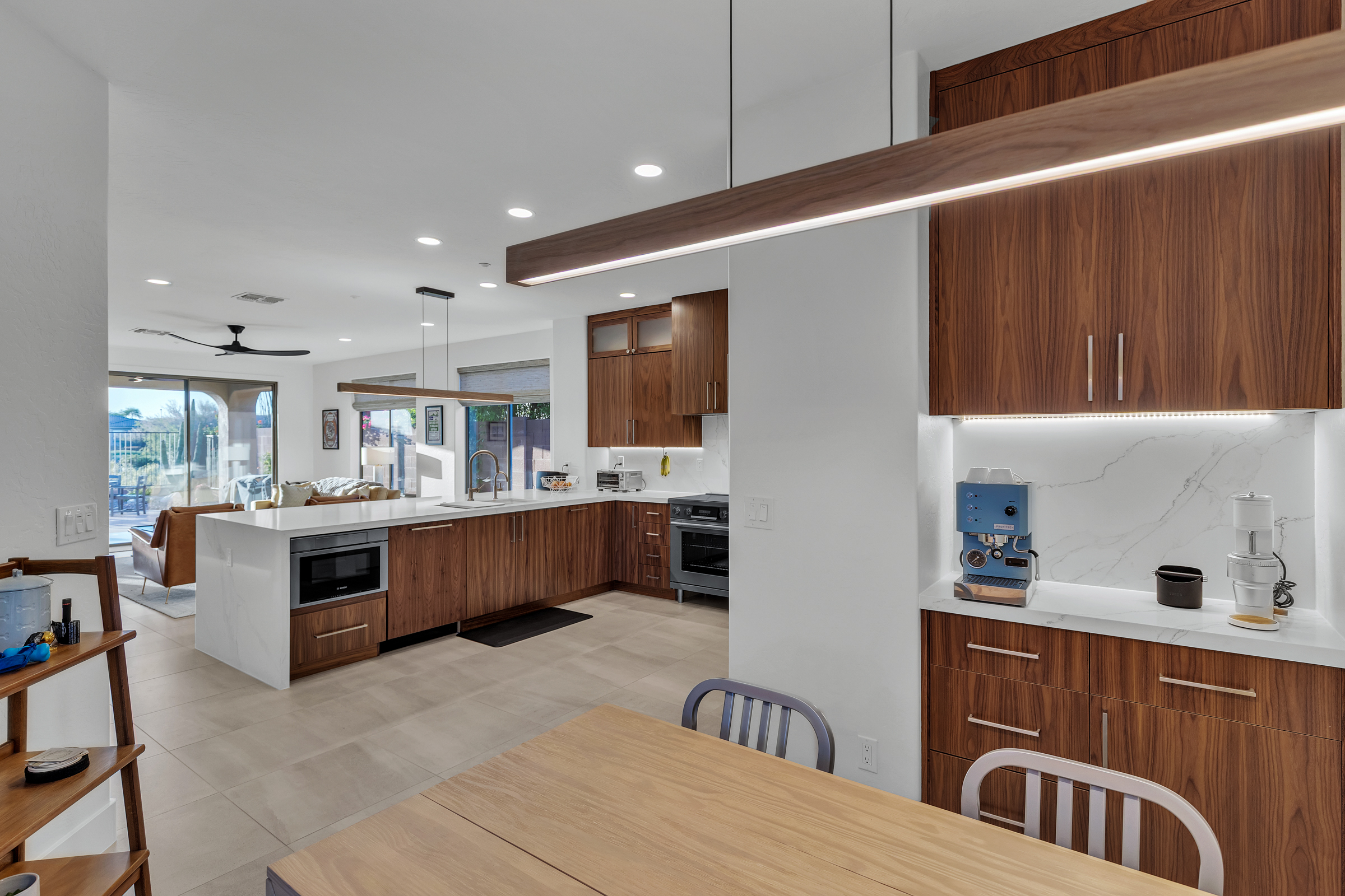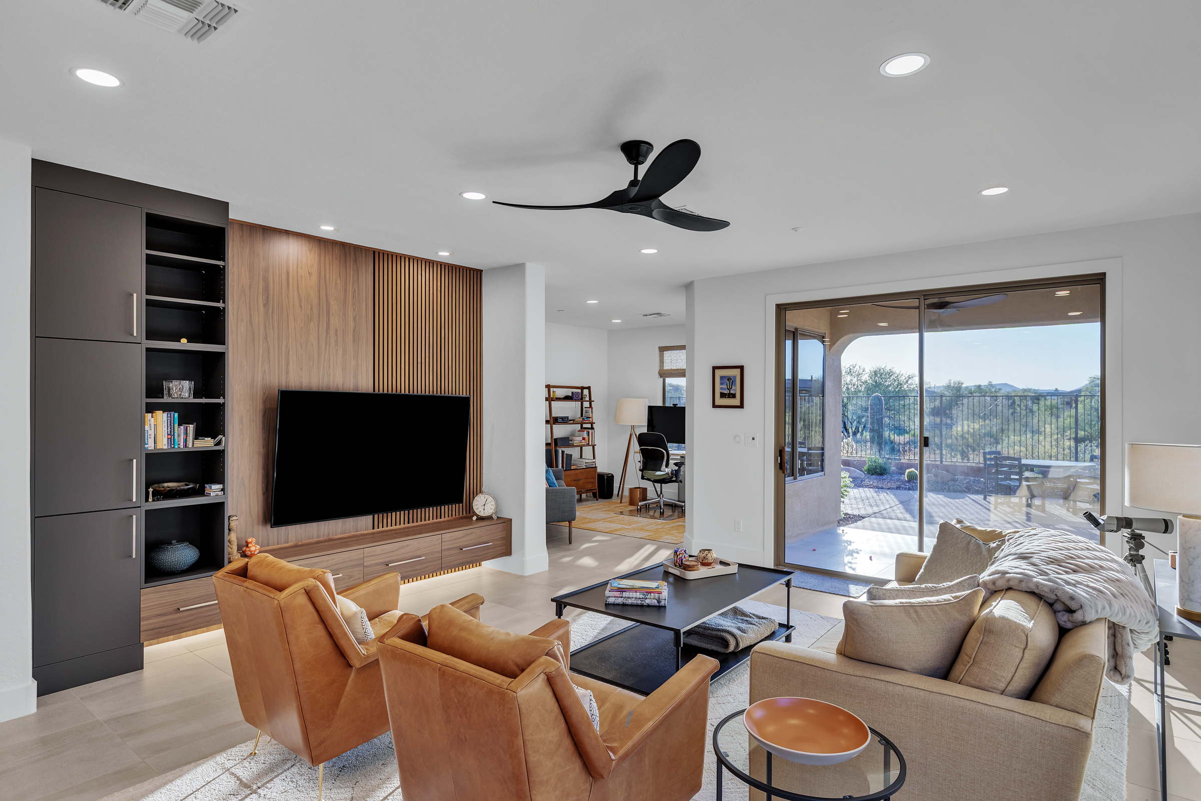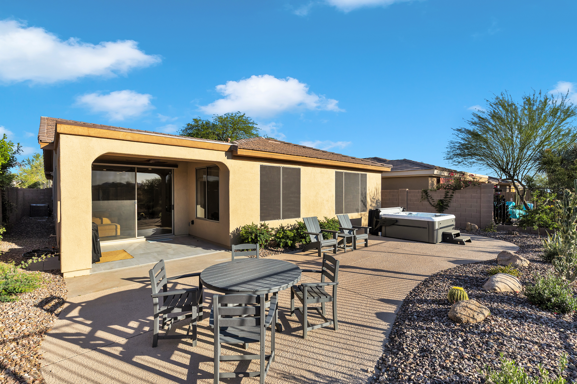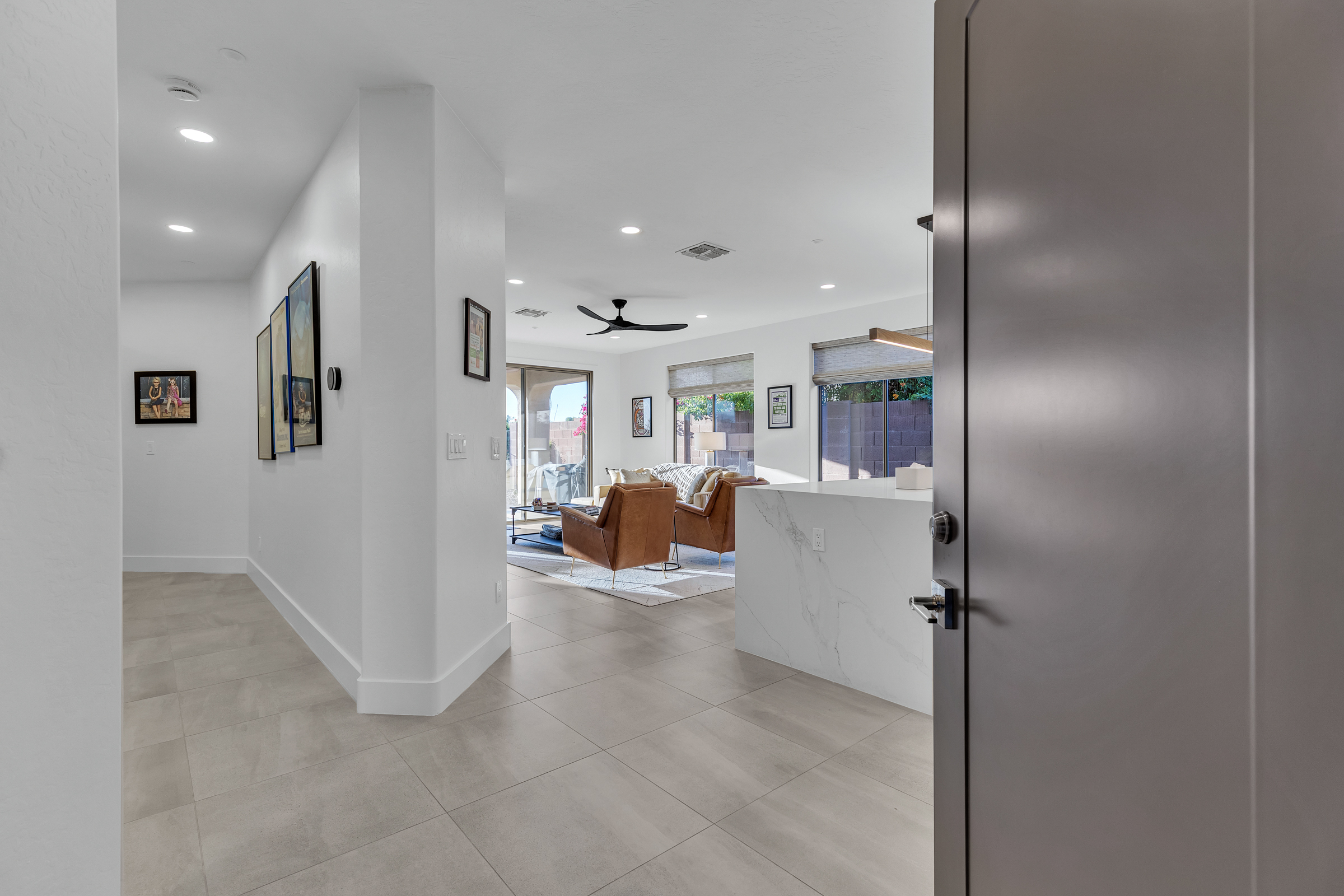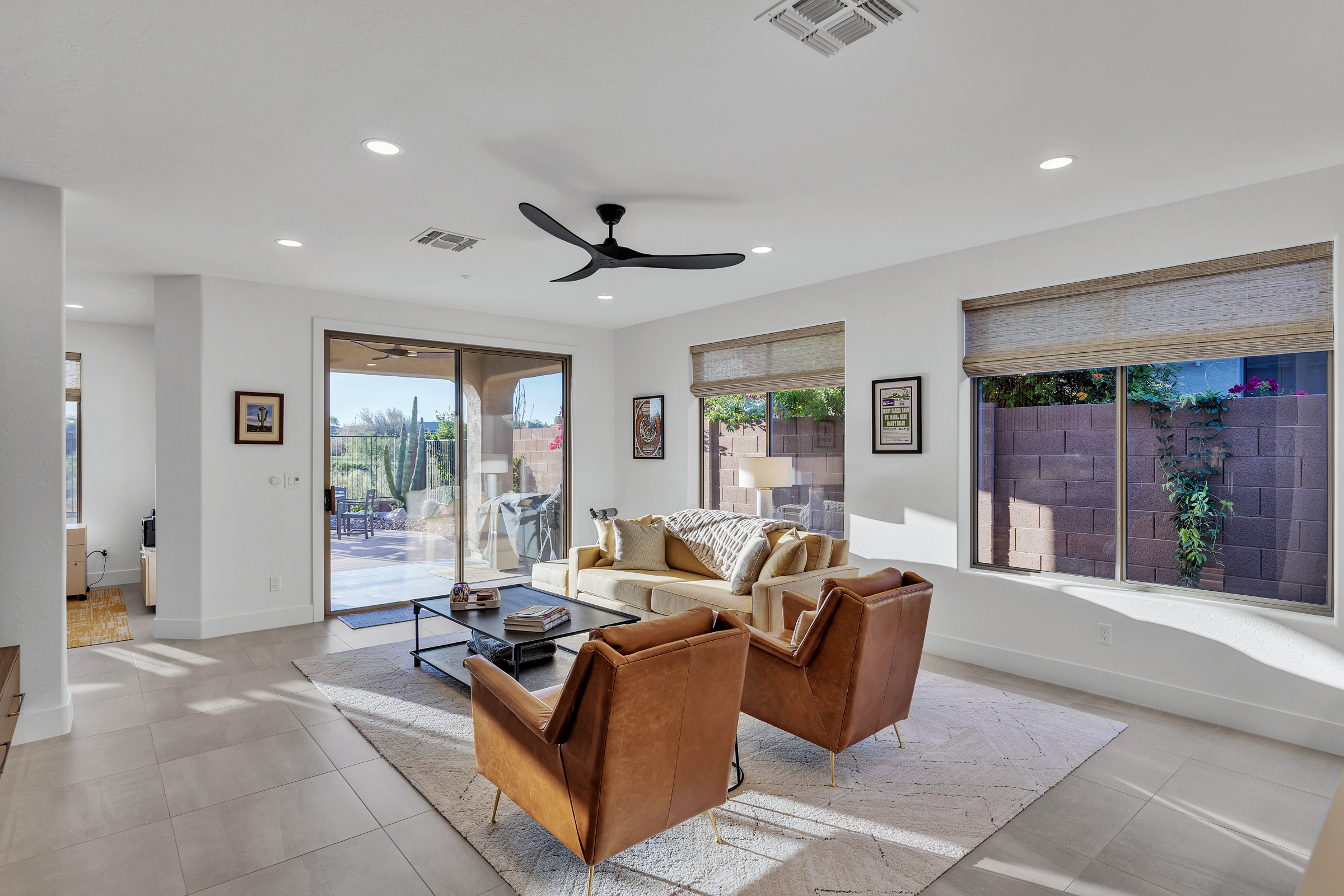 Modern Sonoran Spa Retreat on Premium Golf Course Lot Experience the pinnacle of desert living in this meticulously reimagined Sonoran retreat. Nestled on a premium golf course lot, the home backs to a private wash for ultimate seclusion. Enjoy tranquil mornings on the patio where the only sound is the gentle waterfall from hole 2 across the street. STUNNING MODERN INTERIOR A complete top-to-bottom renovation featuring high-end tile throughout--no carpet. New Shaker-style interior doors, custom trim, and modern baseboards create a sleek, cohesive aesthetic. The chefs kitchen is a showstopper with over 40k in custom cabinetry, stunning quartz countertops with professional fabrication, and a premium Bosch appliance package. Designer lighting (up/down lighting) and a custom TV niche with acoustic panels elevate the living space. Spa-like primary bathroom.NEW MECHANICALS & PEACE OF MIND Sleep easy knowing every major system has been addressed. HVAC: New AC and Heat (2024). Roof: New roofing underlayment (2020). Plumbing: New sewer pipe replacement and water heater (2025). Protection: New front and storm doors, sunscreen window screens, and wired Fire/CO2 alarms. RESORT-STYLE BACKYARD Relax in your brand-new Master Spas salt water hot tub overlooking the golf course. The grounds feature professional irrigation and lush new plantings by Aloha. The garage is a hobbyists dream with new epoxy flooring, custom cabinets, and a new door opener/spring (hot water, r/o, water softener new 2025). Kitchen-- Bosch induction range, quiet dishwasher, undermount microwave, and fridge Custom walnut cabinets - dovetail, quiet close, 4 custom drawer inserts (R and L of range) Professional range hood - Trade Wind. Franke composite granite sink with accessories. Brizo touch-sensitive on-off faucet. Quartz counters and backsplash. Undermount lighting. Upgraded, quiet disposal Coffee nook Cerno Una lighting - dramatic up-and-down lighting, dimmable Primary bathroom-- Lighted medicine cabinet (with interior outlets/power) Custom walnut cabinets - pull out drawers under sink, interior outlets/power Kohler and Brizo faucets and shower pieces All fans on timer switches Toto toilet - outlet if a bidet seat is added on New windows Walnut accents in closet Guest bathroom-- Lighted medicine cabinet (with interior outlets/power) Custom walnut cabinets - pull out drawers under sink, interior outlets/power Kohler shower pieces and Brizo faucet Fan on timer switch Toto toilet - outlet if a bidet seat is added on Living Room-- Custom TV cabinet/nook - storage! New front door/screen door - highly secure and modern. New interior doors/levers/trim. Electrical-- All new dimmable LED lighting. All new switches, outlets. All fans on timers. Front and back lights on automatic timers (sunset to sunrise - programmable) Maverick upgraded fans New wired fire alarms and CO2 monitor (primary bedroom) Garage-- New Wi-Fi-enabled garage door opener with camera New garage door spring New water heater New soft water system New reverse osmosis filtered water (runs to kitchen sink and fridge) New cabinets New epoxy flooring Shades and curtains-- Hunter Douglas automated blinds (currently open at sunrise and close at sunset) Custom curtains in bedrooms Yard and spa-- New Master Spa salt water hot tub New irrigation system - monitored for leaks in interior/exterior (Aloha Irrigation) New plants/tree in back yard New 90% sunscreens Tiled porch area to match interior This isnt just a house; its a move-in ready.