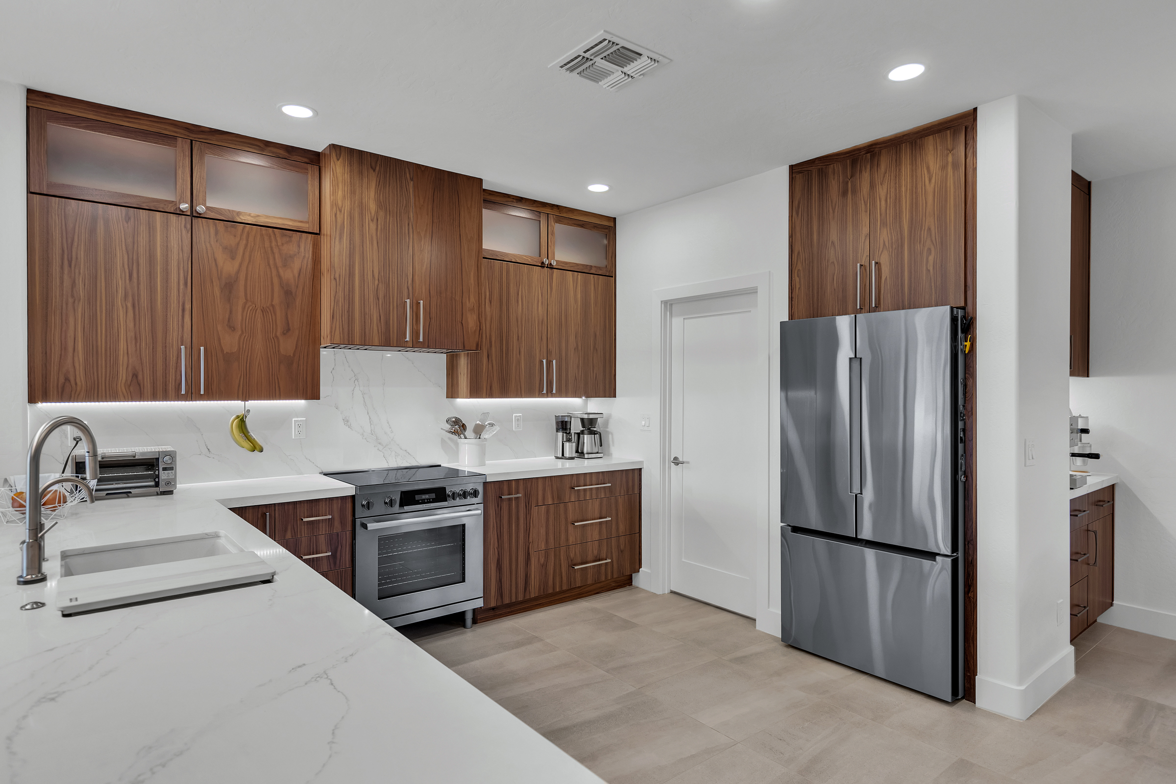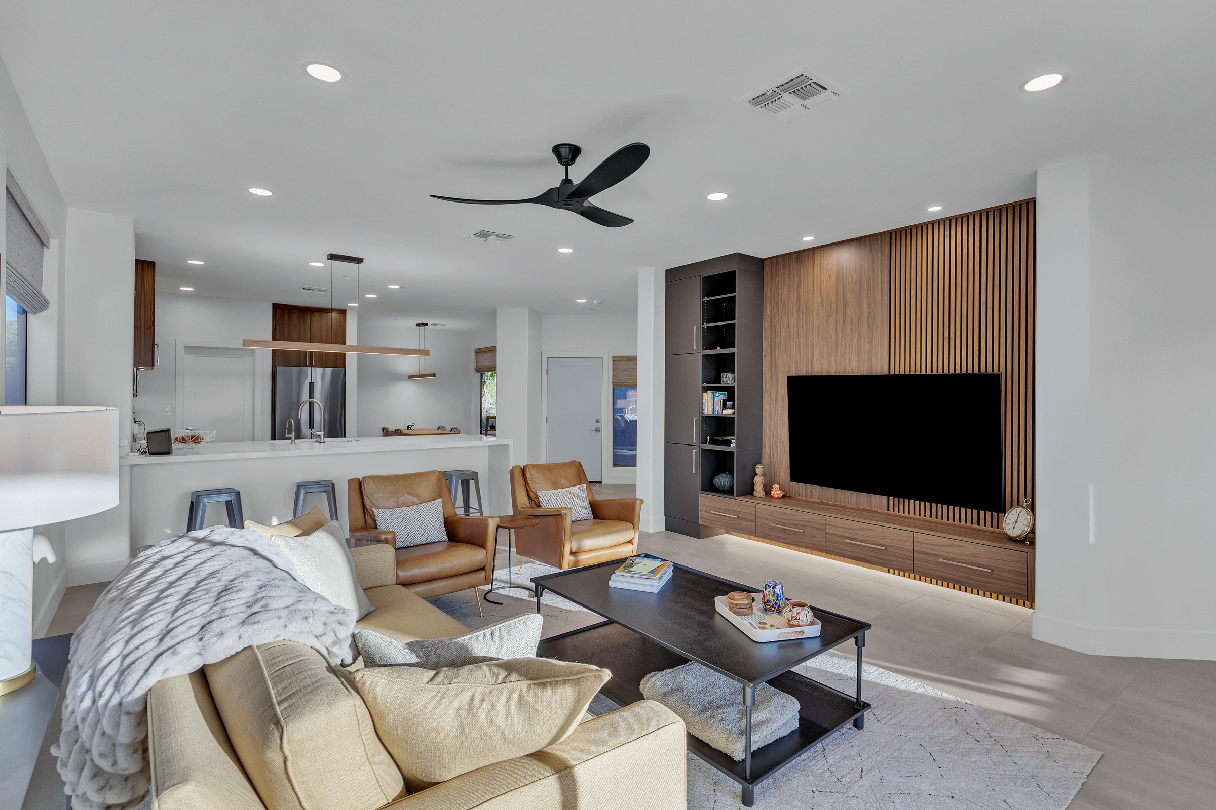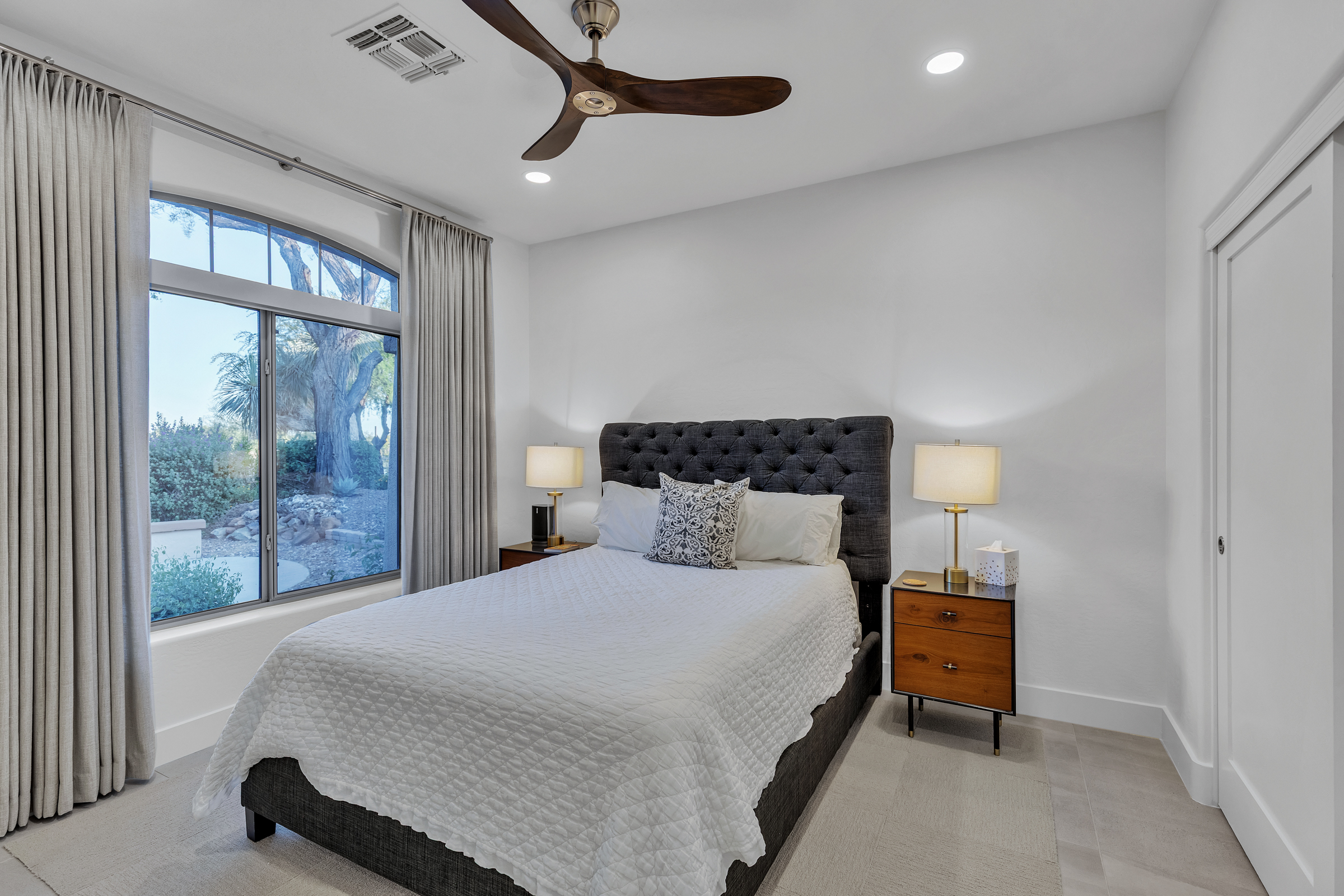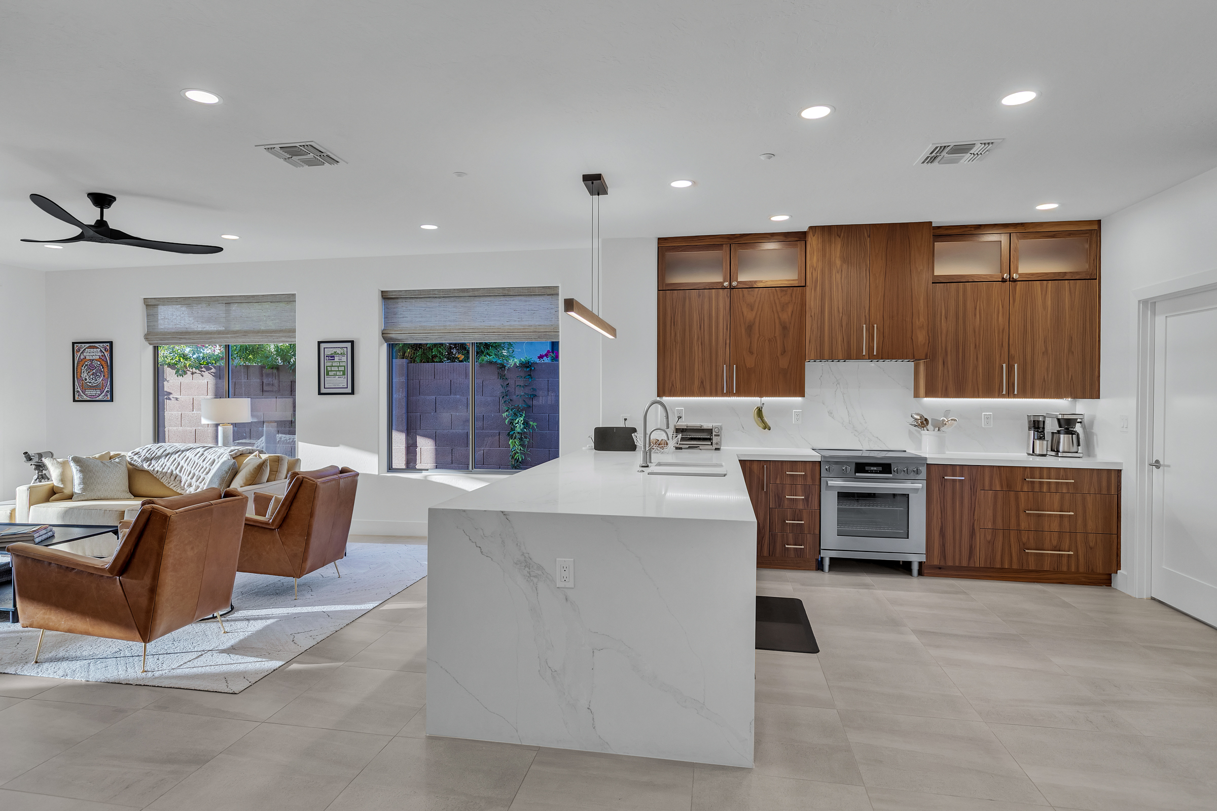 Modern Sonoran Spa Retreat on Premium Golf Course Lot Experience the pinnacle of desert living in this meticulously reimagined Sonoran retreat. Nestled on a premium golf course lot, the home backs to a private wash for ultimate seclusion. Enjoy tranquil mornings on the patio where the only sound is the gentle waterfall from hole 2 across the street. STUNNING MODERN INTERIOR A complete top-to-bottom renovation featuring high-end tile throughout--no carpet. New Shaker-style interior doors, custom trim, and modern baseboards create a sleek, cohesive aesthetic. The chefs kitchen is a showstopper with over 40k in custom cabinetry, stunning quartz countertops with professional fabrication, and a premium Bosch appliance package. Designer lighting (up/down lighting) and a custom TV niche with acoustic panels elevate the living space. Spa-like primary bathroom.NEW MECHANICALS & PEACE OF MIND Sleep easy knowing every major system has been addressed. HVAC: New AC and Heat (2024). Roof: New roofing underlayment (2020). Plumbing: New sewer pipe replacement and water heater (2025). Protection: New front and storm doors, sunscreen window screens, and wired Fire/CO2 alarms. RESORT-STYLE BACKYARD Relax in your brand-new Master Spas salt water hot tub overlooking the golf course. The grounds feature professional irrigation and lush new plantings by Aloha. The garage is a hobbyists dream with new epoxy flooring, custom cabinets, and a new door opener/spring (hot water, r/o, water softener new 2025). Kitchen-- Bosch induction range, quiet dishwasher, undermount microwave, and fridge Custom walnut cabinets - dovetail, quiet close, 4 custom drawer inserts (R and L of range) Professional range hood - Trade Wind. Franke composite granite sink with accessories. Brizo touch-sensitive on-off faucet. Quartz counters and backsplash. Undermount lighting. Upgraded, quiet disposal Coffee nook Cerno Una lighting - dramatic up-and-down lighting, dimmable Primary bathroom-- Lighted medicine cabinet (with interior outlets/power) Custom walnut cabinets - pull out drawers under sink, interior outlets/power Kohler and Brizo faucets and shower pieces All fans on timer switches Toto toilet - outlet if a bidet seat is added on New windows Walnut accents in closet Guest bathroom-- Lighted medicine cabinet (with interior outlets/power) Custom walnut cabinets - pull out drawers under sink, interior outlets/power Kohler shower pieces and Brizo faucet Fan on timer switch Toto toilet - outlet if a bidet seat is added on Living Room-- Custom TV cabinet/nook - storage! New front door/screen door - highly secure and modern. New interior doors/levers/trim. Electrical-- All new dimmable LED lighting. All new switches, outlets. All fans on timers. Front and back lights on automatic timers (sunset to sunrise - programmable) Maverick upgraded fans New wired fire alarms and CO2 monitor (primary bedroom) Garage-- New Wi-Fi-enabled garage door opener with camera New garage door spring New water heater New soft water system New reverse osmosis filtered water (runs to kitchen sink and fridge) New cabinets New epoxy flooring Shades and curtains-- Hunter Douglas automated blinds (currently open at sunrise and close at sunset) Custom curtains in bedrooms Yard and spa-- New Master Spa salt water hot tub New irrigation system - monitored for leaks in interior/exterior (Aloha Irrigation) New plants/tree in back yard New 90% sunscreens Tiled porch area to match interior This isnt just a house; its a move-in ready.