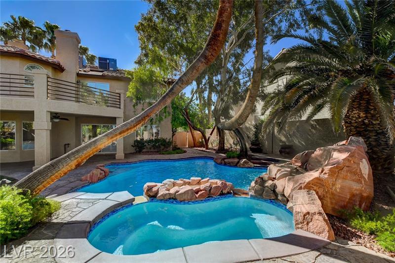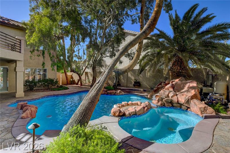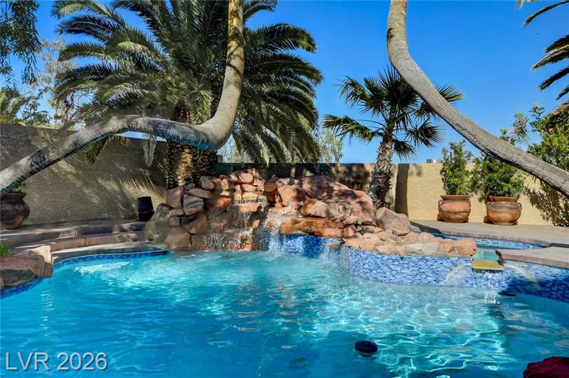 WOW!! Turnkey Home Ready For You!! Upgraded and Updated Throughout!! Fantastic Resort Style Pool, Spa, Waterfall, Lush Landscaping, Stuccoed Block Walls, Backyard Kitchen and Covered Patio!! Wrapround Balcony Above With City and M