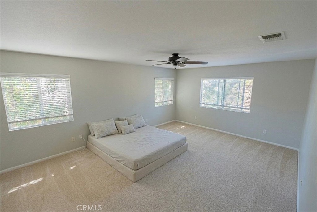 Single-story custom home on over 5 private acres offering panoramic, unobstructed 180-degree mountain and sunrise views. Built in 2015, this 3,986 sq ft residence features 5 bedrooms and 4 bathrooms, including a separate furnished guest house with bath (included in count), along with two large, dedicated office spaces ideal for remote work or multi-generational living.The home is filled with expansive windows in every room, bringing in abundant natural light and capturing scenic views throughout. The main living area showcases dramatic 16-foot floorto-ceiling windows framing the surrounding landscape and an impressive gas fireplace. Spacious eat-in kitchen includes granite countertops, abundant cabinetry, and a large walk-in pantry.The primary suite offers a spa-like en suite bath with steam shower, soaking tub, dual vanities, and a generous walk-in closet. A second primary suite includes its own en suite bath and walkin closet. Neutral finishes throughout make the home move-in ready.A gently winding private driveway approximately one-tenth of a mile from the main road leads to the home, enhancing privacy and creating a quiet, secluded setting. Notable features include metal roof, fire-resistant siding, fire sprinklers, fire-rated windows, and owned solar. Additional amenities include a private gated entry, three-car garage with separate workshop waterfall fountain at the entry, and low-maintenance natural landscaping with drip irrigation. Property is ideally situated above the fog and below the snow, offering privacy, scenic beauty, and comfortable year-round living.