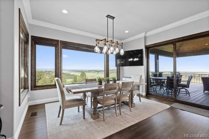 Diamond K Ranch is an exceptional luxury Mountain Ranch in Colorado offering breathtaking, unobstructed mountain views from Pikes Peak to Longs Peak. This ultimate outdoor paradise is nestled in thousand of acres of protected space making it feel like you own so much more acreage. The heart of this retreat is the spectacular custom-built home atop the hill.