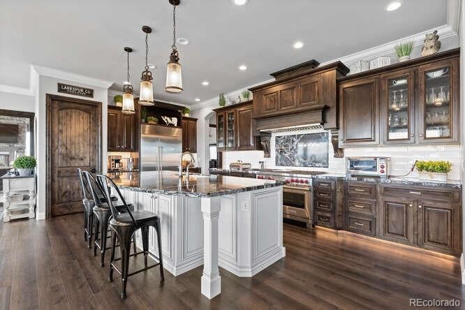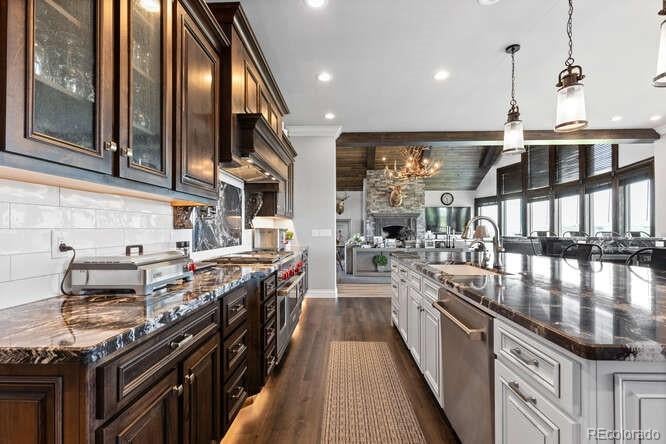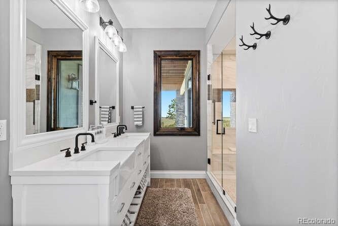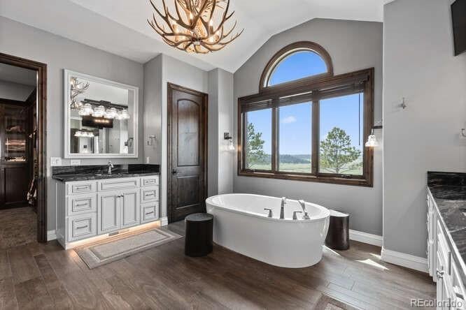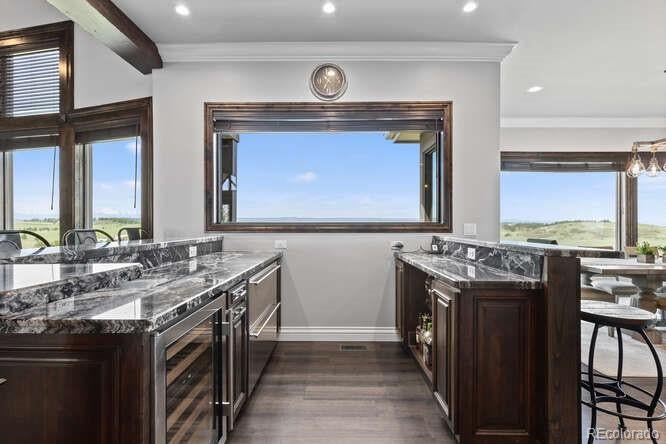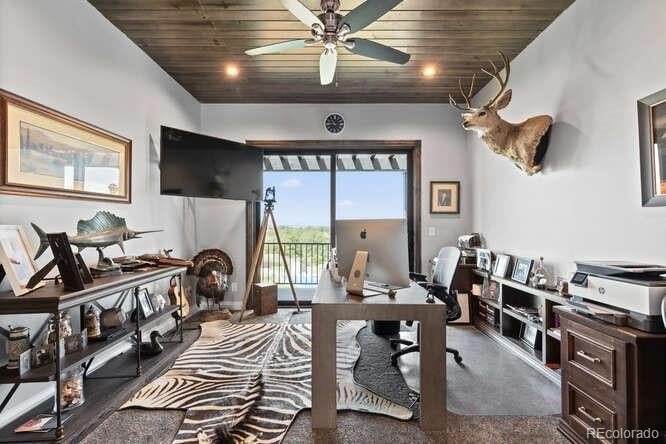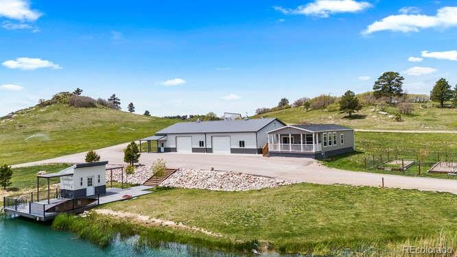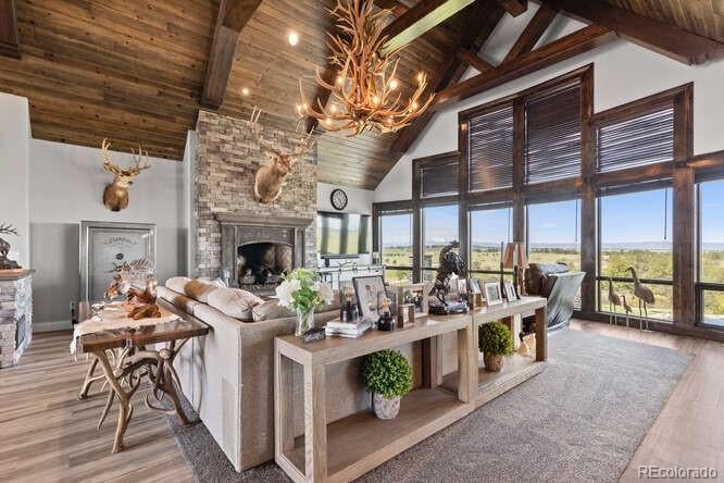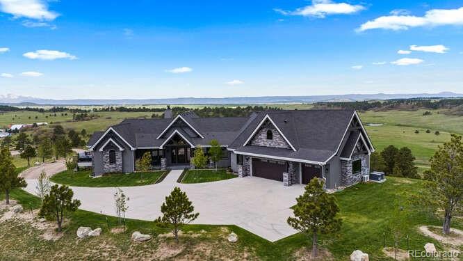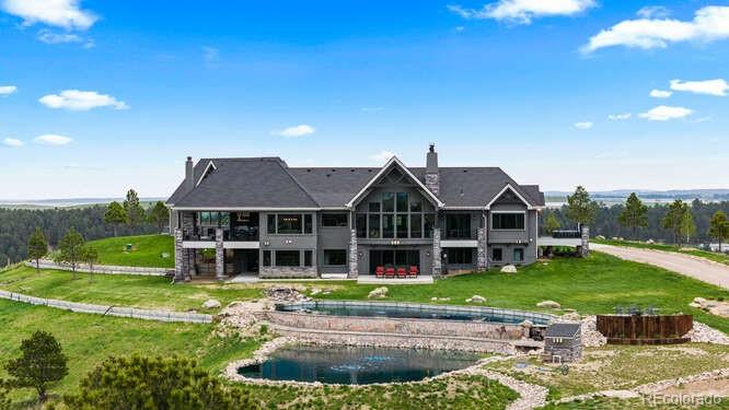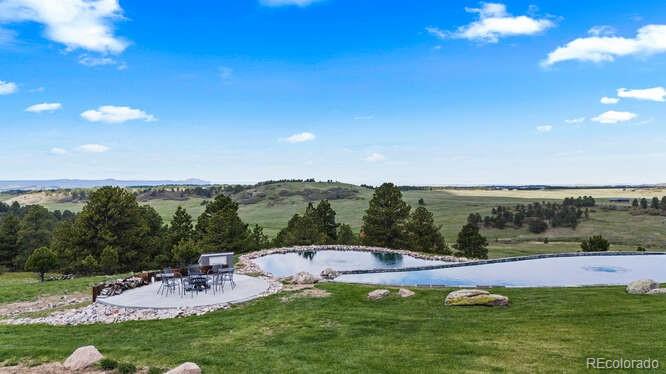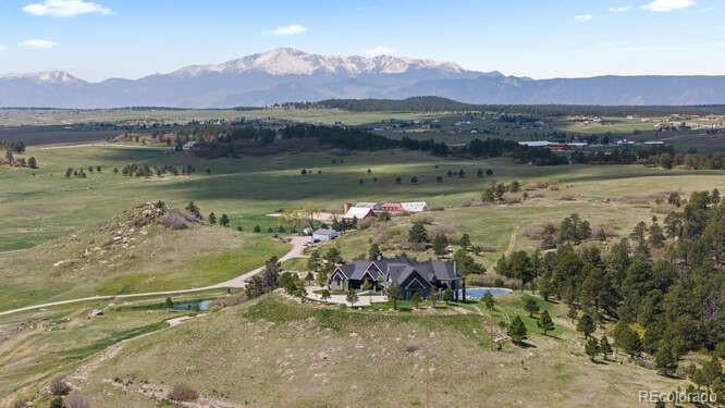Diamond K Ranch is an exceptional luxury Mountain Ranch in Colorado offering breathtaking, unobstructed mountain views from Pikes Peak to Longs Peak. This ultimate outdoor paradise is nestled in thousand of acres of protected space making it feel like you own so much more acreage. The heart of this retreat is the spectacular custom-built home atop the hill. Luxe finishes include soaring ceilings, 8 doors & expansive windows that frame the unparalleled 360 views. The gorgeous great room includes wall to wall views with massive fireplace, vaulted tongue and groove ceiling & antler chandelier. The high-end kitchen features Wolf & Sub-Zero appliances, granite counters, custom cabinetry, bar area, center island, & large pantry. Spacious dining room frames in the mountains. Step right onto the covered deck featuring stacking sliding door, fireplace, tv, built in Wolf grill & Evo cooktop. Bask in the twilight beauty and soak in the stunning sunsets. The primary suite has its own private deck with hot tub. The sumptuous 5 piece bath has a large custom shower, dual vanities, soaking tub, walk in closet with custom cabinetry & 2nd washer/dryer. All bedrooms include their own private baths. The finished walkout has a family room with fireplace, wet bar, game area, & walk in gun safe room. Other amenities include 2 Generac generators, 2-1000 gal buried propane tanks, 1000 gal cistern for house & 5000 gal cistern for irrigation, 30 station cannons for field irrigation, & landscaping front and back. Outdoors boasts meadows, towering pines and rock outcroppings. Abundant wildlife out your back door-trophy deer, elk & turkey. This property includes 4 ponds stocked with bass, trout and catfish. There is also a large workshop and storage building for equipment. With ample space and several building sites; Diamond K Ranch is the ideal canvas for a world class family compound. Extensive water rights included. A once in a lifetime opportunity to own a piece of heaven.