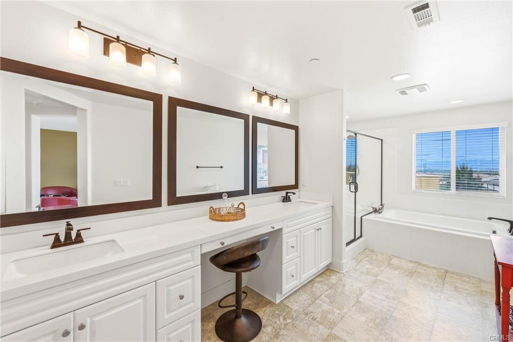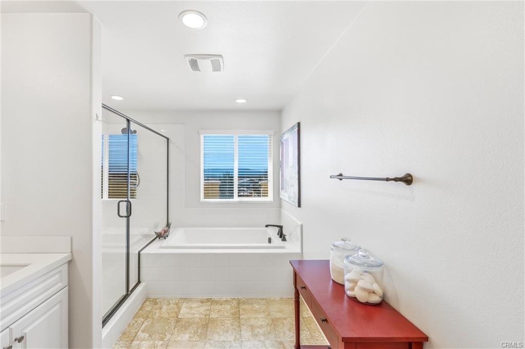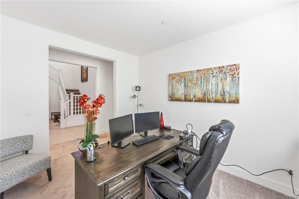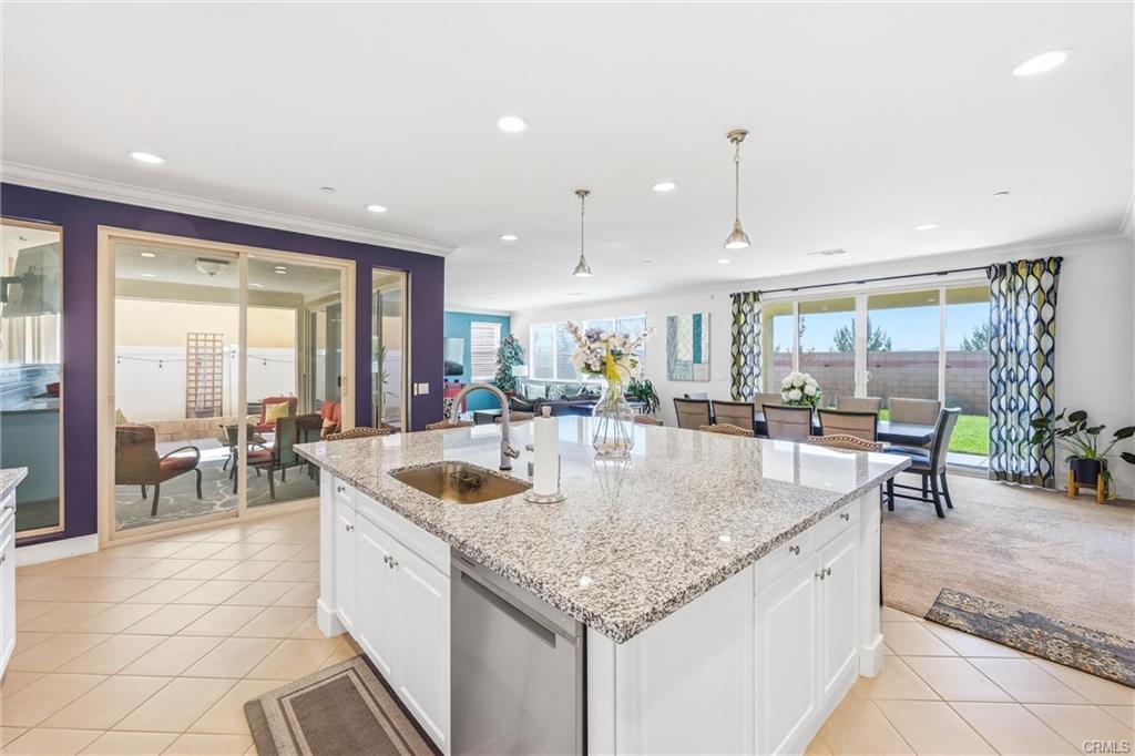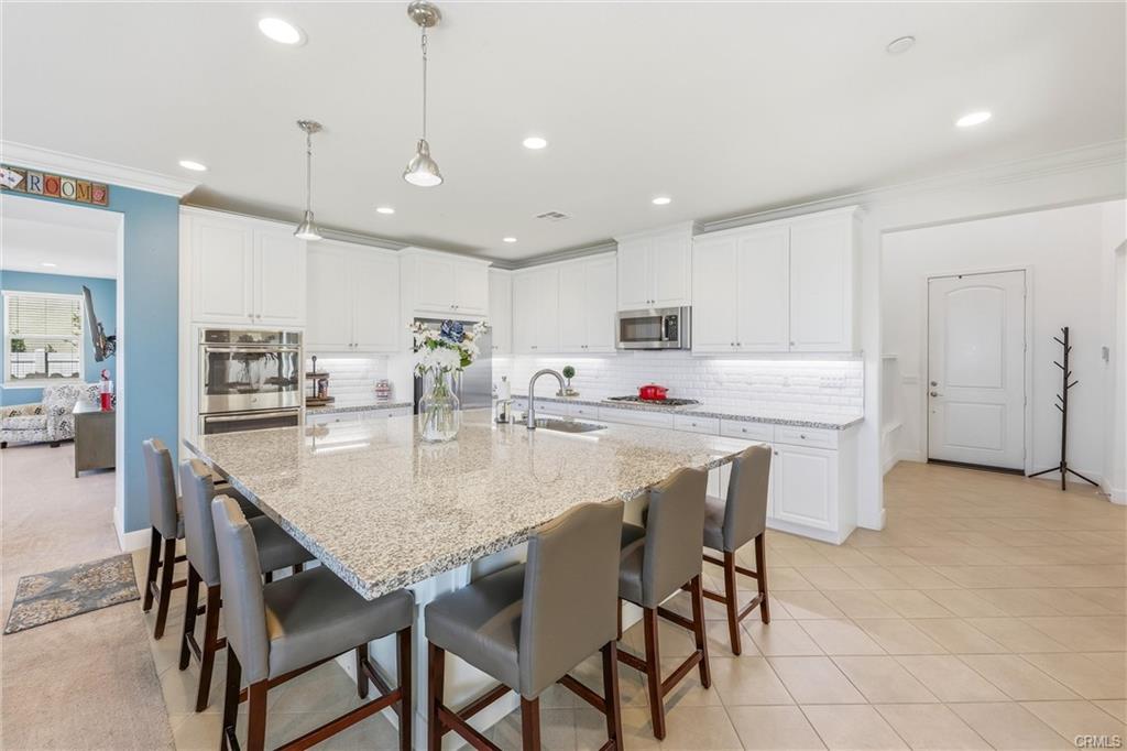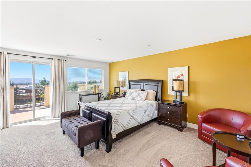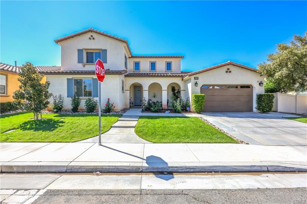 Welcome to 1619 Croton Street, a stunning Spanish Mediterranean two-story nestled in one of Beaumonts most desirable neighborhoods. The warm stucco facade, clay tile roof, and charming covered front porch create a welcoming first impression that carries all the way through the front door. Step inside to a soaring two-story entry foyer bathed in natural light from transom windows above the elegant staircase. The main level is designed for the way families actually live, flowing seamlessly between a formal living room and a generous open-concept family room, giving everyone room to gather or find a quiet corner. Crown molding and recessed lighting add polished finishing touches throughout. The chef-worthy kitchen is the true heart of the home. A large granite island with seating for four anchors the space, surrounded by gleaming white cabinetry, subway tile backsplash, stainless steel appliances, including a built-in double oven and refrigerator, and pendant lighting that sets the perfect mood. The dining area sits just beyond, with sliding glass doors opening directly to the covered back patio for effortless indoor-outdoor entertaining. A dedicated home office, a full bathroom, and a comfortable bedroom on the main floor make this layout exceptionally versatile, perfect for guests, in-laws, or a quiet work-from-home setup. Upstairs, a spacious loft offers endless possibilities as a media room, playroom, study space, or second family room. The primary suite is a true retreat. A private balcony frames breathtaking mountain and valley views, while the spa-inspired en-suite features dual vanities with a dedicated makeup station, a deep-soaking tub, a glass-enclosed shower, and generous storage. Three additional well-sized bedrooms with scenic views and plush carpet share two full bathrooms, each with dual sinks and clean white finishes. Thoughtful upgrades include a whole-home water softener, leased solar panels to reduce utility costs, and an epoxy-finished garage floor. The covered front porch and back patio make outdoor living a year-round pleasure under the beautiful skies of the Inland Empire. The HOA offers an impressive lineup of resort-style amenities, including three pools, three spas, two BBQ areas, a playground, a basketball court, and a bocce court. With this much to enjoy just steps from home, every day feels like a getaway. Conveniently located minutes from top-rated schools, shopping, dining, and the I-10 freeway.