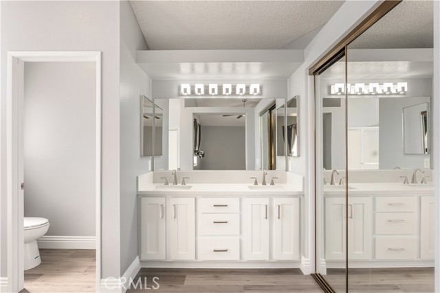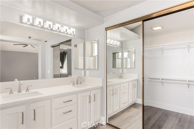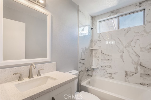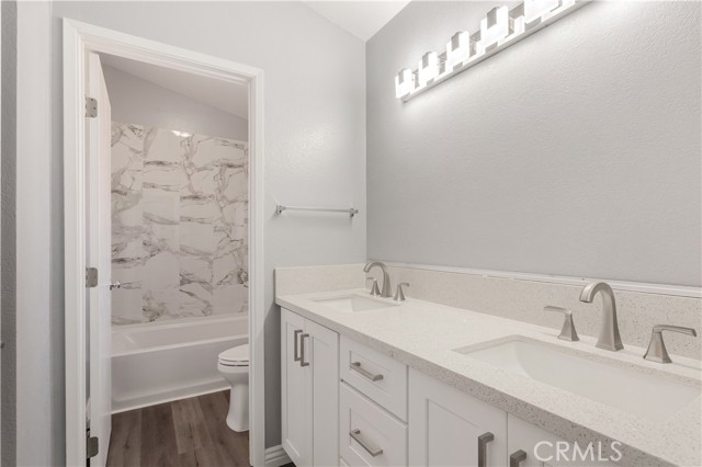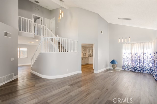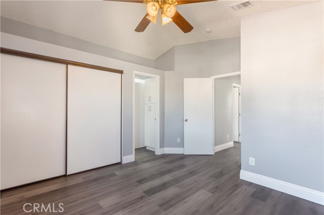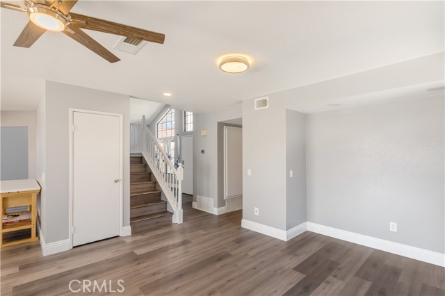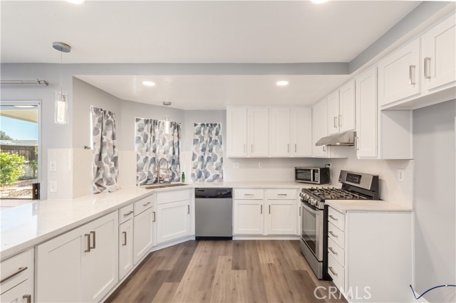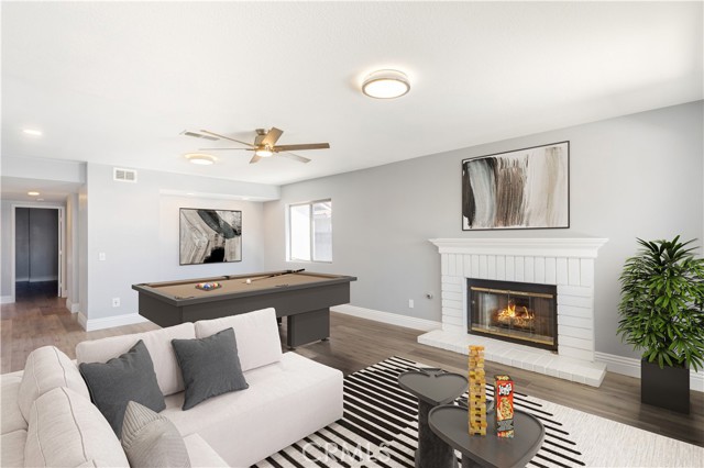 Welcome to this freeway close, beautifully remodeled cul-de-sac home. This home features PAID OFF SOLAR, NO HOA AND LOW PROPERTY TAXES. The bright and open floor plan features NEW luxury vinyl plank flooring throughout the home, NO CARPET, high base boards and freshly painted interior. Enter the home and notice the vaulted ceilings in the spacious formal living and dining. The kitchen features stainless appliances, quartz counters, ample storage, recessed lights and tear drop lights over the counter bar. Kitchen opens to family area with a wonderful fireplace to warm you on those cool evenings. Family area is extra-large with room for a potential pool table or many other uses. A convenient and large downstairs bedroom offers flexible use for guests, multigenerational living, or a home office. Head upstairs where you will find nicely appointed bedrooms, joined with a jack and jill bathroom. The pleasantly appointed prime bedroom boasts of a large walk-in closet with the primary ensuite having a separate tub and shower. This home also boasts of lots of storage and an inside laundry area. Head outside to enjoy a spacious backyard featuring a covered patio and citrus tree. Located within walking distance to Windsong Park, less than one mile from 15 freeway access. Don't miss your chance to own this turnkey home in one of Wildomar's most convenient neighborhoods!