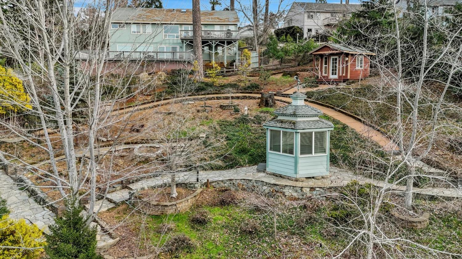 Breathtaking sunset VIEWS and truly spectacular landscaping. Meandering custom slate and stone walkways, terraced gardens, & charming stone benches guide you through a serene outdoor sanctuary surrounded by mature ornamental trees and shrubs. Enjoy the detached gazebo, ideal space for meditation, relaxation, or enjoying your own private Zen retreat in nature.