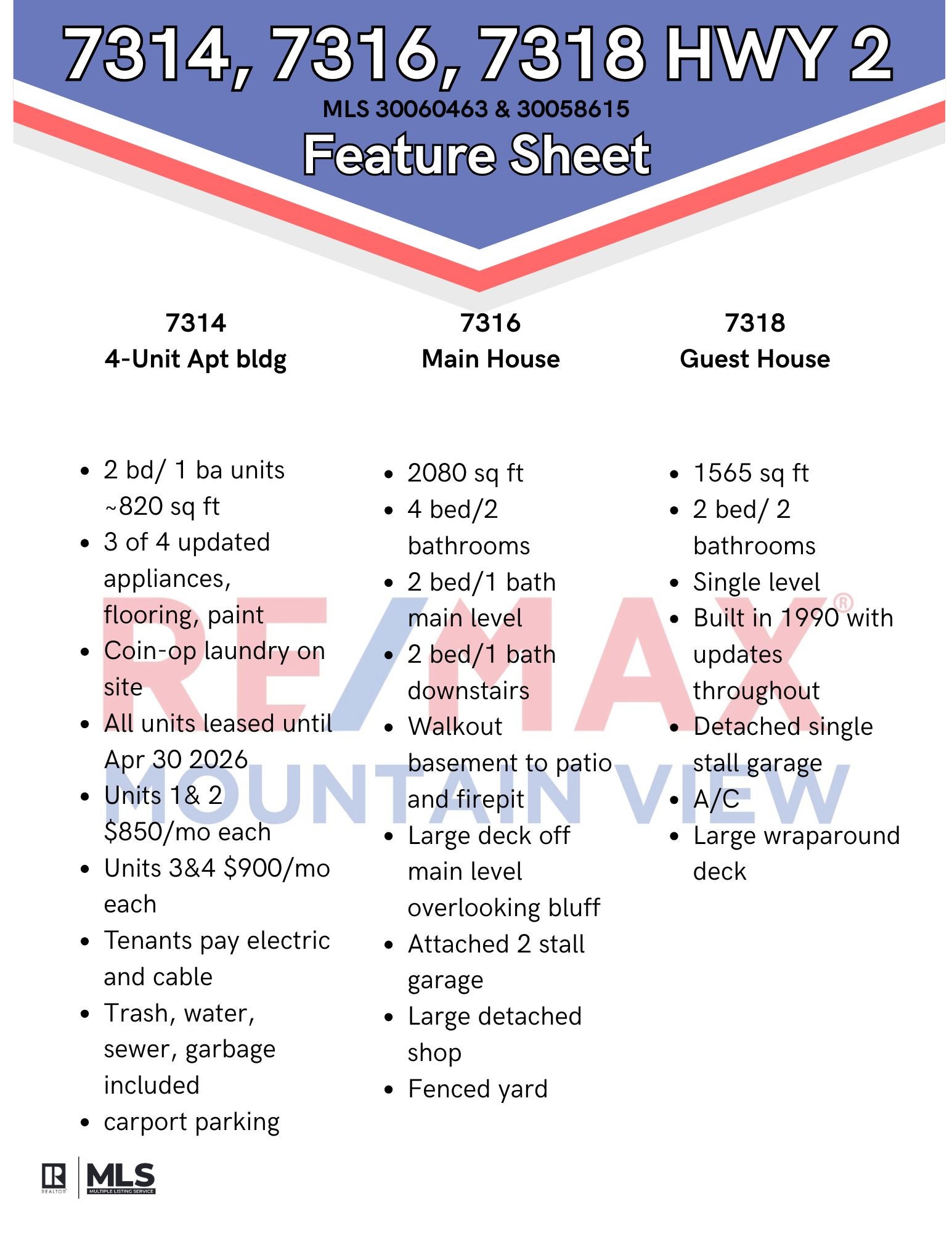 Discover a one-of-a-kind opportunity on 1.4 acres just east of Columbia Falls! This versatile property features a main home, a second residence, and a four-unit apartment buildingoffering comfort, income potential, and convenience. The spacious main home includes 4 bedrooms, 2 baths, a garage, and shop perfect for hobbies or storage. Enjoy mountain views and mature trees that add privacy and a fenced yard. The second home is a distinctive octagon-shaped residence with 2 bedrooms and 2 baths, beautifully updated with a bright layout. A separate four-unit apartment building adds rental income potential, each apartment featuring 2 bedrooms and 1 bath. With ample parking and quick access to downtown Columbia Falls, Glacier National Park, and the Flathead Valley, this property blends practicality and potential in one exceptional package. Perfect for multi-generational living, investment, or a live-and-rent setupthis property is ready to fit your vision. Also listed as MLS #30058615