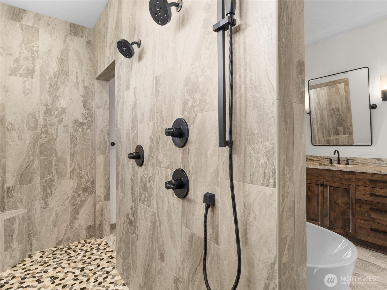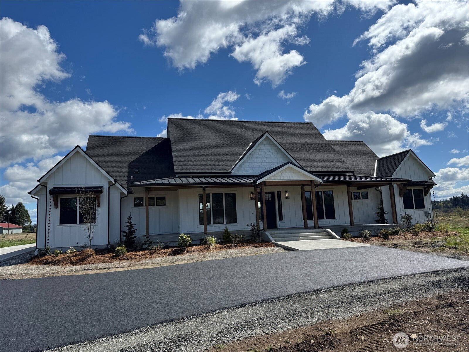 GORGEOUS BRAND NEW MODERN FARMHOUSE with MT RAINIER VIEWS ON 19 ACRES...!!! Long Private Driveway onto a quiet, private and peaceful Estate-Like Setting!!! Luxury High End Finishes throughout! Expansive Great Room with Exposed Wood Beam Trussing, Stone Fireplace, Soaring Vaulted Ceilings, Dual Sliders to Spacious Covered Patio (Mt Rainier views!). Wide-Plank Hardwood flooring, Gourmet Kitchen w SS Appliances, Leather finished Granite Slabs, Farmhouse Porcelain Sink, Under Counter Lighting, HUGE Walk-In Pantry...! Office/Den w French Doors (privacy glazed), Primary Bedroom has Vaulted Ceilings, extra large En Suite with Dual Entry Stone Showers, Sculpted Soaker Tub, enormous Walk-In Closet (California Closet) with Stacked Washer/Dryer. On-Demand Hot Water! 3 Bedrooms. Second Laundry Room w Folding Counters & Sink. 3-Car garage with Pulldown Stair Storage! Large Pump House for additional Storage! LANDSCAPING CREDIT: To Buyer 25,000!