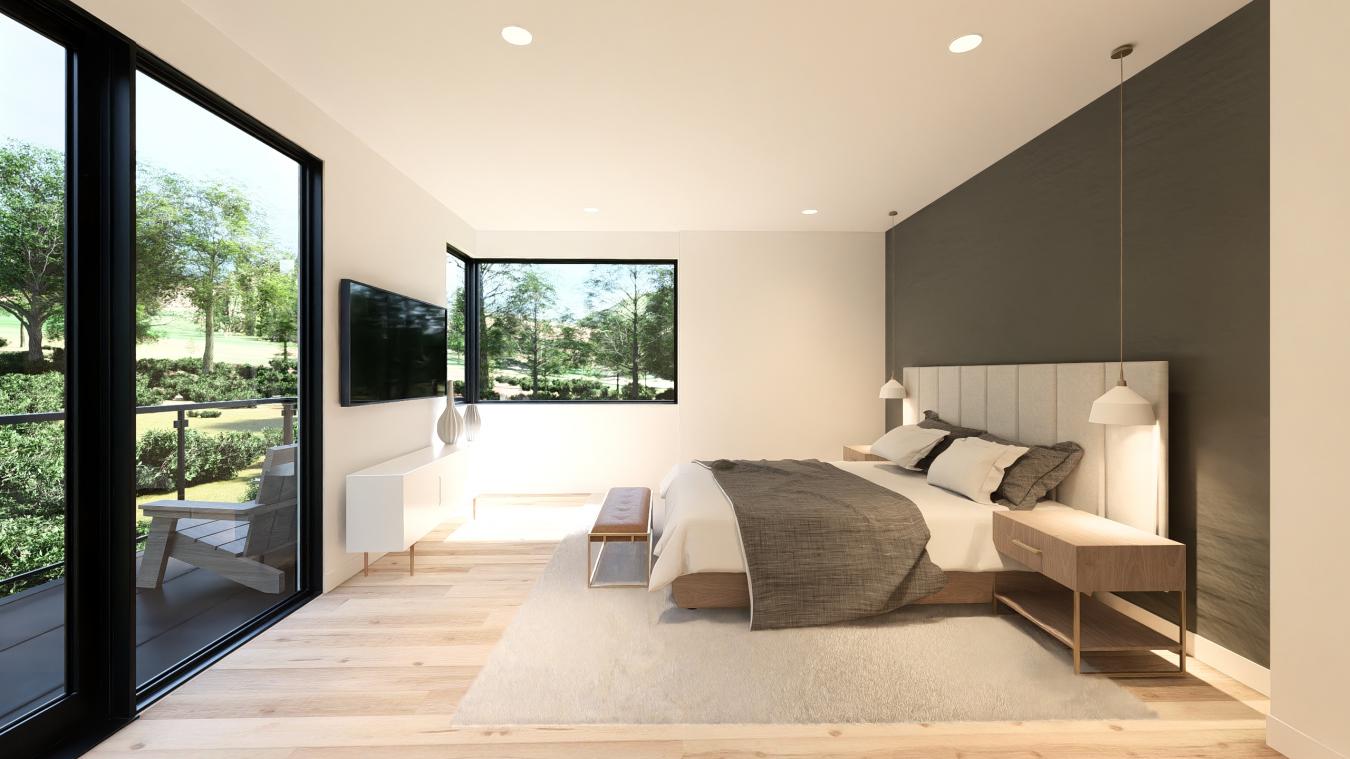Welcome to this exquisite 3,518 sq. ft. one-level modern home, featuring a striking asymmetrical roofline. Nestled in a prestigious gated community, this architectural gem perfectly blends elegance, comfort, and practicality. Upon entering, youll be welcomed by an expansive open-concept design with soaring ceilings and an effortless connection between indoor and outdoor living spaces.