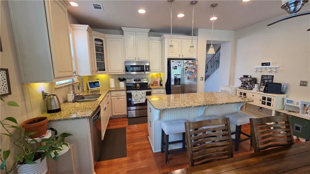 Beautiful two story home backing up to undisturbed wooded area....privacy plus. Master on the main with 2 more bedrooms up plus an entertainment area overlooking the family room below. The open plan of the kitchen overlooking the eating area and family room is spacious and bright.