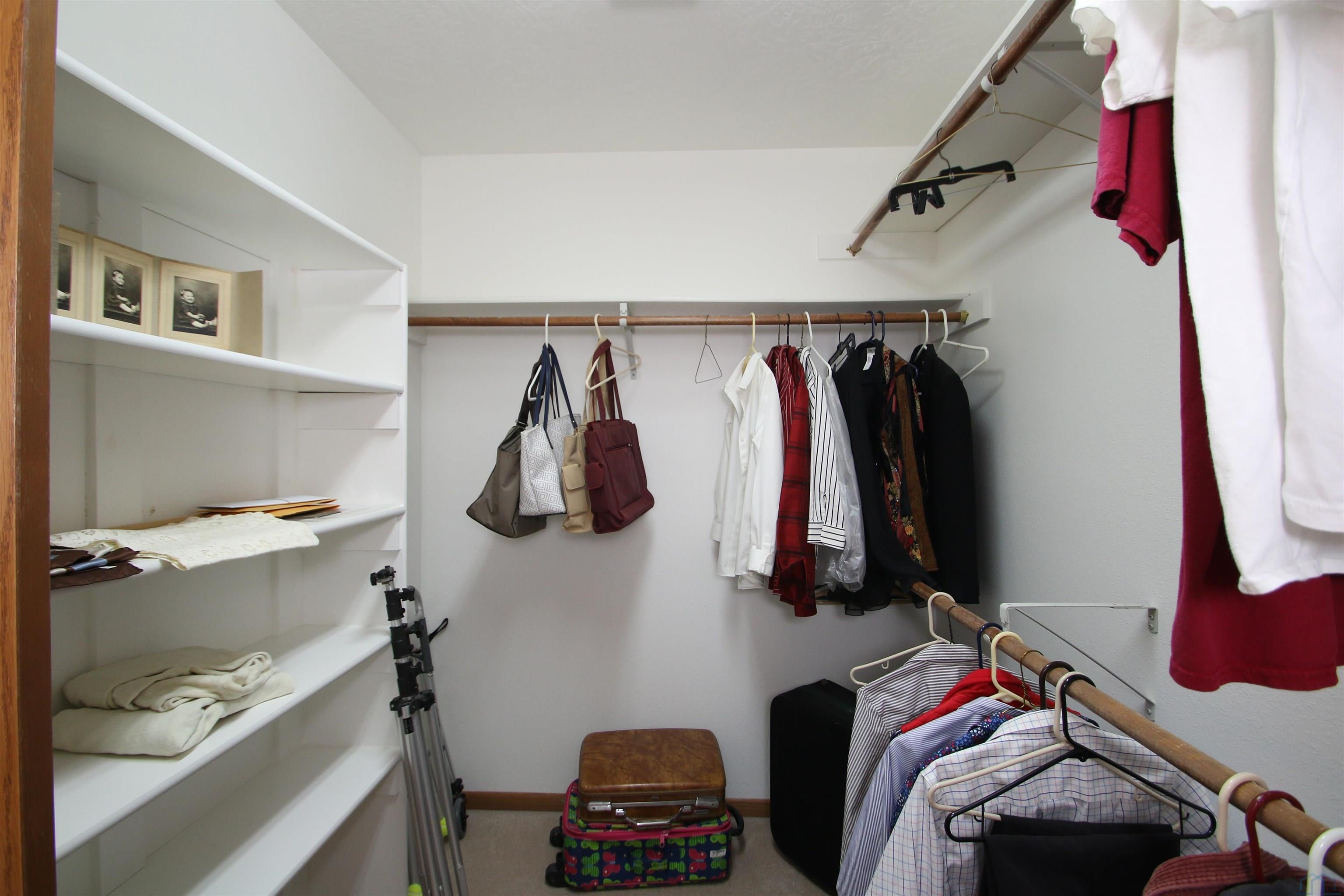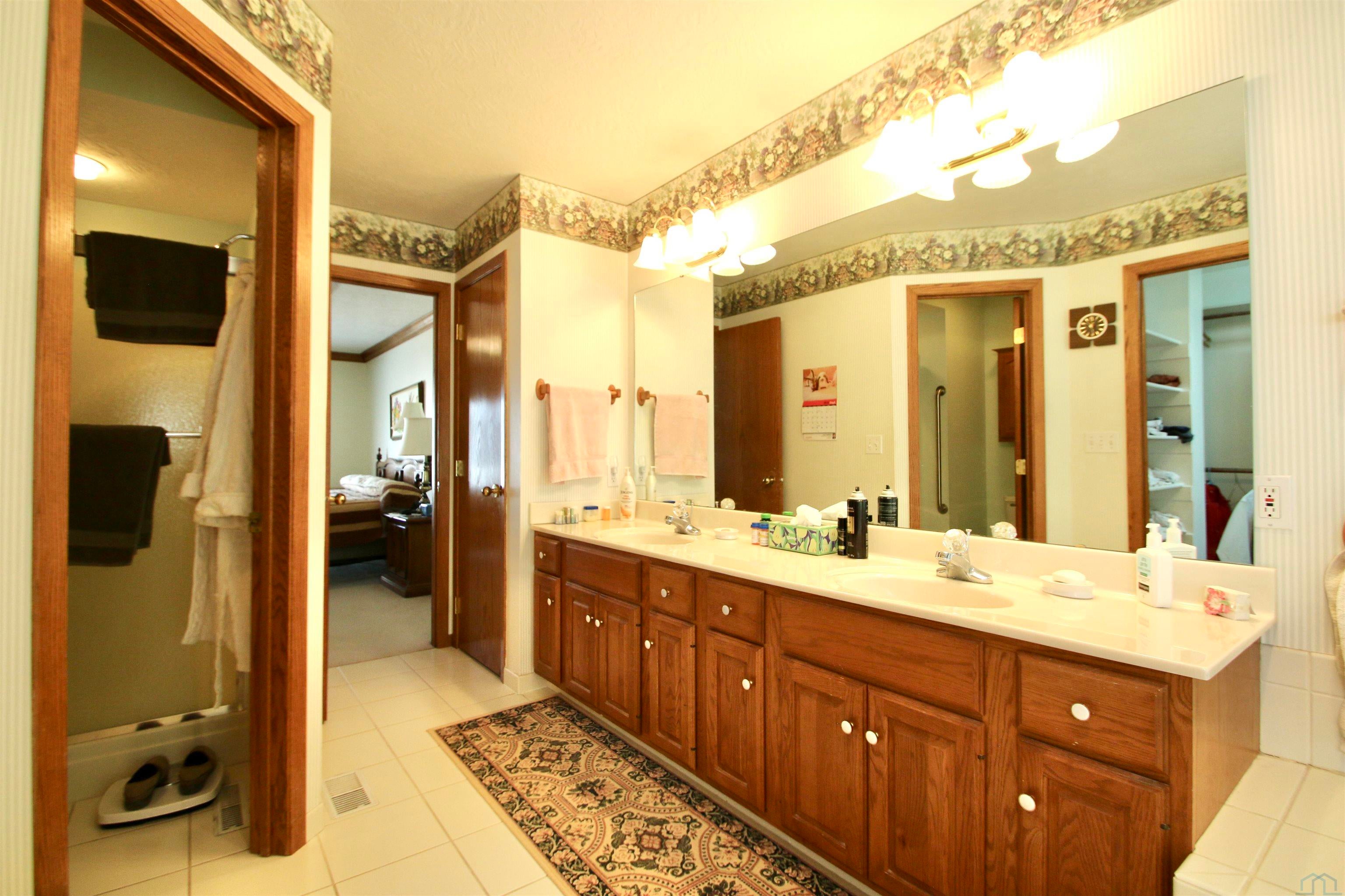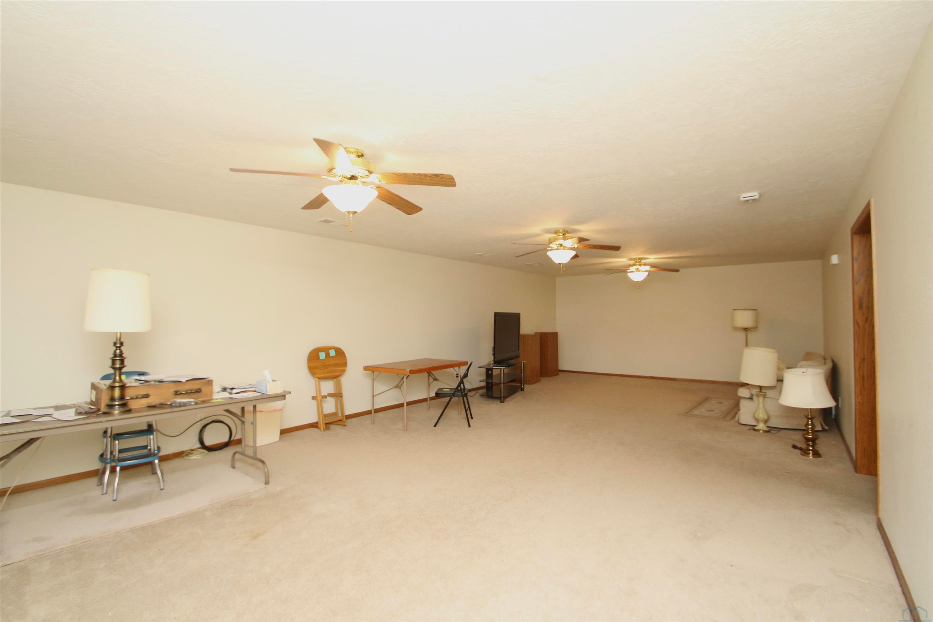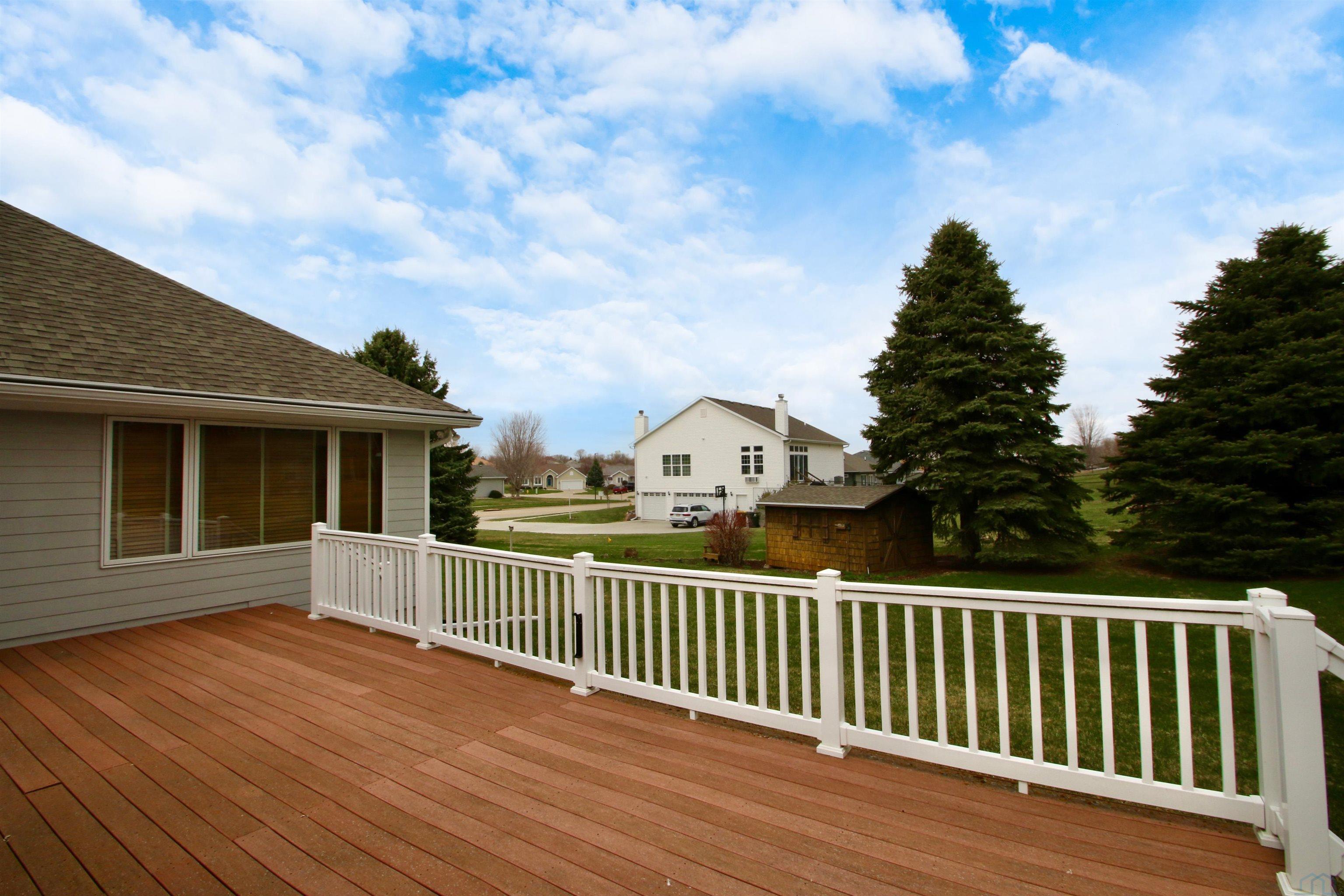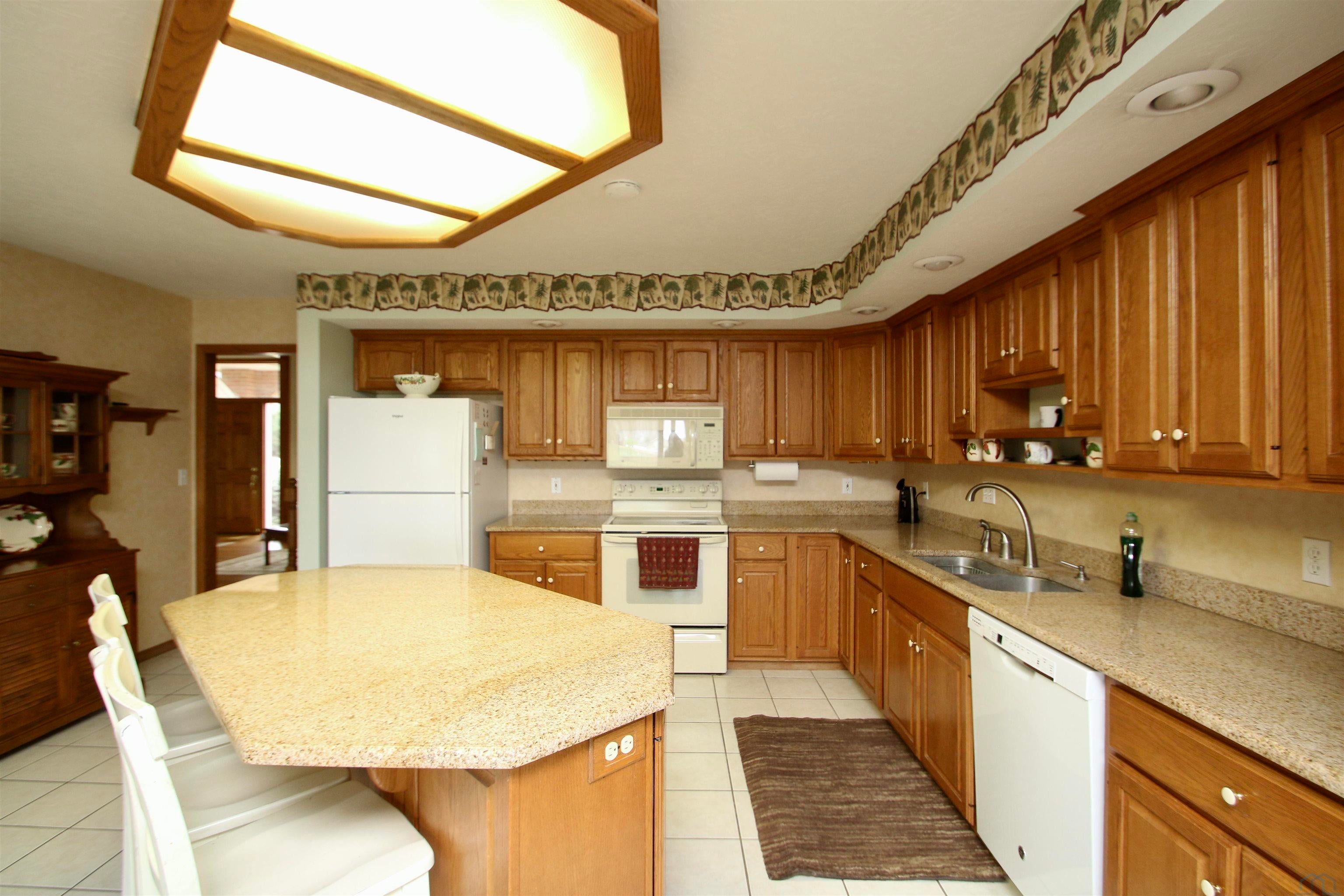 There is room for everyone in this spacious ranch home conveniently located near shopping and dining. Built by Lee Kent, this home sits on a .54-acre corner lot with mature trees and established landscaping. A welcoming first impression begins with the brick front, 3-car garage, and inviting front porch, leading into this 4-bedroom, 4-bathroom home. The entry (11x7) features wood flooring and a coat closet. A versatile room near the entry with wood flooring and crown molding offers flexible use as a formal living room, music room, office, or additional living space. The formal dining room includes a chandelier, carpet, and crown molding. The spacious eat-in kitchen features tile flooring, oak cabinets, an island, a 3x5 pantry, granite countertops, and a sliding door to the deck. Adjacent to the kitchen, the family room offers abundant natural light, a gas fireplace with brick surround, and built-ins. The home features a split-bedroom layout. The primary suite includes a carpeted bedroom with a tray ceiling, crown molding, and a sliding door to the deck. The en-suite bathroom offers tile flooring, a large double vanity, jetted tub, separate toilet and shower area, and a 6x10 walk-in closet. Two additional bedrooms include carpet, ceiling fans, and walk-in closets, with a full bathroom nearby featuring a large single vanity, tile floor, and tub/shower combination. Near the garage entry are a half bathroom and laundry area. The lower level includes a large family room with daylight windows, an additional bedroom with carpet, daylight window, and walk-in closet, a 3/4 bathroom, and a den with access to a spacious storage/mechanical area suitable for a workshop, craft, or fitness space. Updates include: water heater (2025), water softener (2025), refrigerator (2026), dishwasher (2020), shingles (2017), washer/dryer (2025), and HVAC/humidifier (2020). A radon mitigation system is in place.