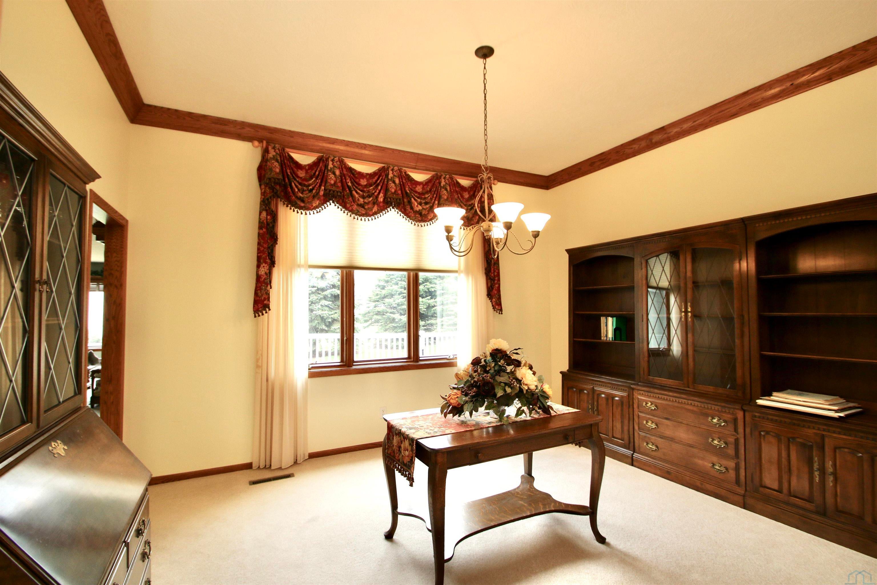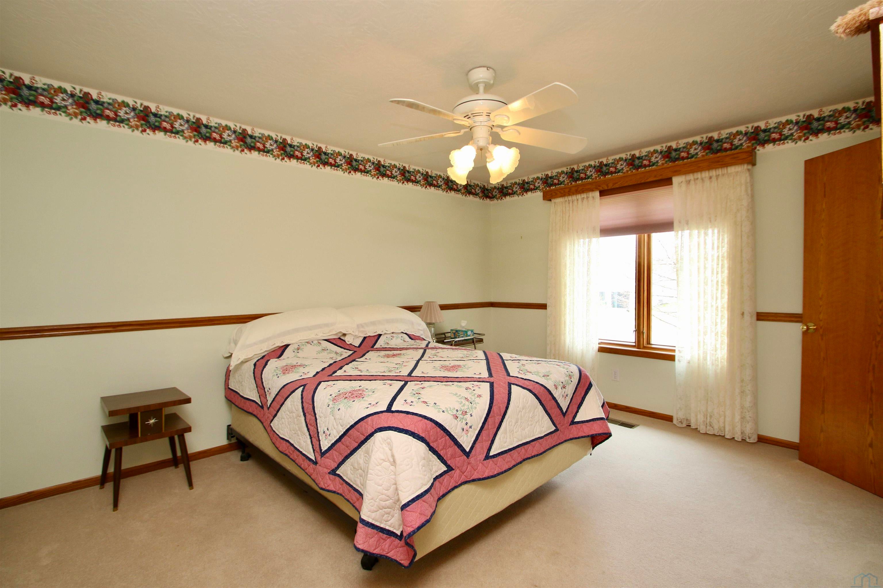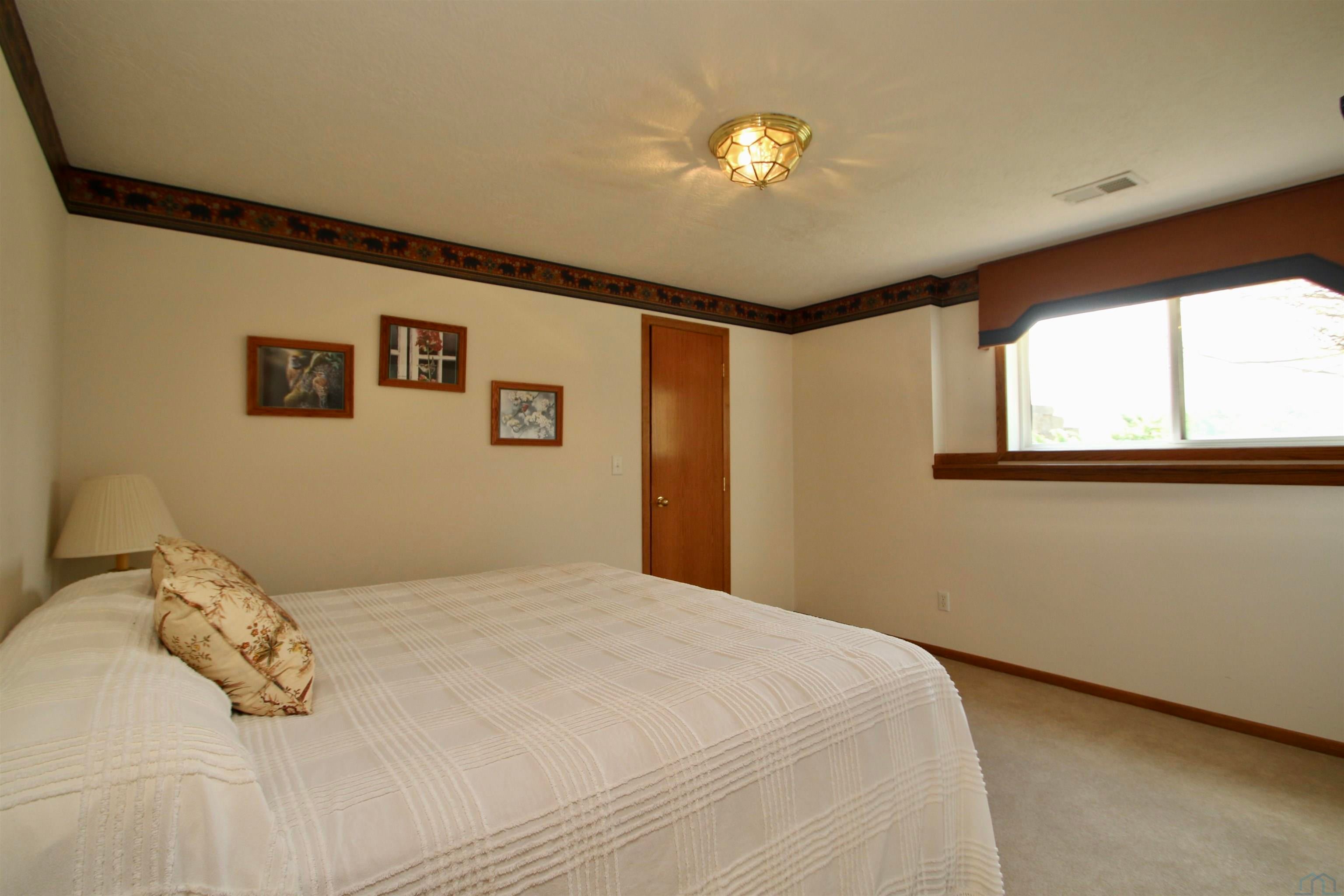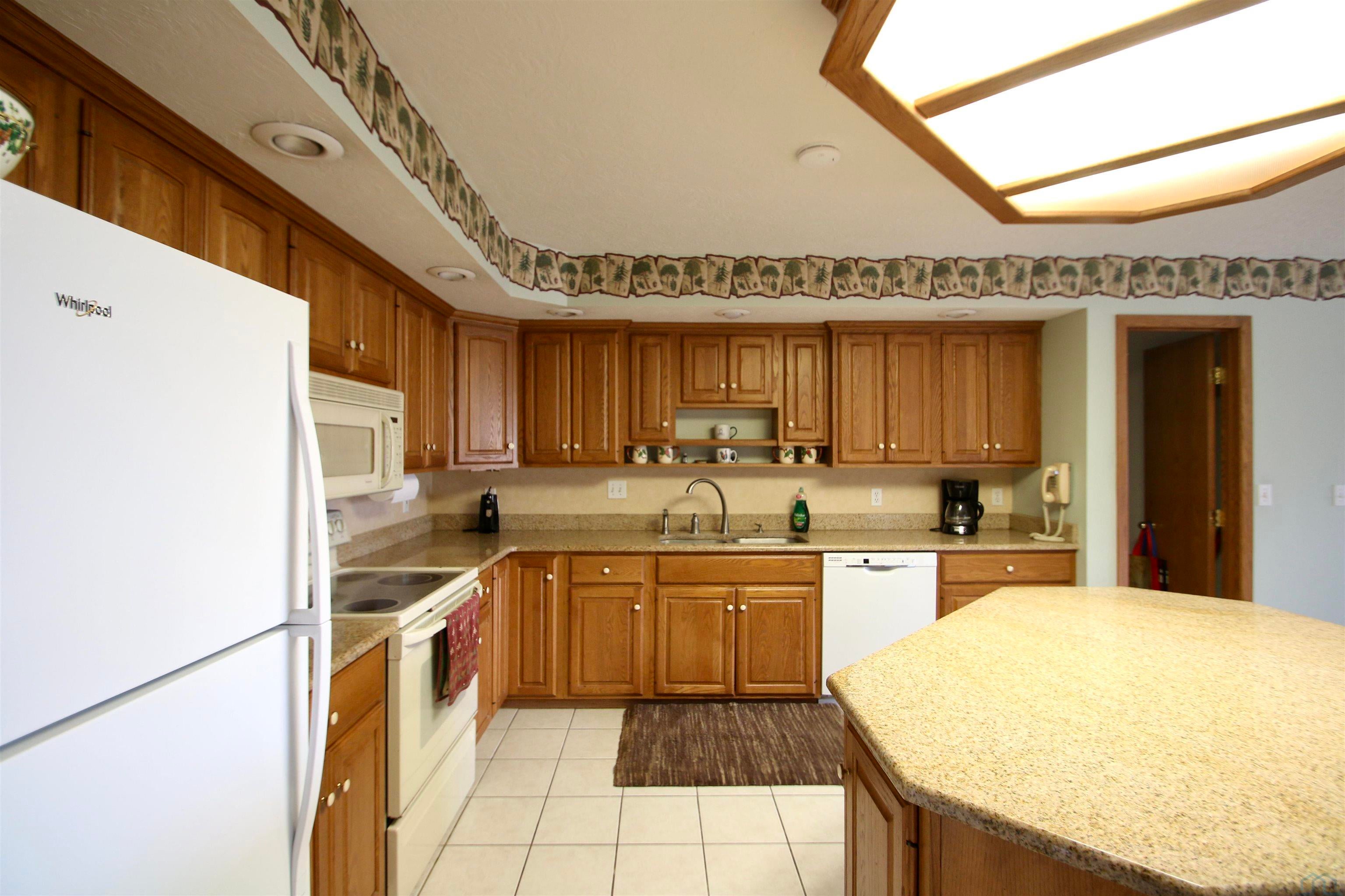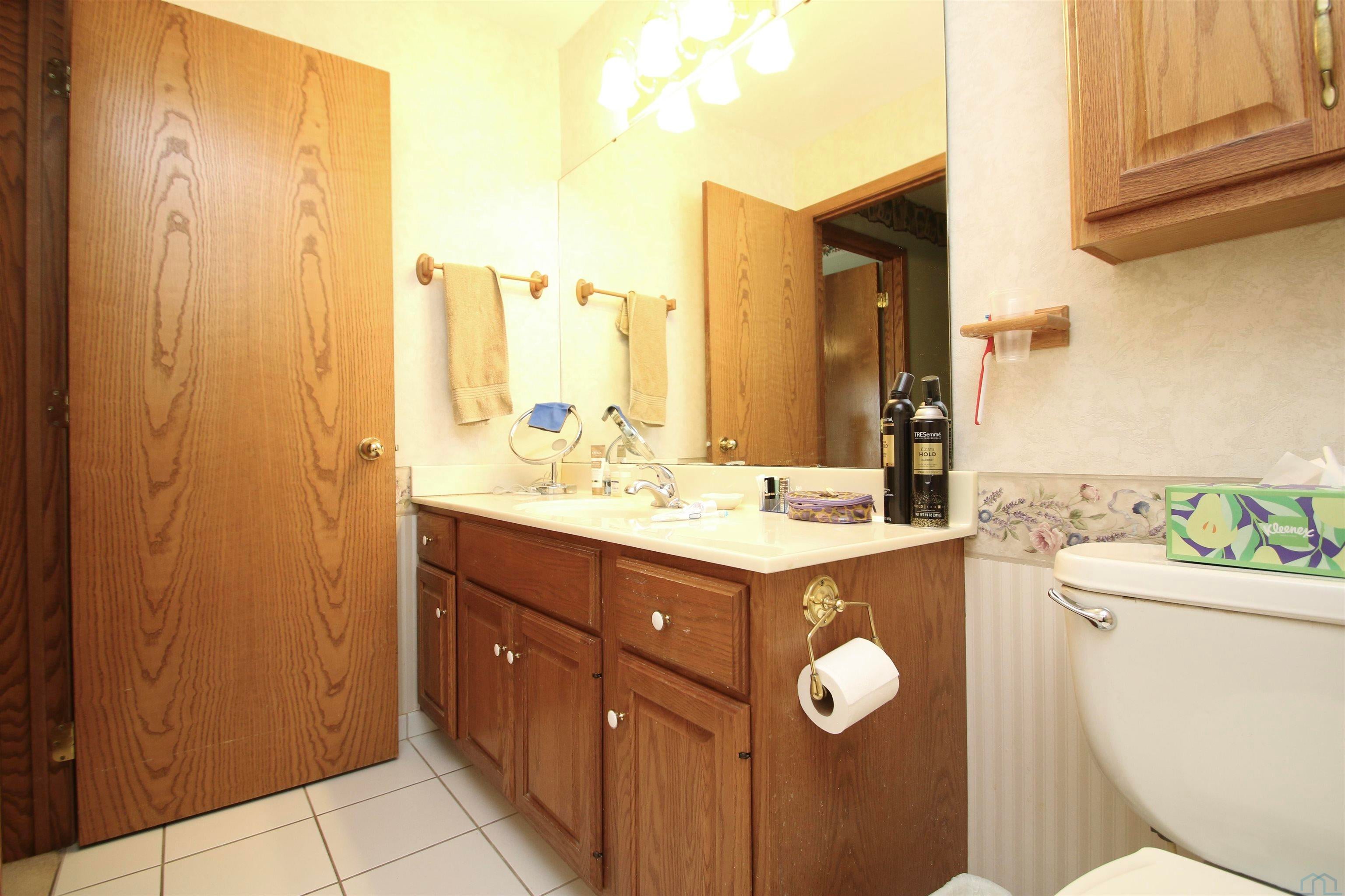 There is room for everyone in this spacious ranch home conveniently located near shopping and dining. Built by Lee Kent, this home sits on a .54-acre corner lot with mature trees and established landscaping. A welcoming first impression begins with the brick front, 3-car garage, and inviting front porch, leading into this 4-bedroom, 4-bathroom home. The entry (11x7) features wood flooring and a coat closet. A versatile room near the entry with wood flooring and crown molding offers flexible use as a formal living room, music room, office, or additional living space. The formal dining room includes a chandelier, carpet, and crown molding. The spacious eat-in kitchen features tile flooring, oak cabinets, an island, a 3x5 pantry, granite countertops, and a sliding door to the deck. Adjacent to the kitchen, the family room offers abundant natural light, a gas fireplace with brick surround, and built-ins. The home features a split-bedroom layout. The primary suite includes a carpeted bedroom with a tray ceiling, crown molding, and a sliding door to the deck. The en-suite bathroom offers tile flooring, a large double vanity, jetted tub, separate toilet and shower area, and a 6x10 walk-in closet. Two additional bedrooms include carpet, ceiling fans, and walk-in closets, with a full bathroom nearby featuring a large single vanity, tile floor, and tub/shower combination. Near the garage entry are a half bathroom and laundry area. The lower level includes a large family room with daylight windows, an additional bedroom with carpet, daylight window, and walk-in closet, a 3/4 bathroom, and a den with access to a spacious storage/mechanical area suitable for a workshop, craft, or fitness space. Updates include: water heater (2025), water softener (2025), refrigerator (2026), dishwasher (2020), shingles (2017), washer/dryer (2025), and HVAC/humidifier (2020). A radon mitigation system is in place.