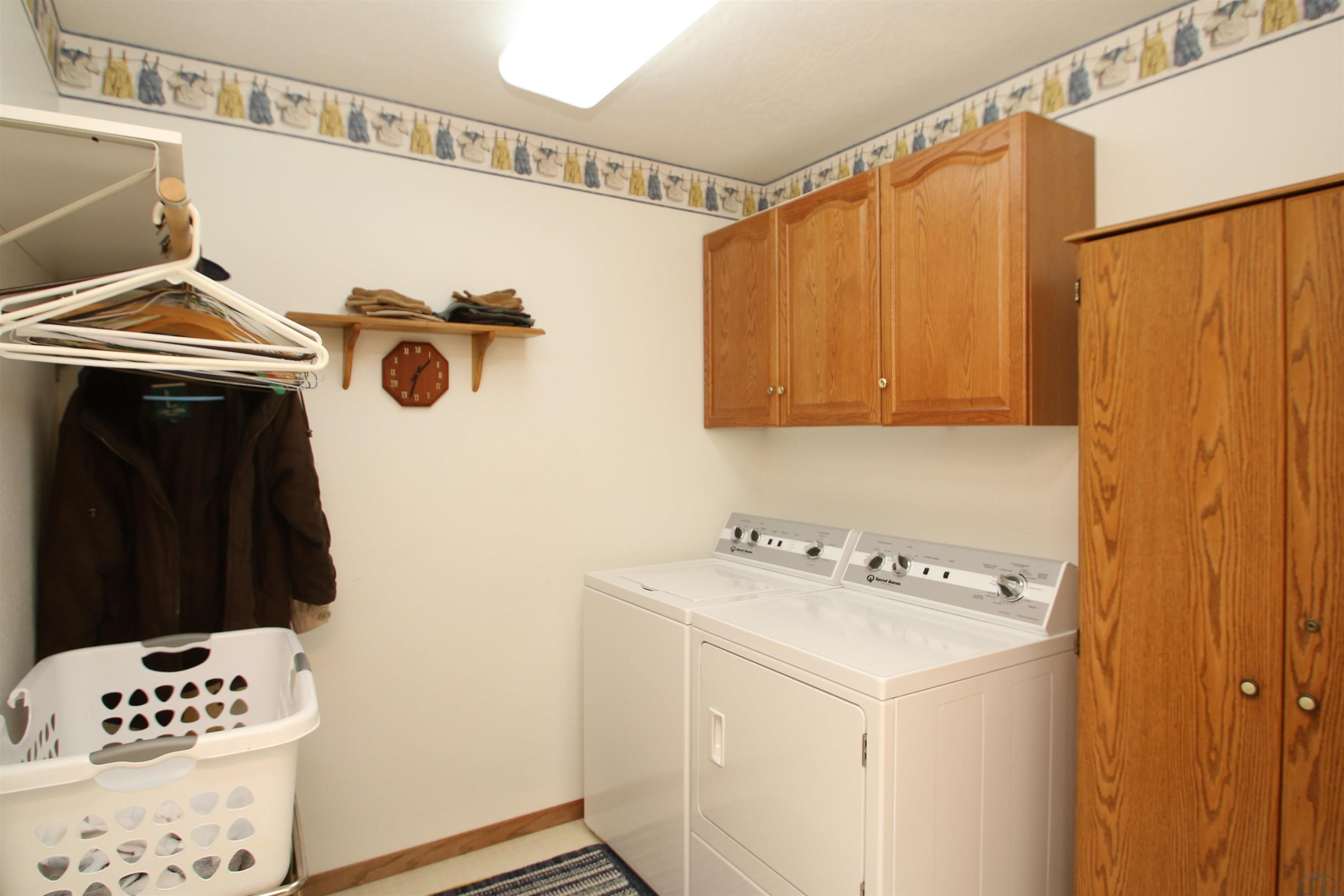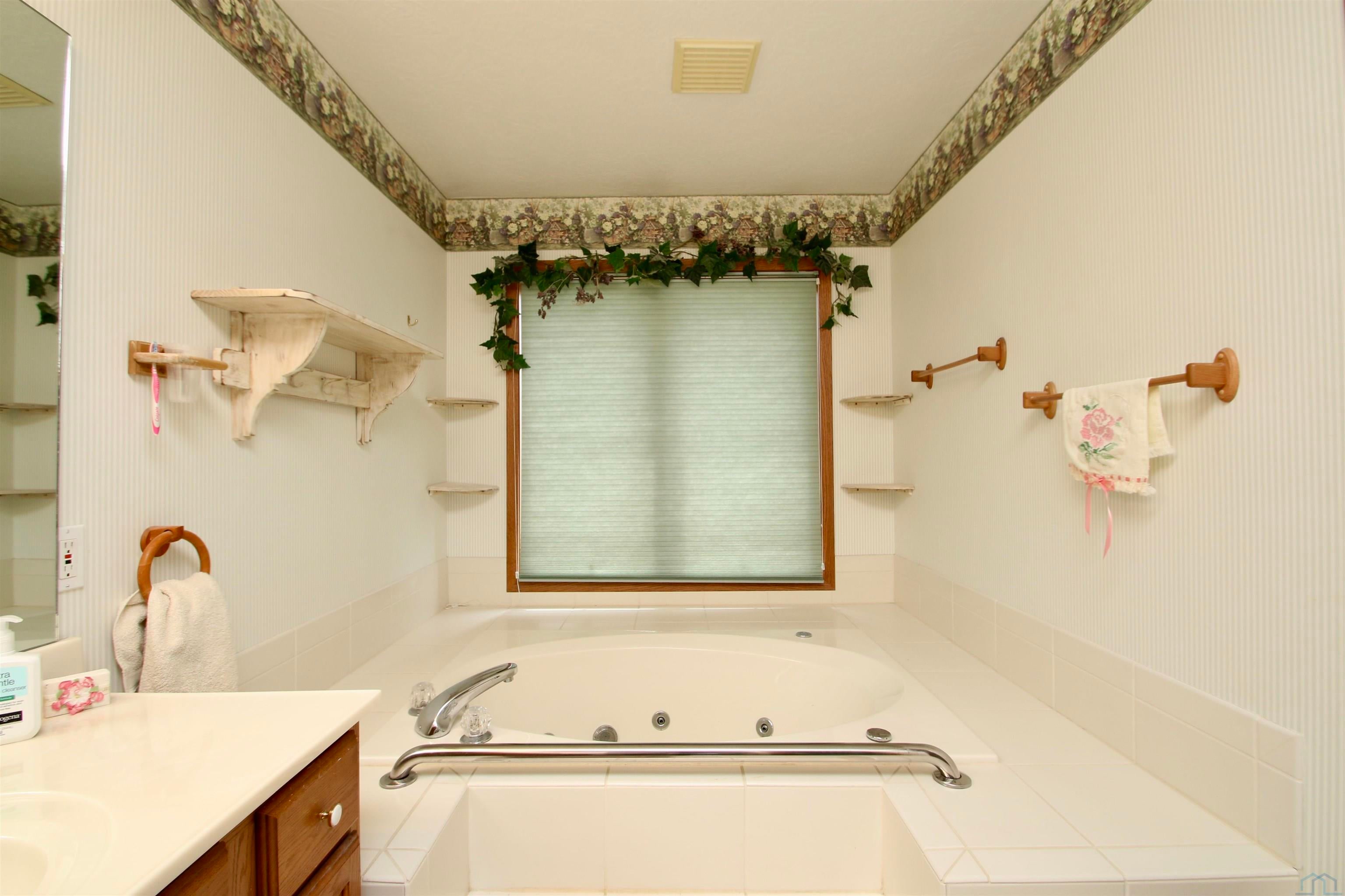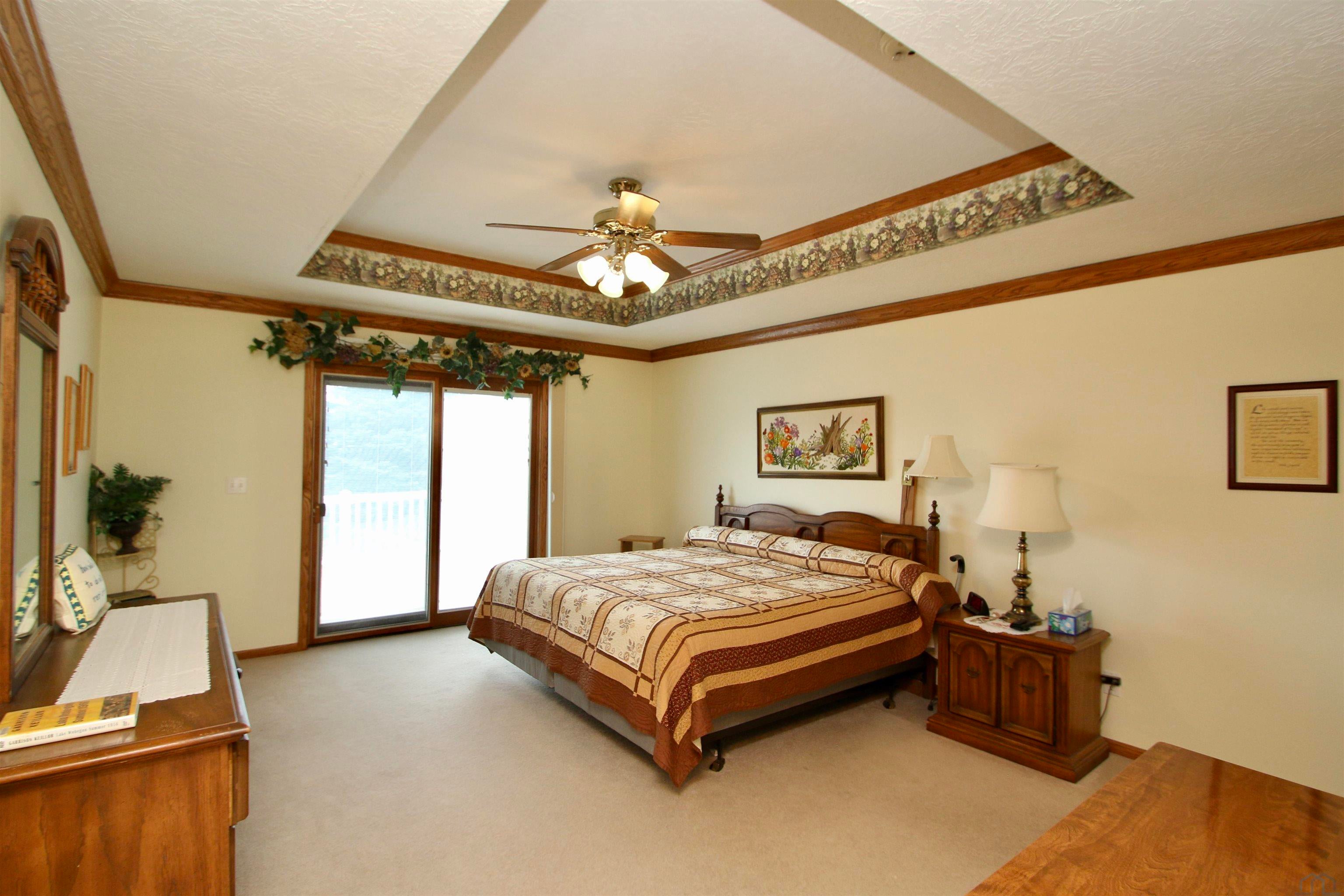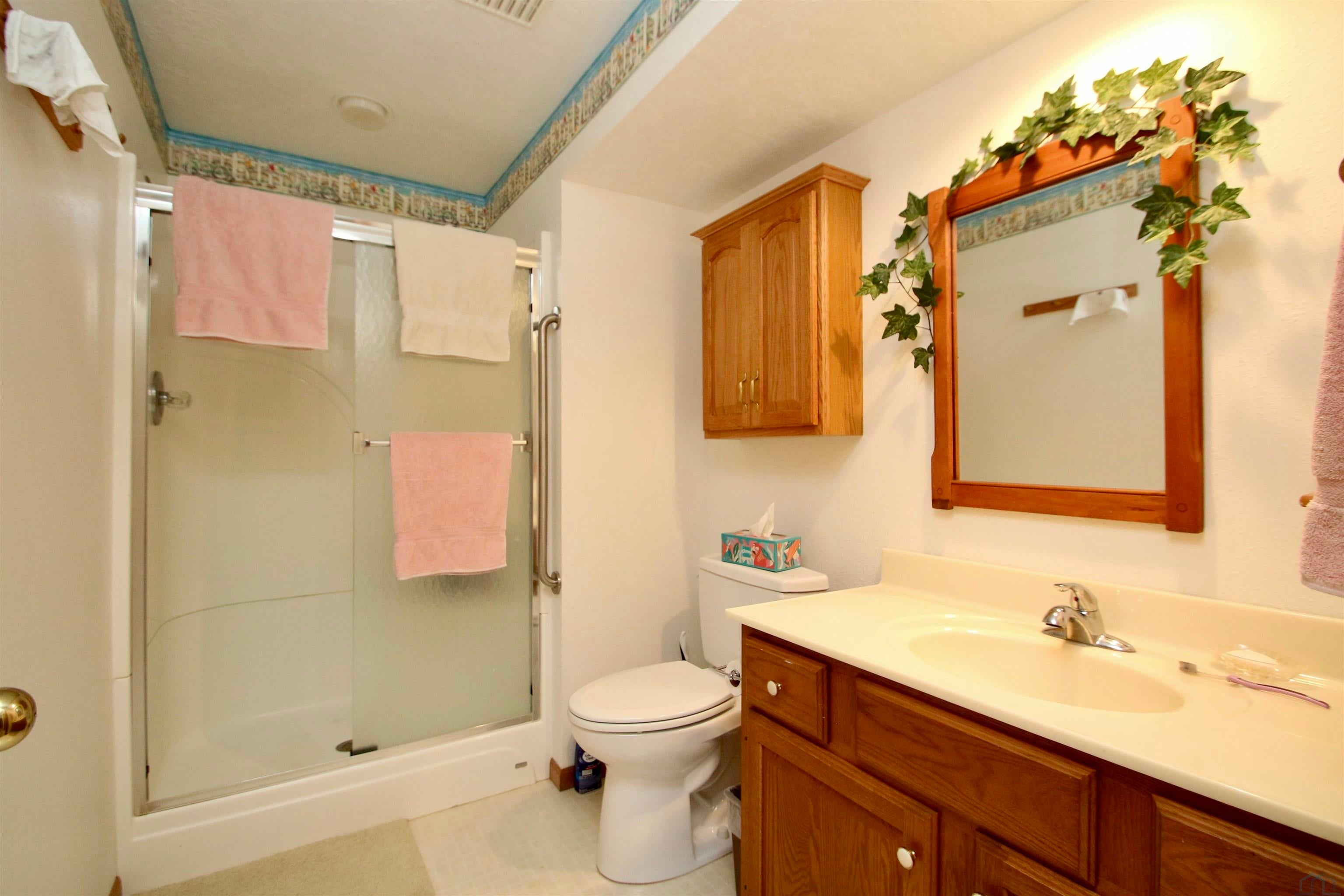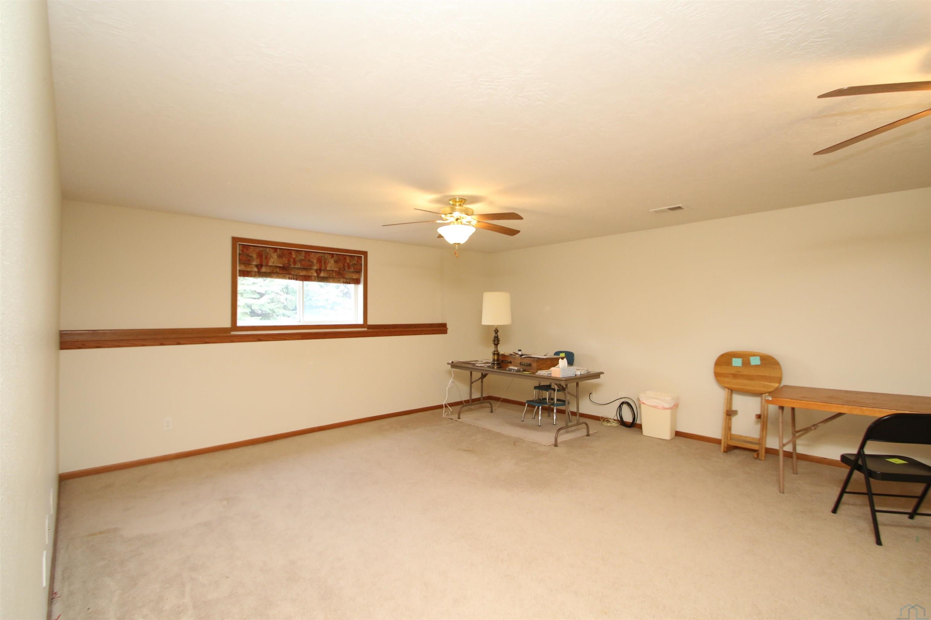 There is room for everyone in this spacious ranch home conveniently located near shopping and dining. Built by Lee Kent, this home sits on a .54-acre corner lot with mature trees and established landscaping. A welcoming first impression begins with the brick front, 3-car garage, and inviting front porch, leading into this 4-bedroom, 4-bathroom home. The entry (11x7) features wood flooring and a coat closet. A versatile room near the entry with wood flooring and crown molding offers flexible use as a formal living room, music room, office, or additional living space. The formal dining room includes a chandelier, carpet, and crown molding. The spacious eat-in kitchen features tile flooring, oak cabinets, an island, a 3x5 pantry, granite countertops, and a sliding door to the deck. Adjacent to the kitchen, the family room offers abundant natural light, a gas fireplace with brick surround, and built-ins. The home features a split-bedroom layout. The primary suite includes a carpeted bedroom with a tray ceiling, crown molding, and a sliding door to the deck. The en-suite bathroom offers tile flooring, a large double vanity, jetted tub, separate toilet and shower area, and a 6x10 walk-in closet. Two additional bedrooms include carpet, ceiling fans, and walk-in closets, with a full bathroom nearby featuring a large single vanity, tile floor, and tub/shower combination. Near the garage entry are a half bathroom and laundry area. The lower level includes a large family room with daylight windows, an additional bedroom with carpet, daylight window, and walk-in closet, a 3/4 bathroom, and a den with access to a spacious storage/mechanical area suitable for a workshop, craft, or fitness space. Updates include: water heater (2025), water softener (2025), refrigerator (2026), dishwasher (2020), shingles (2017), washer/dryer (2025), and HVAC/humidifier (2020). A radon mitigation system is in place.
