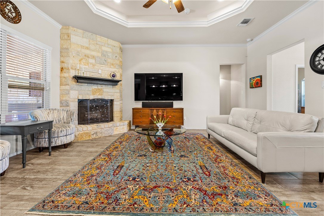 There is room for everyone in this spacious ranch home conveniently located near shopping and dining. Built by Lee Kent, this home sits on a .54-acre corner lot with mature trees and established landscaping. A welcoming first impression begins with the brick front, 3-car garage, and inviting front porch, leading into this 4-bedroom, 4-bathroom home.