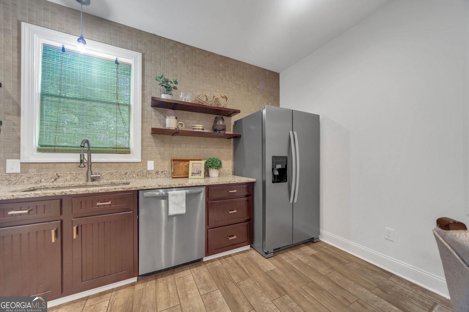 Rare opportunity to own newer construction in the heart of Historic Stone Mountain Village - situated just steps from Main Street and everything that makes this area so special! Located just a few doors down from local dining and a short walk to Main Street shops, restaurants, and breweries, this home offers a truly walkable lifestyle that is hard to find. In the opposite direction, youre less than a 5-minute walk straight into Stone Mountain Park! One of the only newer homes on this iconic street where properties rarely become available, this home blends charm, space, and functionality in a way that simply doesnt come up often. The open main level flows easily for everyday living and entertaining, anchored by a spacious kitchen with granite countertops and stainless appliances. Oversized primary suite plus a private in-law or teen suite provide flexibility for guests, multi-generational living, or potential income use. Secondary bedrooms are generously sized with great storage. The large, level backyard offers plenty of room for a future pool, and the side-facing two-car garage includes plumbing stubbed for a future bath-creating an excellent opportunity for a pool bath, cabana-style setup, or expanded outdoor living use. Enjoy a welcoming front porch with endless potential, no HOA, and a location that truly sets this home apart. If youve been waiting for something special in the Village, this is it! Please note that this home is located within the City of Stone Mountains historic district, so any exterior changes are subject to Historic Preservation Commission approval.