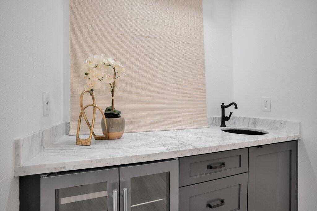 This exceptional waterfront residence, rebuilt in 2024/2025, delivers a refined blend of modern design, advanced technology, and sweeping open canal water views. Thoughtfully enhanced over time and constructed with quality and longevity in mind by professional contractors, this three-bedroom property offers an exceptional coastal lifestyle in one of Treasure Islands / St. Petersburgs most desirable waterfront settings Isle of Capri. Spanning approximately 2336 square feet, the home features three bedrooms, two full bathrooms, travertine flooring throughout, a flexible split bedroom layout designed for everyday living and entertaining. The main living area welcomes you with a spacious formal living room, great room anchored by striking expansive windows capturing the water beyond. An open-concept design flows seamlessly into the dining and kitchen areas, creating a refined backdrop for living and entertaining. The kitchen is a true showpiece with a massive waterfall-edge island featuring professional-grade induction cooktop, stainless steel bottom mount freezer refrigerator for a seamless custom look, and expansive European-style cabinetry. Quartz countertops and thoughtful design details elevate the space, while an oversized walk-in laundry offers convenient additional storage space. A private glass enclosed office space is a room with views of the home and the water combined. The master suite, the primary retreat serves as a true sanctuary with a custom spa-inspired bathroom featuring a large walk-in shower and ample size suite. Additional upgrades include motorized garage privacy screen, Epoxy flooring, storage cabinets, recently installed NEW flat roof, New AC, New Hot water Tank, New Composite Dock, Paver driveway and walkway and so much more. The Outdoor living is exceptional, with incredible water views, a composite dock with sitting bench and swim ladder. The resort style back yard offers enough space for a fantastic, pool if the new owners so desire. The thoughtfully designed landscaping and new fencing provide privacy and security without sacrificing the waterfront backdrop. Additional highlights include impact-rated windows and doors throughout, offering enhanced storm protection and peace of mind, along with an oversized garage providing exceptional space for multiple vehicles, storage, and toys. Perfectly positioned in Treasure Island, Isle of Capri, the home offers easy golf-cart access to all that the World-Famous Beaches and the islands have to offer known for its waterfront dining, award-winning restaurants, parks, and year-round events. This is a rare opportunity to own a meticulously upgraded waterfront home that combines modern luxury, smart-home innovation, and timeless coastal appeal. Dont let this property pass you by.