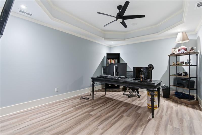 Welcome to this stunning 6-bedroom, 5.5-bath luxury home, a true showstopper with gorgeous 4-sided brick and stone construction and timeless architectural detail. Step inside to an updated chef's kitchen featuring a truly fabulous oversized island, all KitchenAid appliances, and custom cabinets installed approx. 5 years ago. A custom pantry keeps everything organized and beautiful.Enjoy multiple inviting living spaces, including a cozy Keeping Room with a coffered ceiling and stacked-stone fireplace, plus a Family Room with its own fireplace, built-in vacuum system, and custom built-ins. The automatic drop-chandelier in the foyer adds a unique wow factor and makes cleaning or bulb changes a breeze!Work from home in style in the sophisticated office accented with stained woodwork and a coffered ceiling. All bedrooms are exceptionally spacious, each offering direct bath access. The Primary Suite is a dream come true—complete with a warm fireplace, an expansive primary bath, and a hugemongous walk-in closet you have to see to believe.Upstairs you'll also find a large media room/kids— playroom, fully equipped with a big screen and projector—perfect for movie nights or gaming.The terrace level is an entertainer's paradise, featuring a full bar with built-in bar taps, dishwasher, sink, fridge, and ice maker. A climatized wine cellar with beautiful flooring and ceiling detail provides impressive storage for your collection.Outside, enjoy a lovely, large, and private backyard designed for relaxation and entertainment. The expansive deck features a built-in hot tub plus a fully equipped outdoor kitchen complete with a gas grill and hibachi grill—ideal for gatherings all year long.This home effortlessly combines luxury, comfort, and functionality—an extraordinary opportunity you won't want to miss