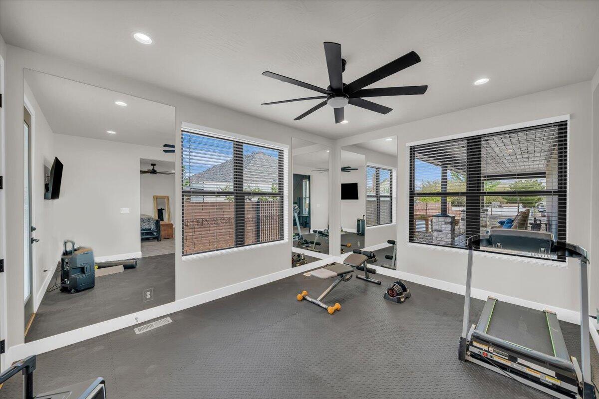 This stunning home is a true showstopper, offering an unbeatable combination of luxury, functionality and entertainment space. Once of its most impressive features is the detached 2100 sqft garage that has power and plumbing roughed in for a bathroom, providing ample space for hobbies and storage. inside, the gourmet kitchen is a culinary dream, while the office provides a quiet space for work or study. The large owners wing is a serene retreat,complete with an ensuite bath and a massive walk in closet as well as an exercise room. Upstairs, the entertainment zone takes center stage, featuring a spacious family room with a bunk bed area, theatre room, bedroom and two bathrooms, making it an ideal space for hosting. The outdoor oasis boasts a heated pool and hot tub, perfect for relaxation No expense has been sparred. Quality attention to detail throughout. You wont want to miss this one!