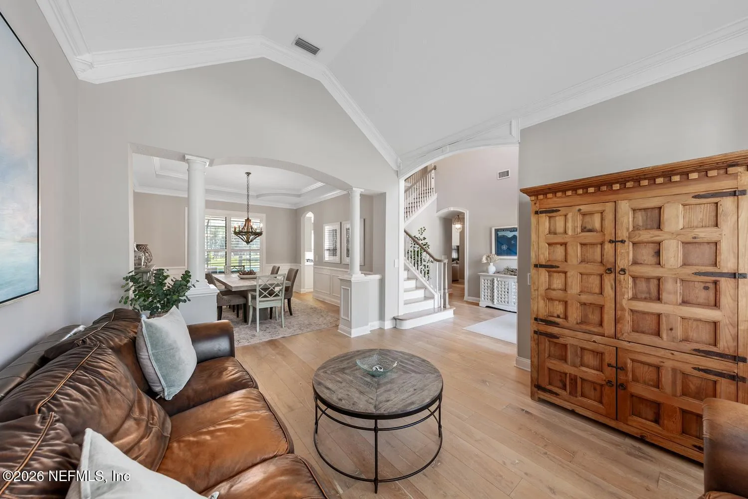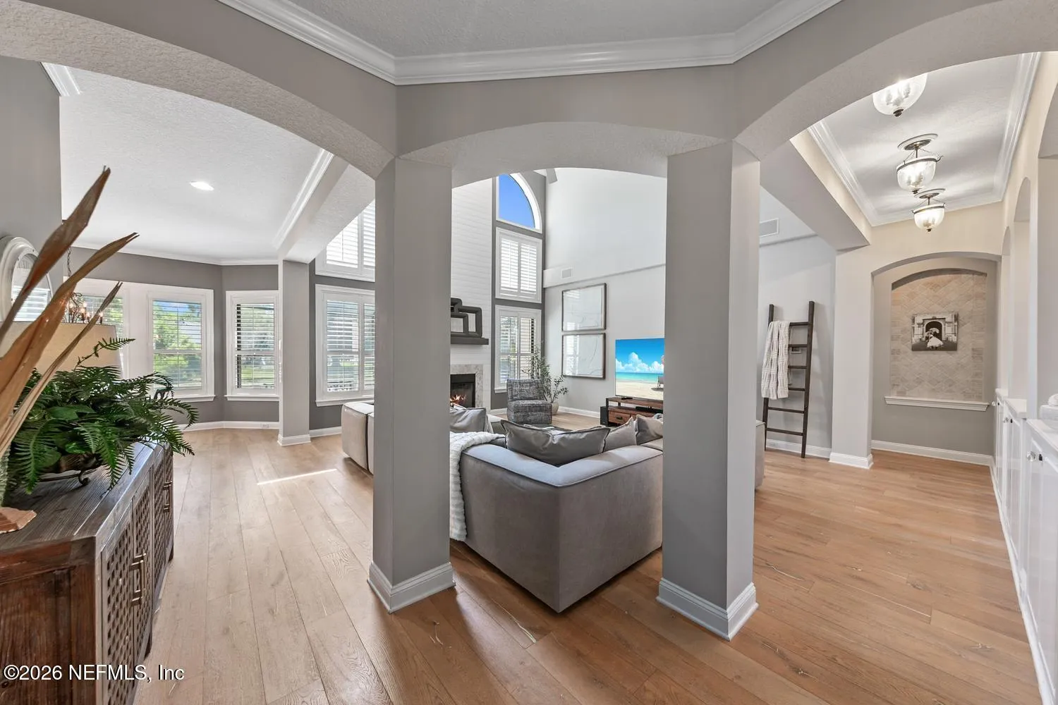 Welcome to 299 Clearwater Drive--undeniably one of the most stunning and extensively updated homes in the community. With architecture reminiscent of a luxury mountain chalet and over 4,000 square feet of thoughtfully designed living space, this 5 bedroom, 4 bathroom residence offers a rare blend of warmth, sophistication, and true move-in-ready peace of mind. Perfectly positioned on a private pond homesite across from preserve-like green space, the backyard is a true resort-style retreat. Enjoy Florida living at its finest with a heated saltwater pool and spa, expansive paver deck, summer kitchen, covered outdoor TV lounge, and panoramic screened enclosure--an entertainers dream. Inside, soaring ceilings and designer finishes make an unforgettable first impression. The dramatic two-story gathering room showcases a floor-to-ceiling shiplap fireplace, striking coffered ceiling, and abundant natural light. Beautiful European white oak flooring flows throughout the home, complemented by a renovated chefs kitchen featuring modern finishes, floating shelves, tile backsplash, and premium appliances. Major system improvements provide exceptional buyer confidence, including a 2020 roof, two HVAC systems replaced in 2022, updated water heaters, water softener, reverse osmosis system, and continued 2026 upgrades already underway. Additional highlights include a 3-car garage, oversized circular paver driveway, landscape lighting, and immaculate maintenance throughout. Located in a gated community with updated amenities including a renovated pool house and playground, and just minutes to top-rated St. Johns County schools, dining, shopping, and the beach. Luxury, lifestyle, and turnkey condition--this is one of Ponte Vedra Beachs finest offerings. PROFESSIONAL PICTURES COMING THIS WEEK